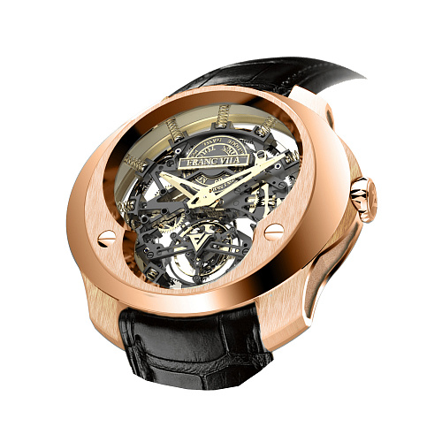 Скелетонизированные модели FV Skeleton представляют собой сложные механизмы с ручным заводом и открытым циферблатом. Через сапфировое стекло виден каждый элемент работы механизма. Это часы, которые буквально открывают внутреннюю архитектуру инженерной мысли бренда Franc Vila.