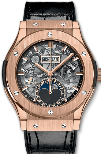 - Classic Fusion — более сдержанная интерпретация Hublot с тонкими корпусами, кожаными ремешками и элегантными циферблатами.