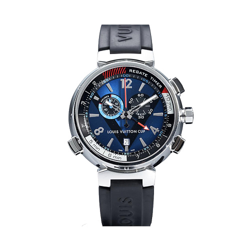 Уникальные особенности | Культовый барабанный корпус Tambour; специализированная функция регатного хронографа; яркий синий циферблат; узнаваемый дизайн от Louis Vuitton; идеальна для любителей парусного спорта и путешествий. |