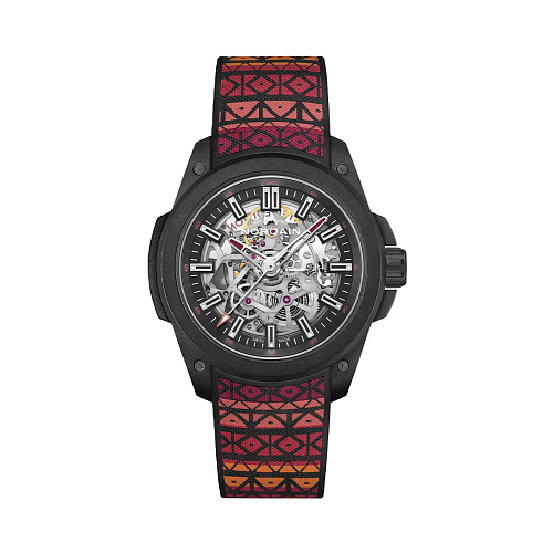 Особенности | Ультралегкий и прочный корпус NORTEQ. Отлично читаемый циферблат. | Эстетика открытого механизма. Яркие цветовые акценты. | Уникальный дизайн скелетона, возможно, с элементами, напоминающими геккона. |