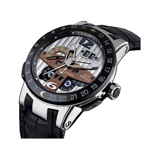 Основные усложнения | Вечный календарь (дата, день, месяц, год), GMT (второй часовой пояс) | Революционная индикация времени (механизм вращается вокруг своей оси, выполняя роль стрелок), без циферблата и стрелок | Индикатор запаса хода, малая секундная стрелка, большая дата |