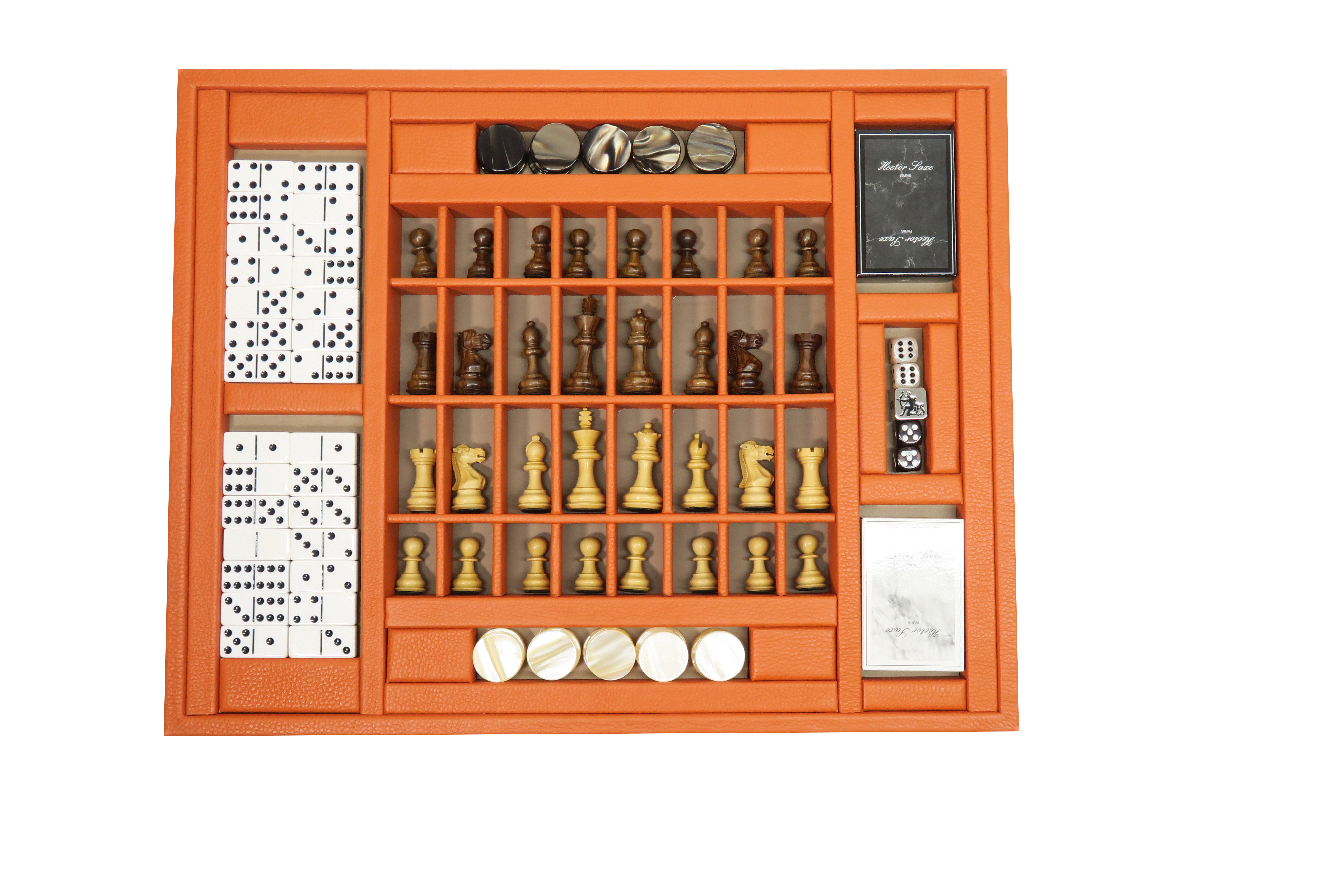 Hector Saxe Paris — французский бренд, сочетающий вековые традиции ручного производства с изысканной эстетикой. Основанная в 1978 году парижская мастерская специализируется на создании роскошных настольных игр: шахмат, шашек, нард, домино и мультигейм-комплектов.