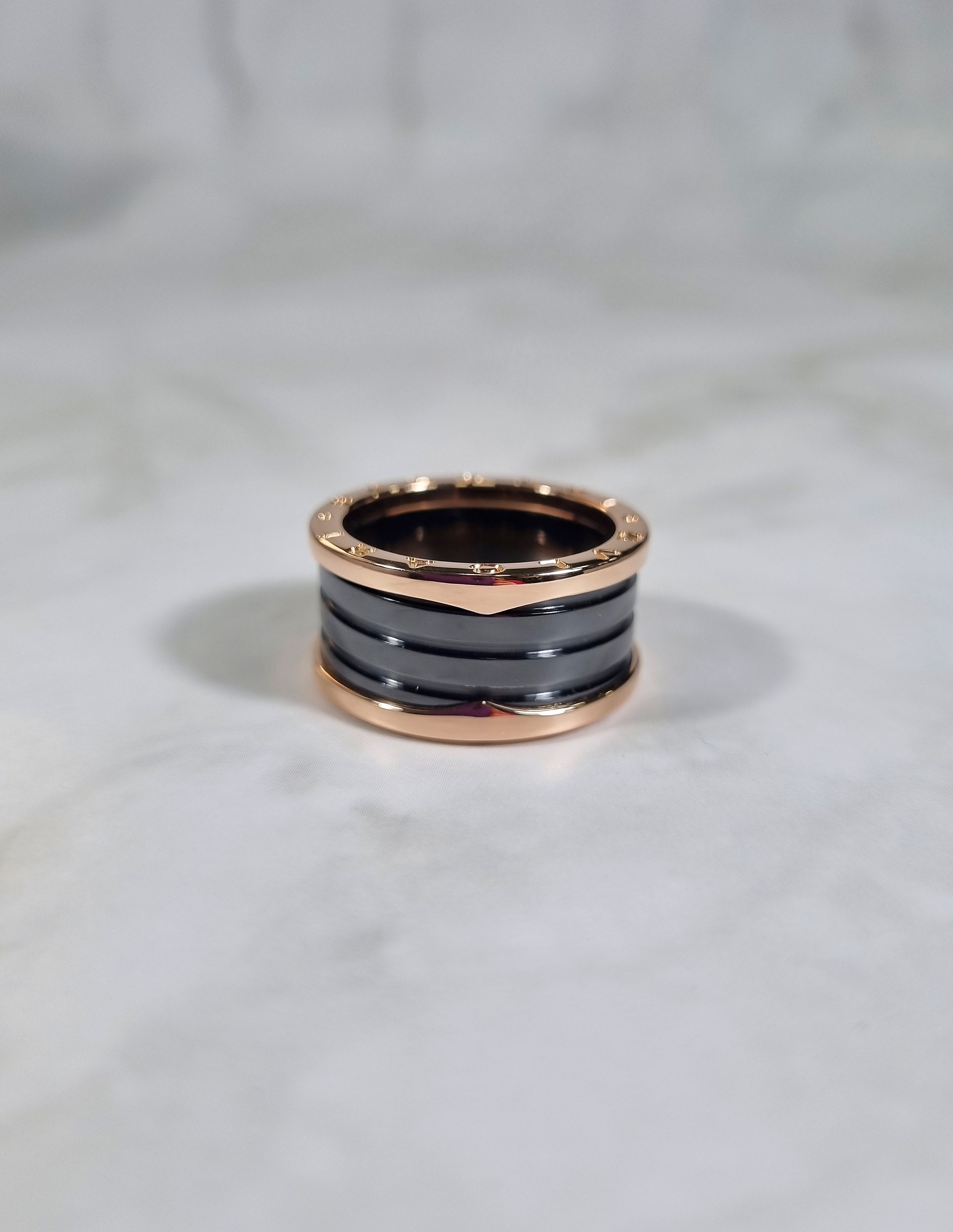 B.ZERO1 RING – это не просто украшение, это произведение искусства, воплощающее в себе элегантность и изысканность. Созданное из розового золота 750 пробы, оно поражает своей утонченной структурой и изящными линиями. Вставка из черной керамики добавляет изделию контраст и глубину, делая его еще более привлекательным.