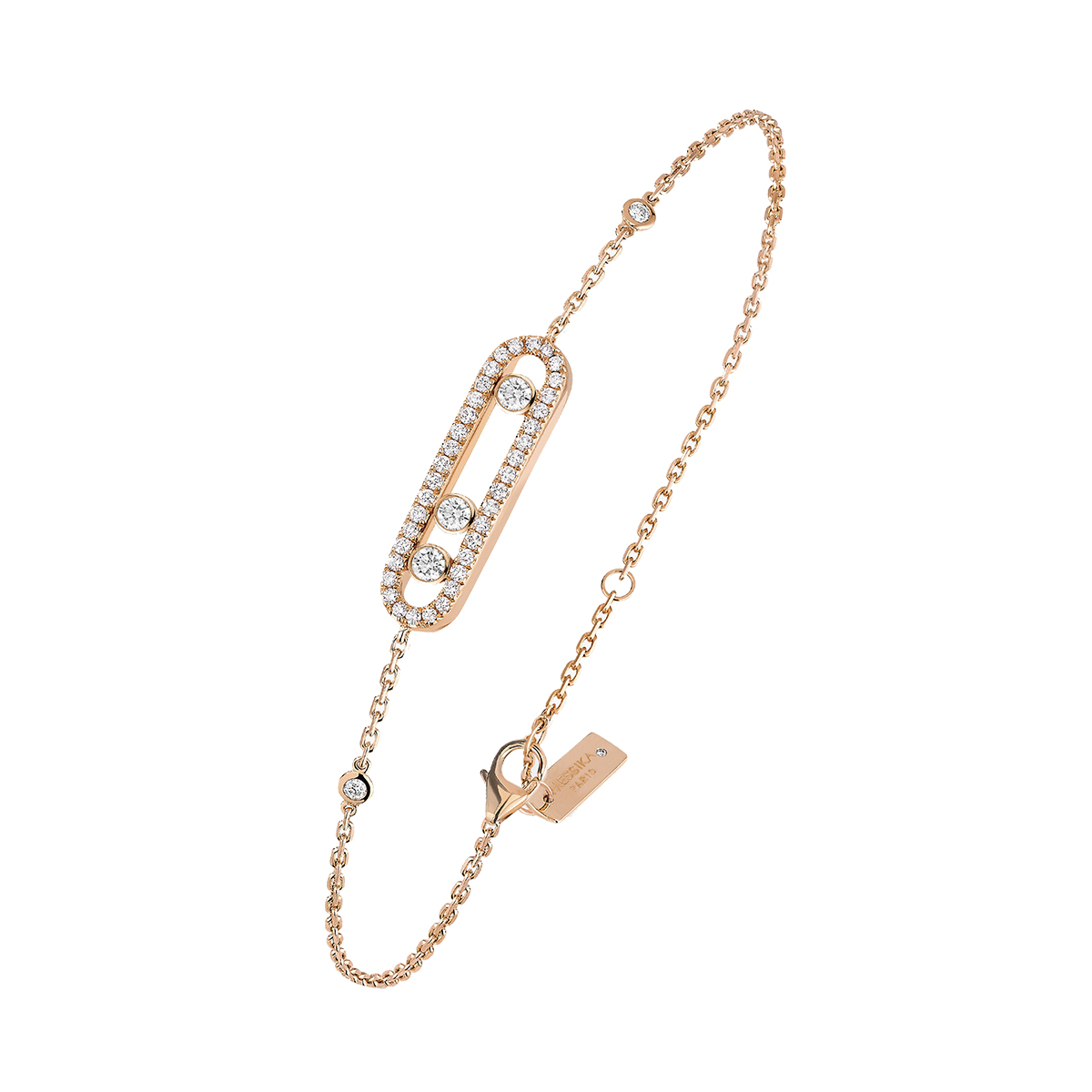 Ваше внимание привлекает изысканный браслет Baby Move Pavé от известного бренда MESSIKA, который станет идеальным дополнением к вашему образу. Этот шедевр ювелирного искусства выполнен из розового золота 750 пробы, что придает ему особую утонченность и элегантность.