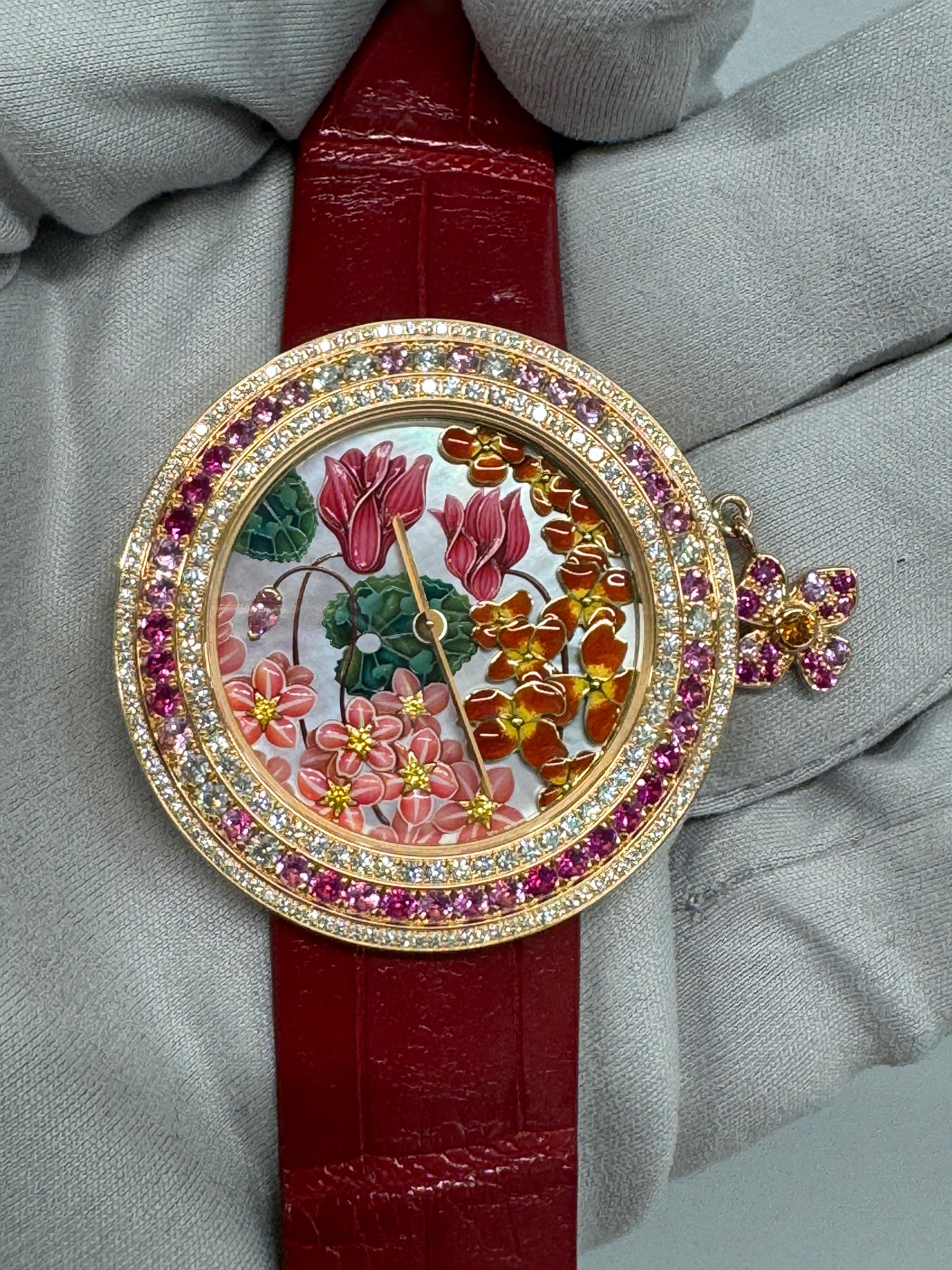 Не упустите возможность стать обладателем этого уникального шедевра, который подчеркнет ваш стиль и статус. Часы Charms Extraordinaire Amour от Van Cleef & Arpels – это не просто аксессуар, это произведение искусства, которое будет радовать вас каждый день.