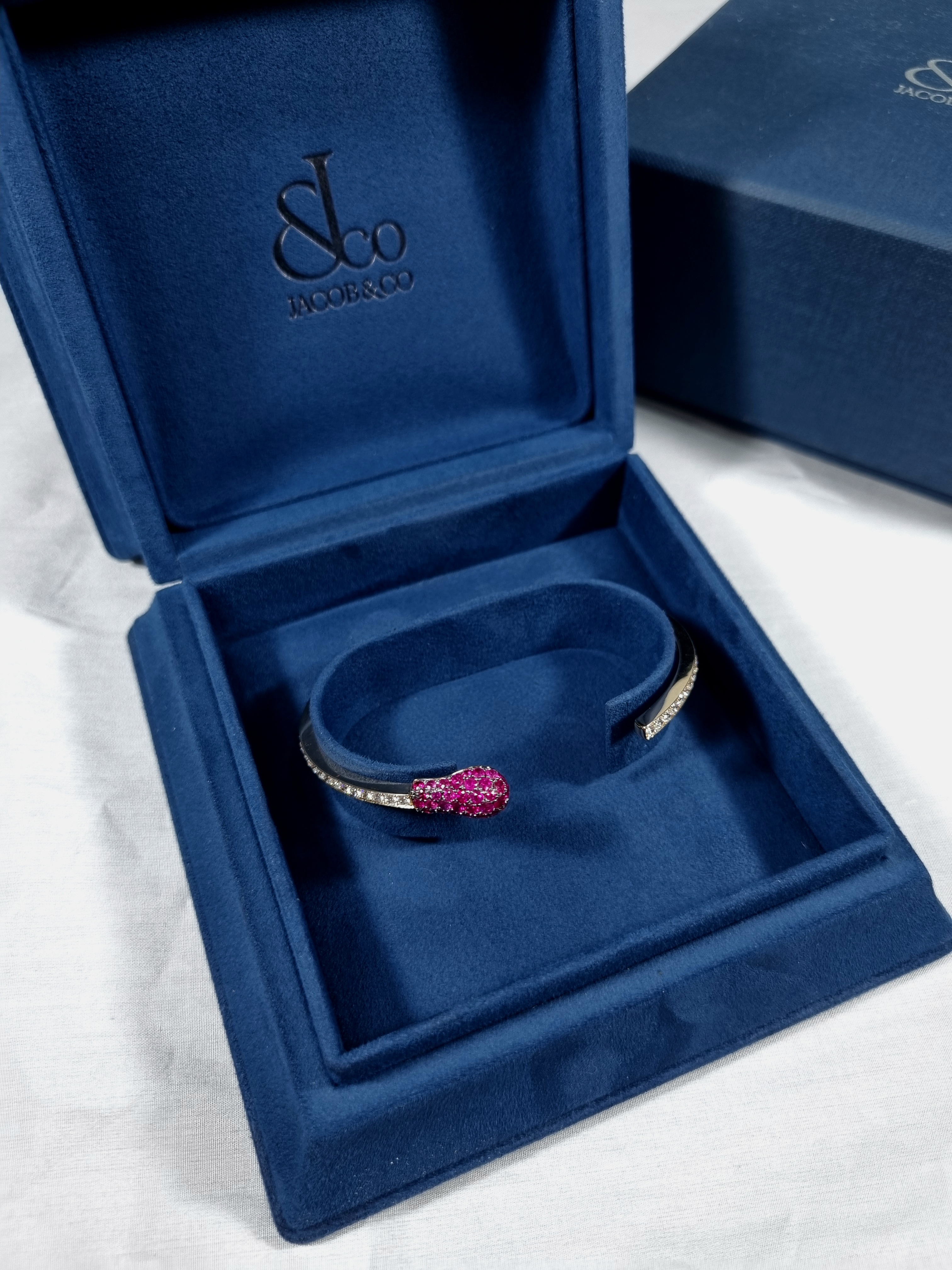 Браслет MATCH COLLECTION от Jacob & Co, представленный в Часовом салоне «Мануфактура», предлагается в идеальном состоянии, что подтверждается соответствующими документами. Кроме того, к нему прилагается оригинальная коробка, что делает его еще более привлекательным для покупки.
