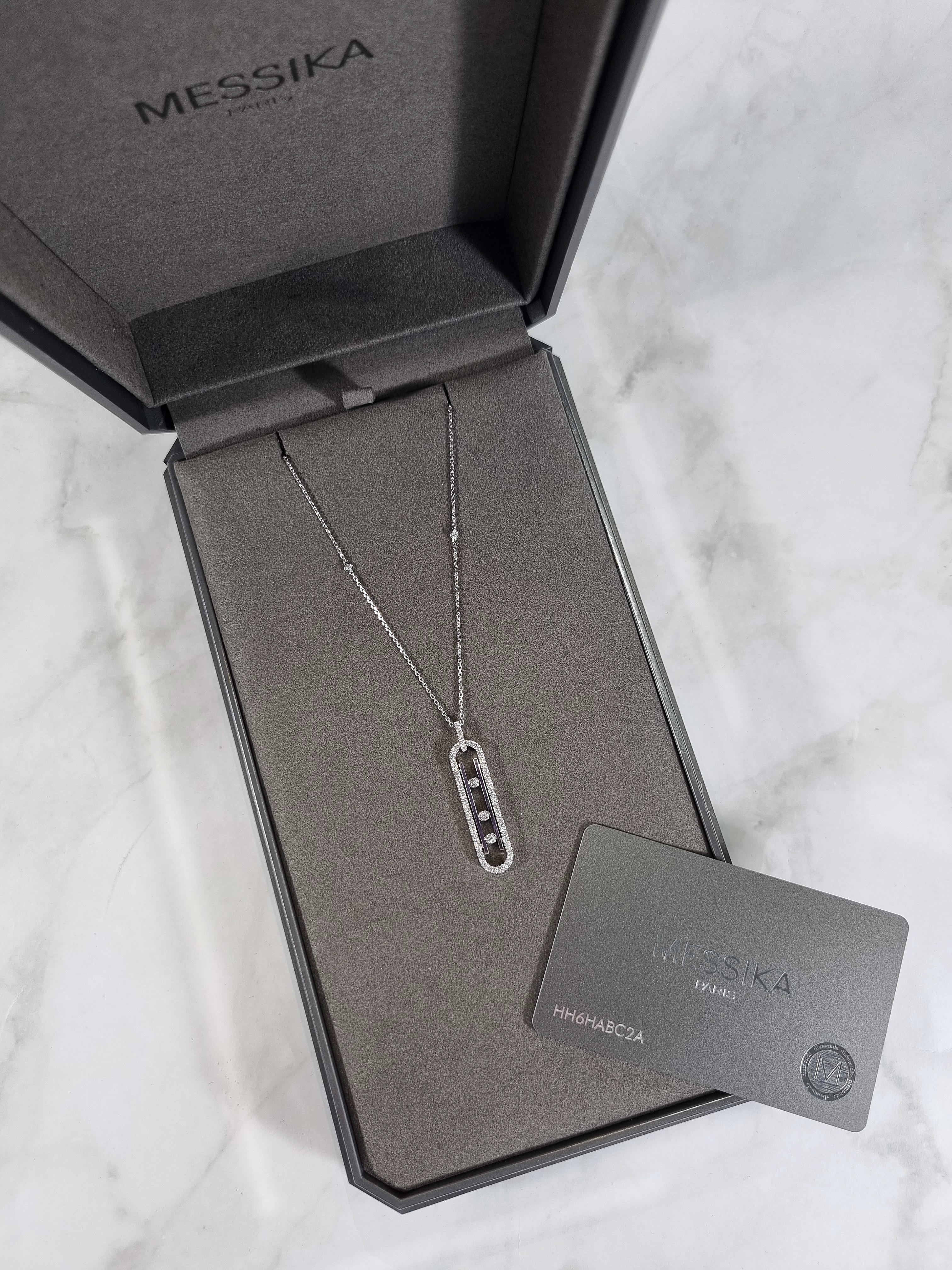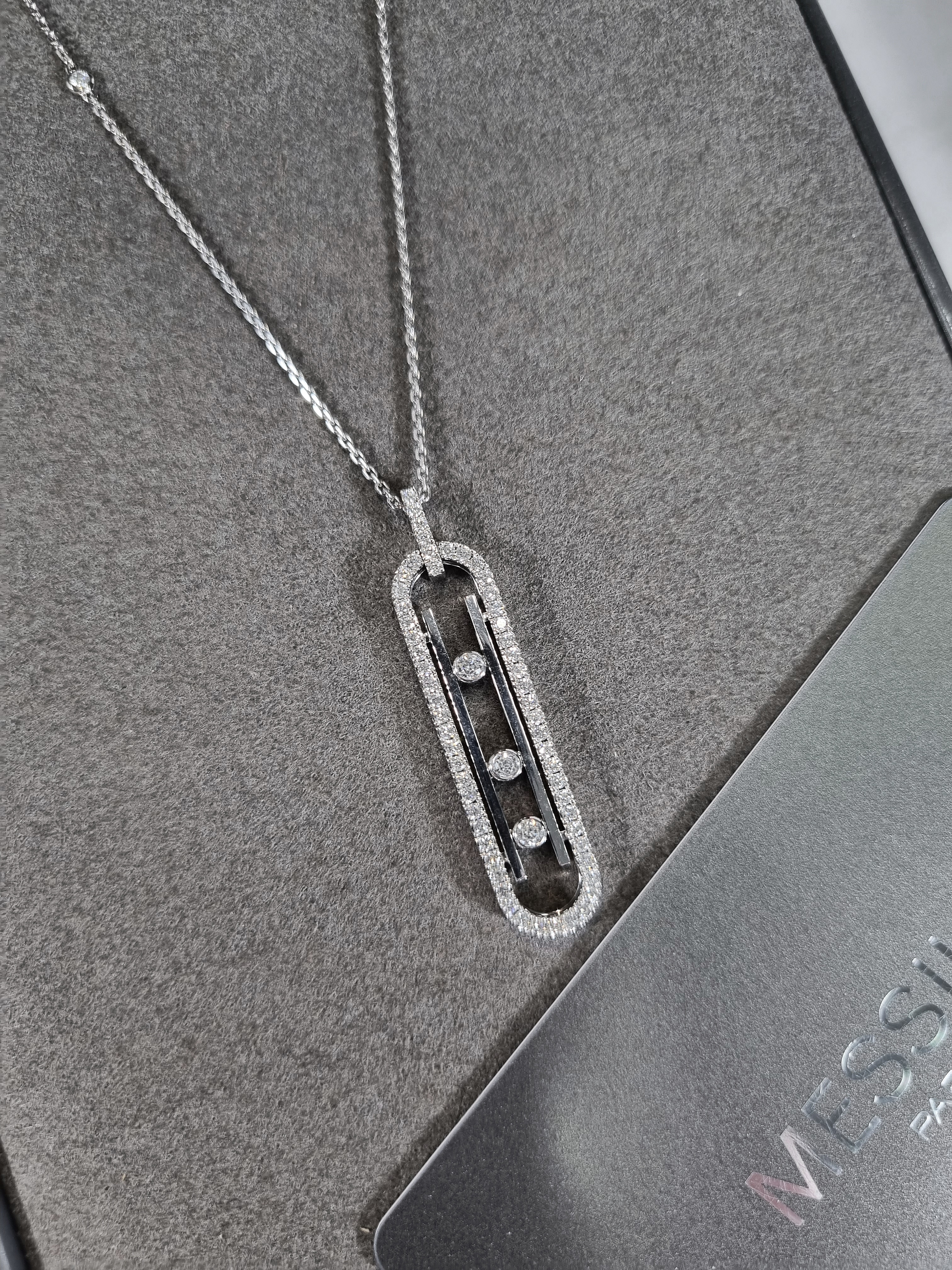 Ваше внимание привлекает изысканное ювелирное изделие Колье Move 10th SM Necklace от известного бренда MESSIKA, представленного в нашем часовом салоне «Мануфактура». Этот шедевр ювелирного искусства станет идеальным дополнением к вашему образу, подчеркнув вашу индивидуальность и стиль.