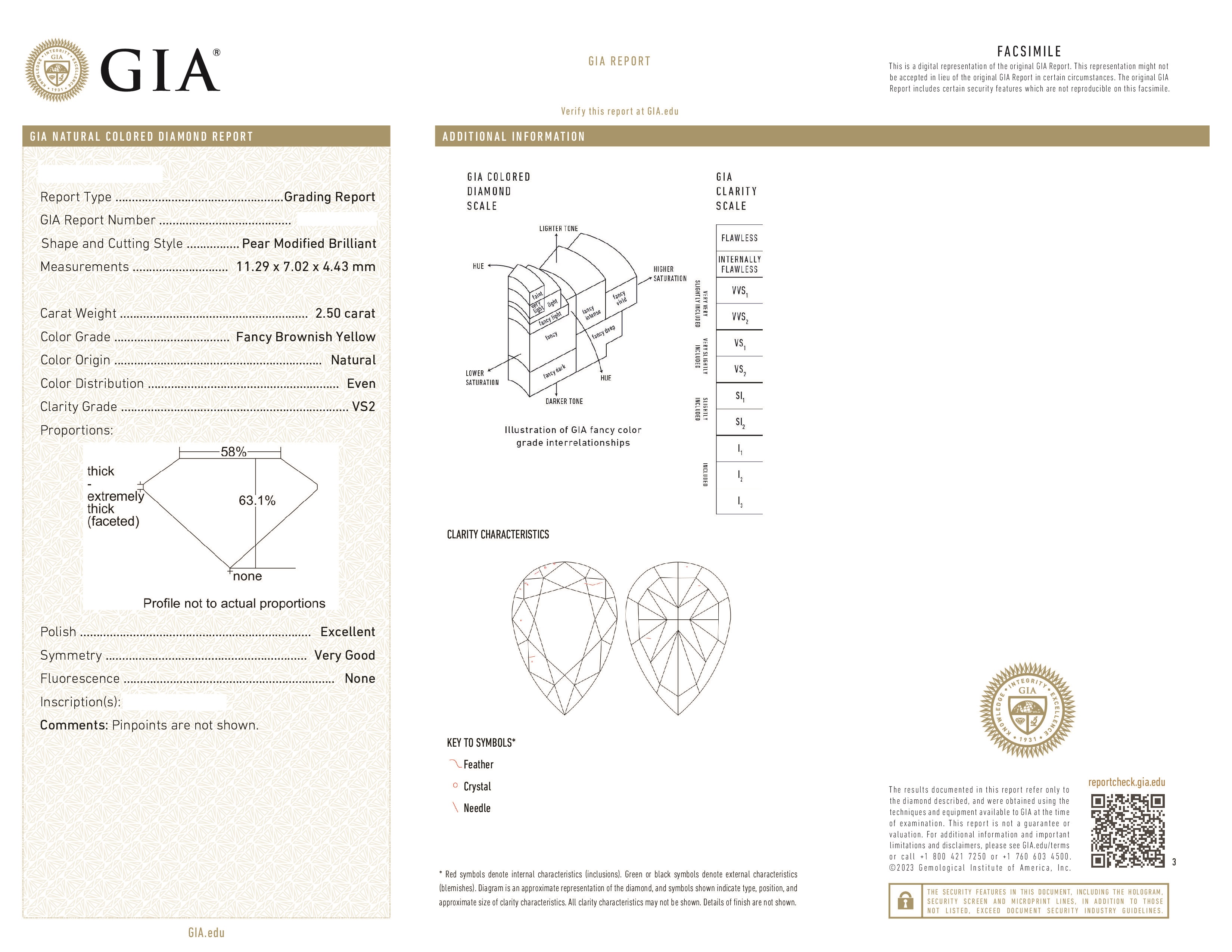 Вставка Нижний бриллиант 2,50 ct. Fancy Brownish Yellow/VS2, верхний бриллиант 0,70 ct. F/VS2
