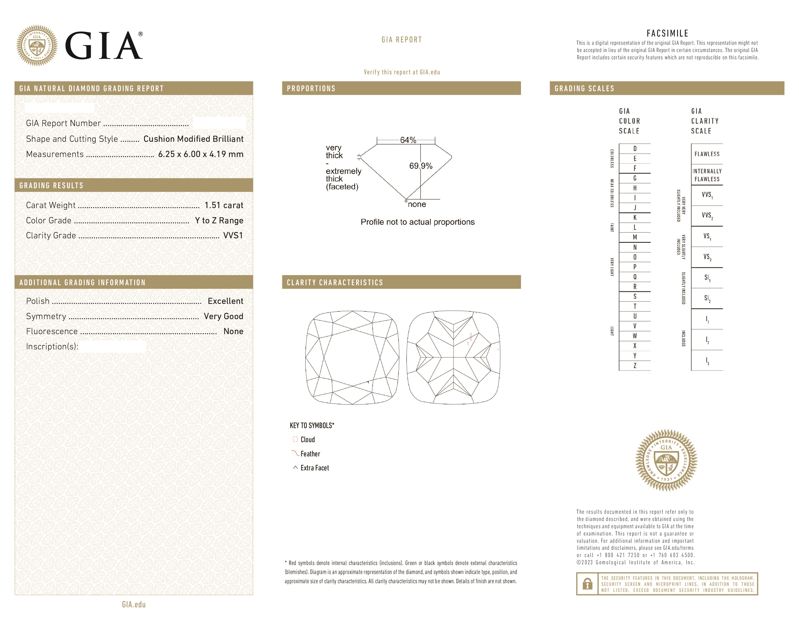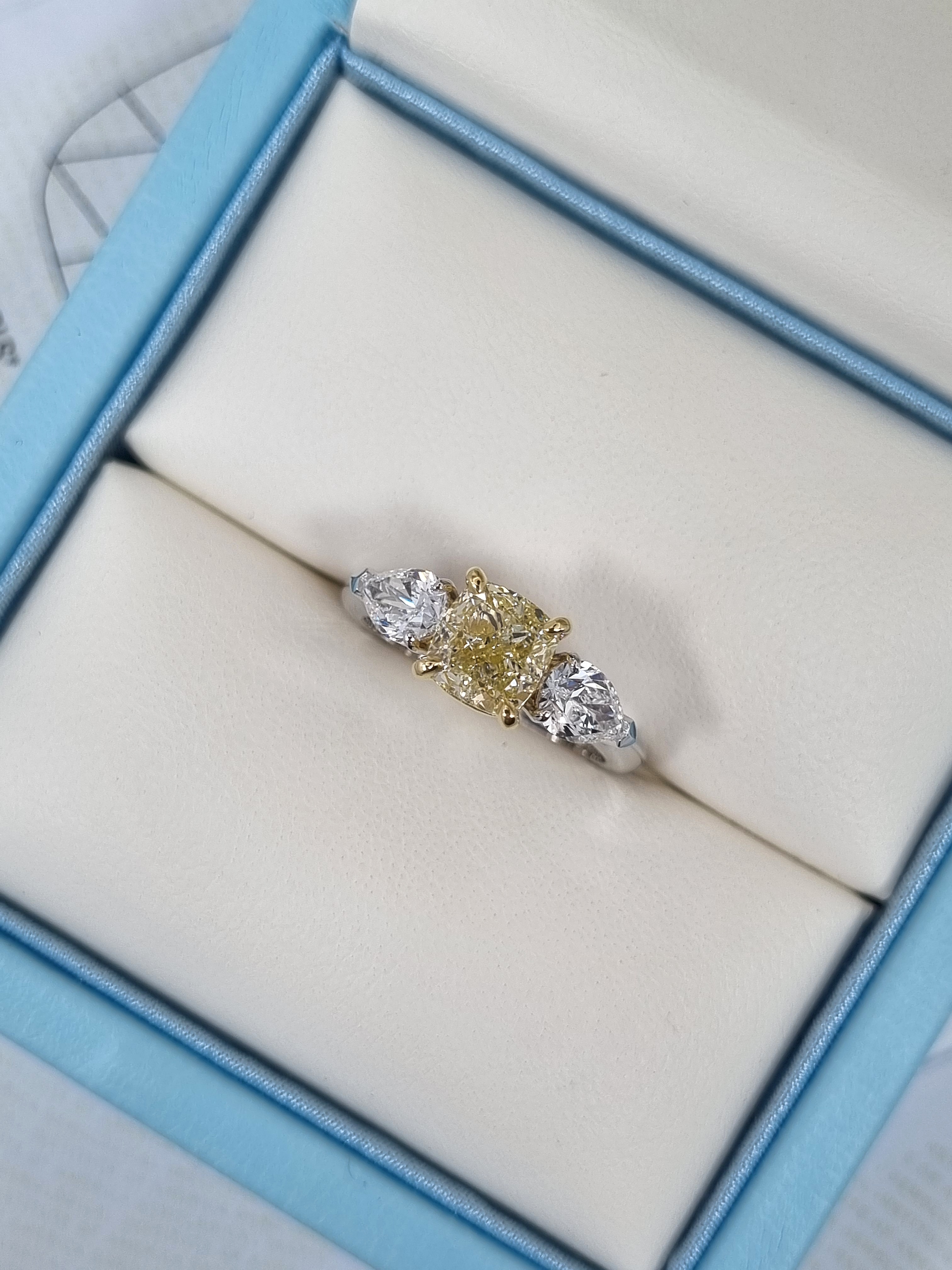 Вставка Центральный бриллиант 1,51 ct. Y to Z/VVS1, боковые бриллианты 0,82 ct. D/VS2