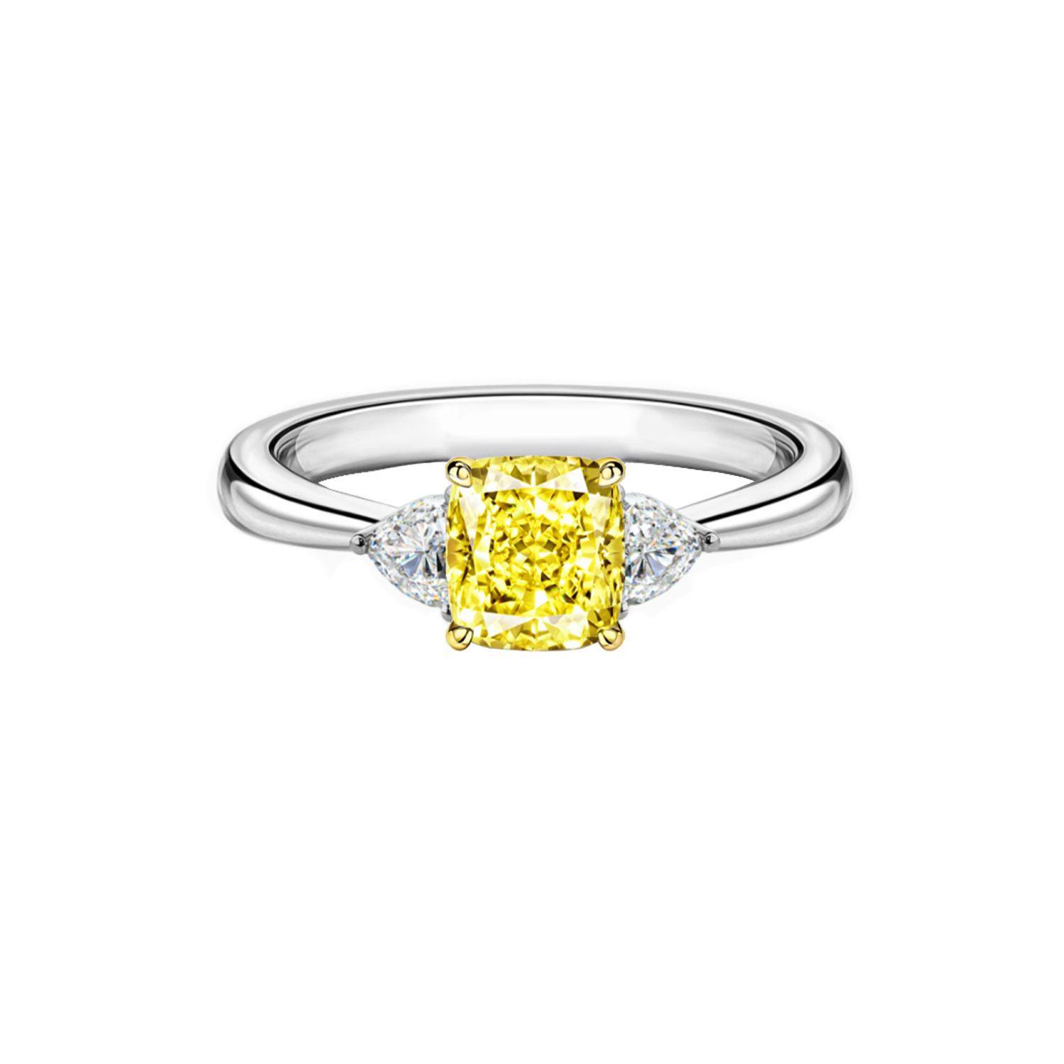 Вставка Центральный бриллиант 1,72 ct. Fancy Light Yellow/VVS2; 2 боковых бриллианта огранки "Сердце" общей массой 0,86 ct. G/VS2
