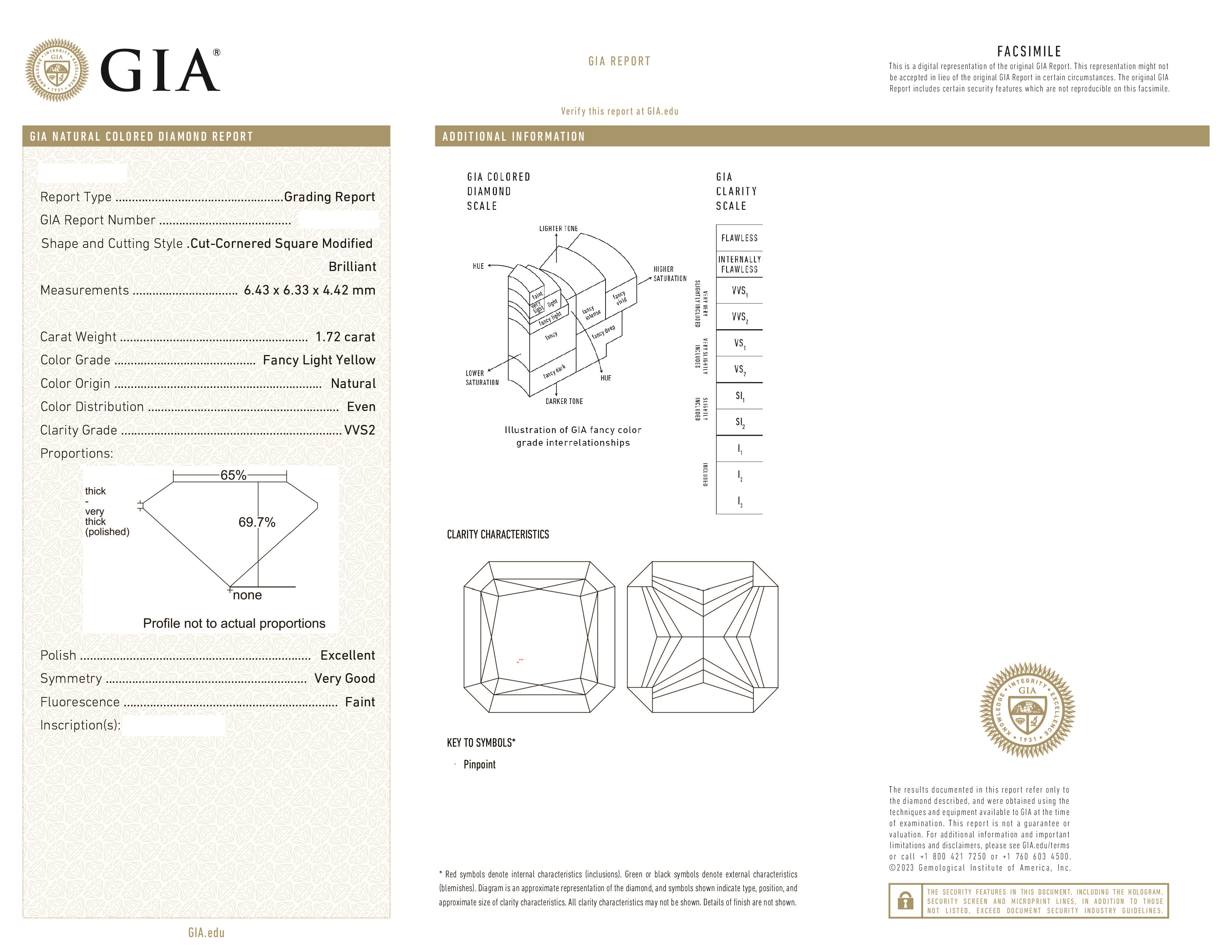 GIA Кольцо 1,72 Ct. Fancy Light Yellow/vvs2