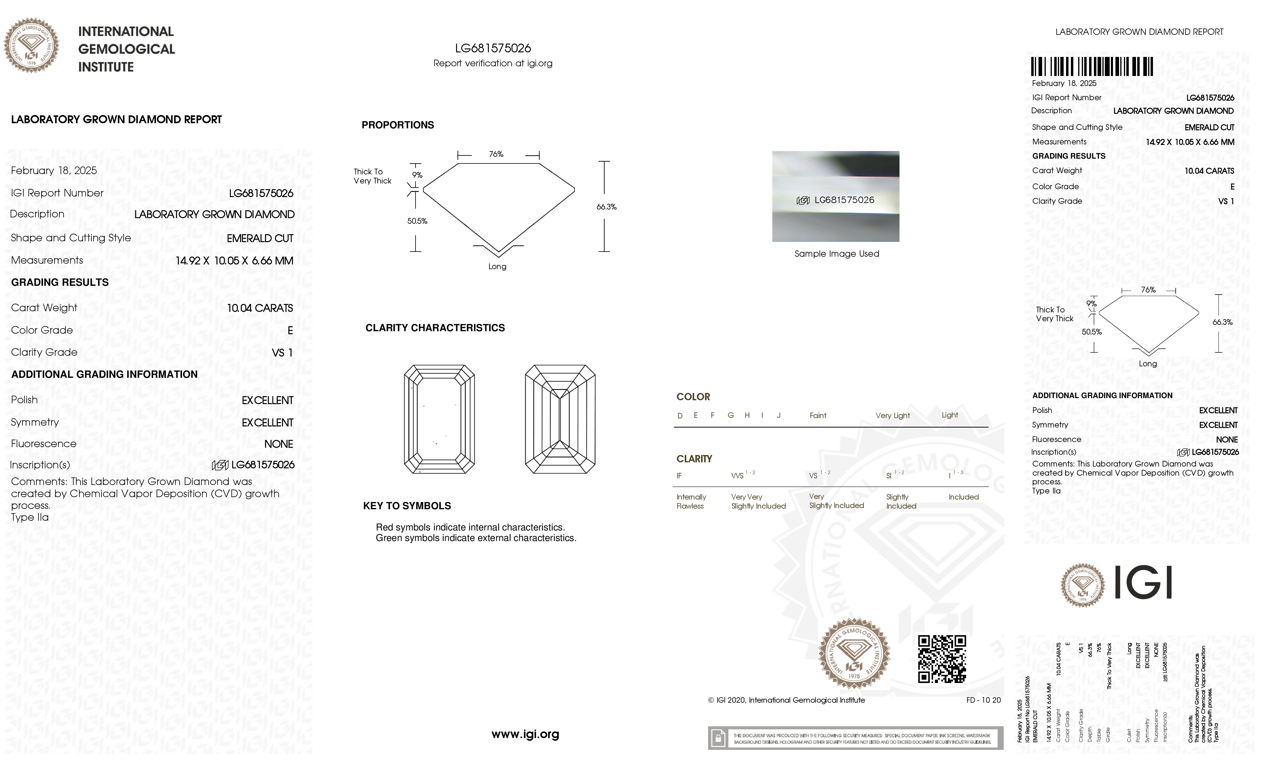 NO NAME Кольцо 10,04 Ct. E/vs1 Laboratory Grown Diamond