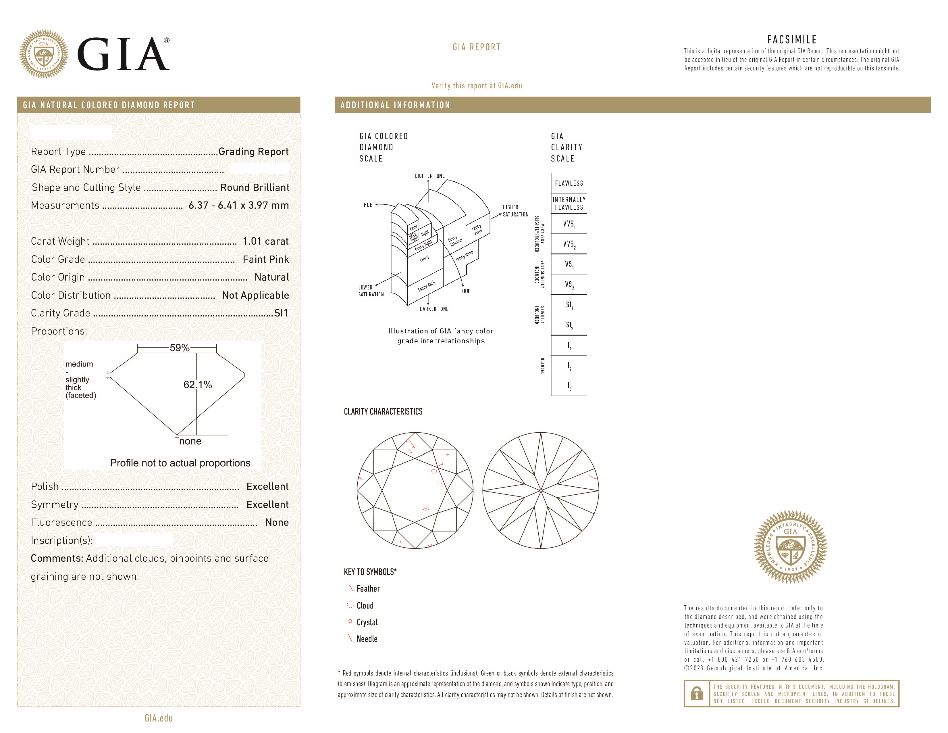 GIA Кольцо с бриллиантом 1,01 Ct. Faint Pink/si1