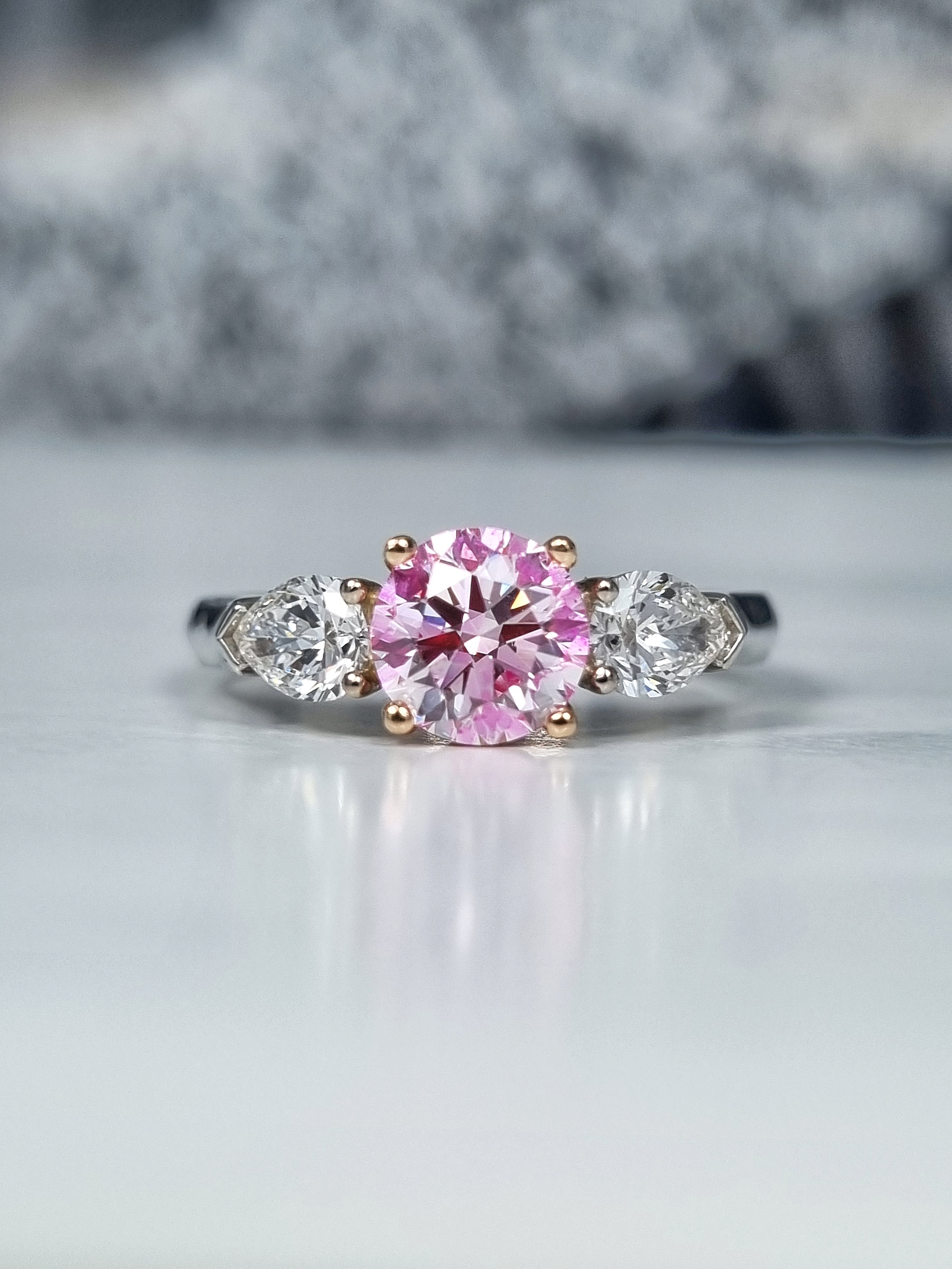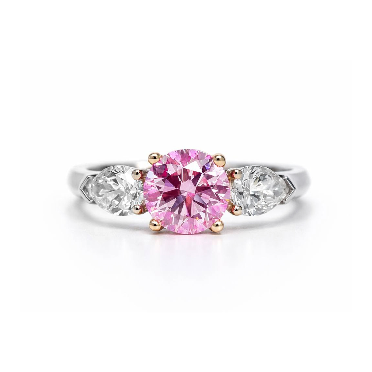 Вставка Центральный бриллиант 1,01 ct. Faint Pink/Si1; 2 боковых бриллианта общим весом 0,60 ct. E/VS1