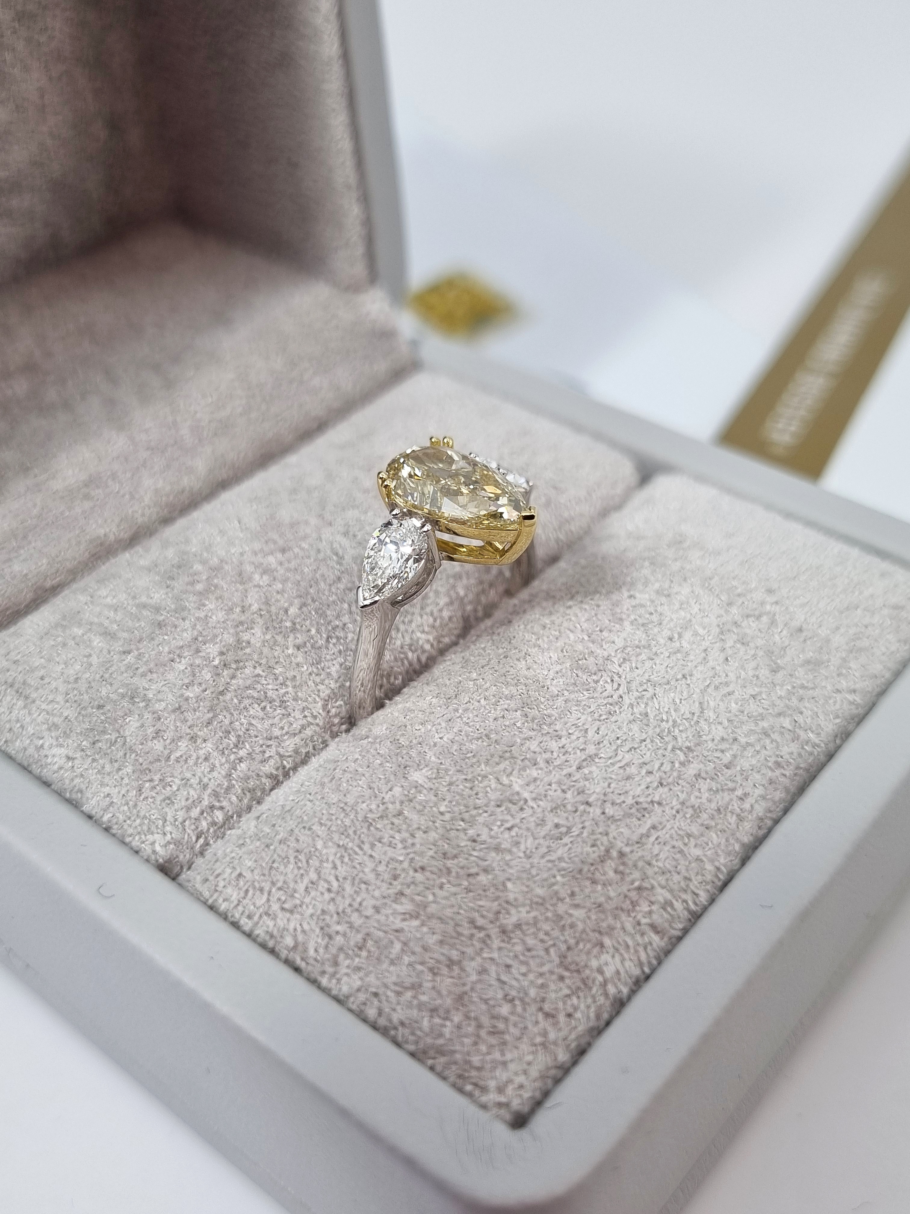 Вашему вниманию предлагается эксклюзивное ювелирное изделие от бренда NO NAME – кольцо с бриллиантом 2,12 ct. FBY/Si1. Это настоящий шедевр ювелирного искусства, который станет украшением любой леди. Центральный бриллиант весом 2,12 карата обладает уникальным оттенком Fancy Brownish Yellow и классом чистоты Si1, что делает его поистине уникальным. Боковые бриллианты общим весом 0,80 карата имеют класс чистоты H/VVS2 и добавляют изделию дополнительный блеск и роскошь.