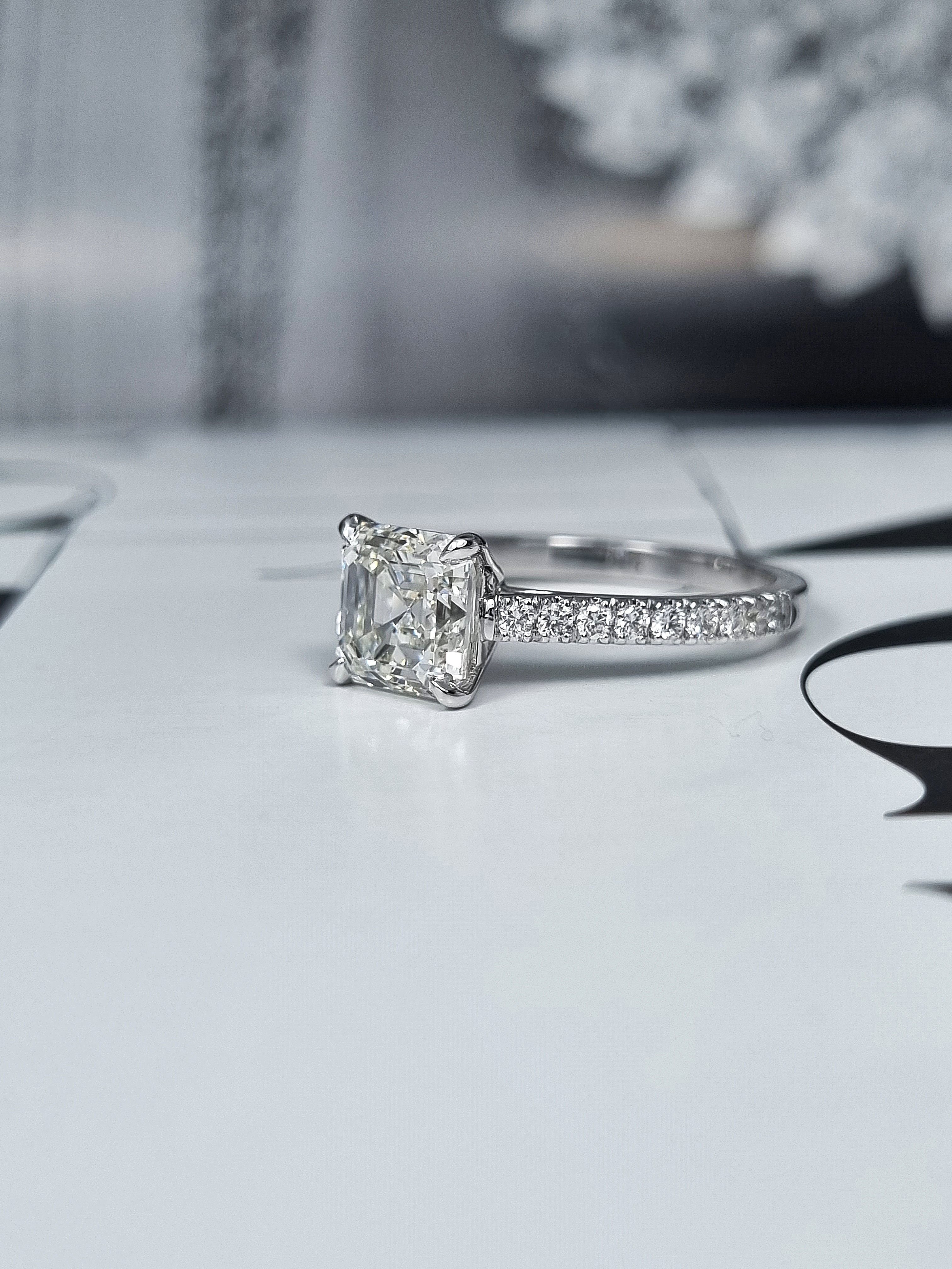 Вставка 1 бриллиант 1,73 ct. H/Internally Flawless (Asscher cut); бриллиантовое паве