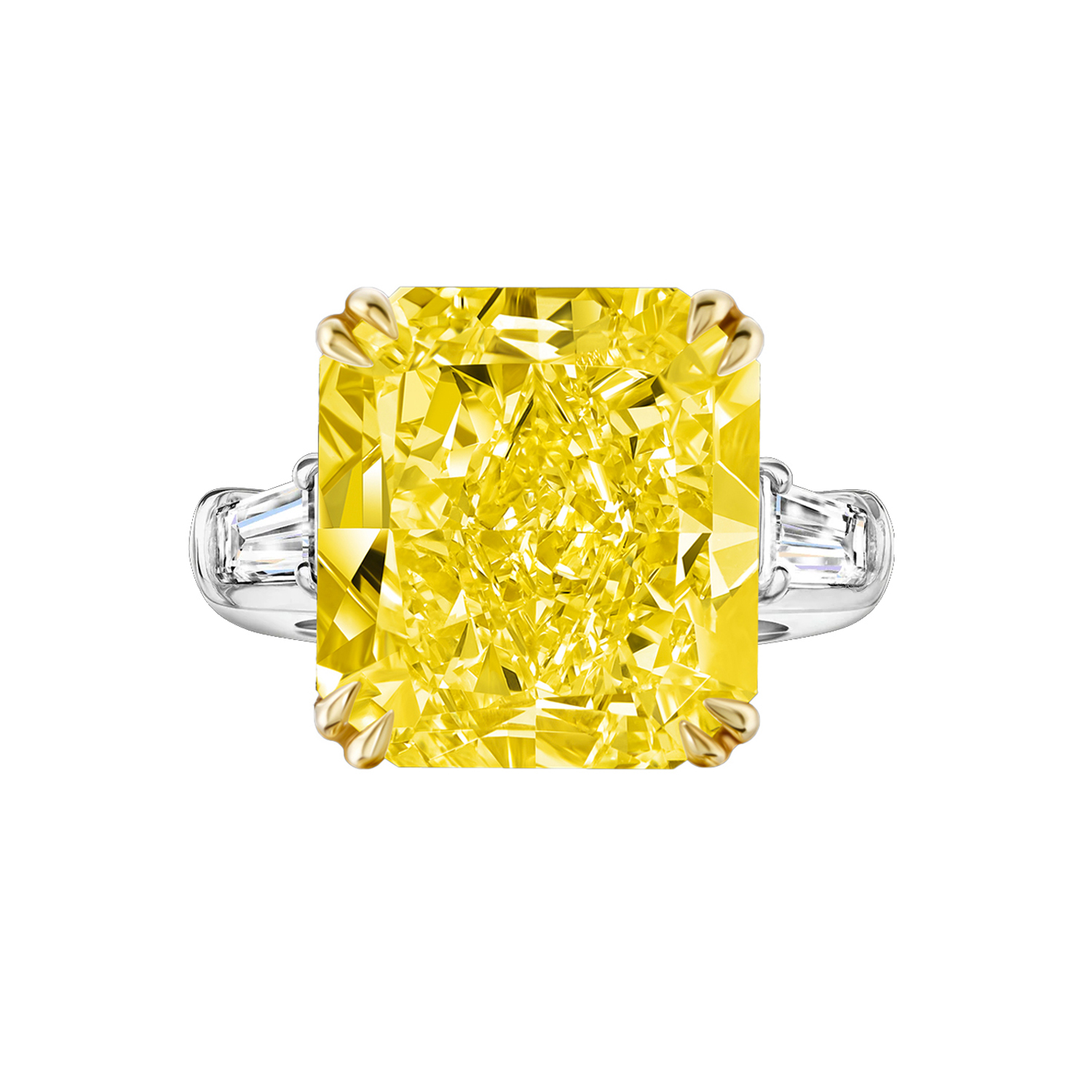 Вставка Центральный бриллиант 10,03 сt. Fancy Yellow/VVS2; 2 боковых бриллианта общей массой 0,38 ct.