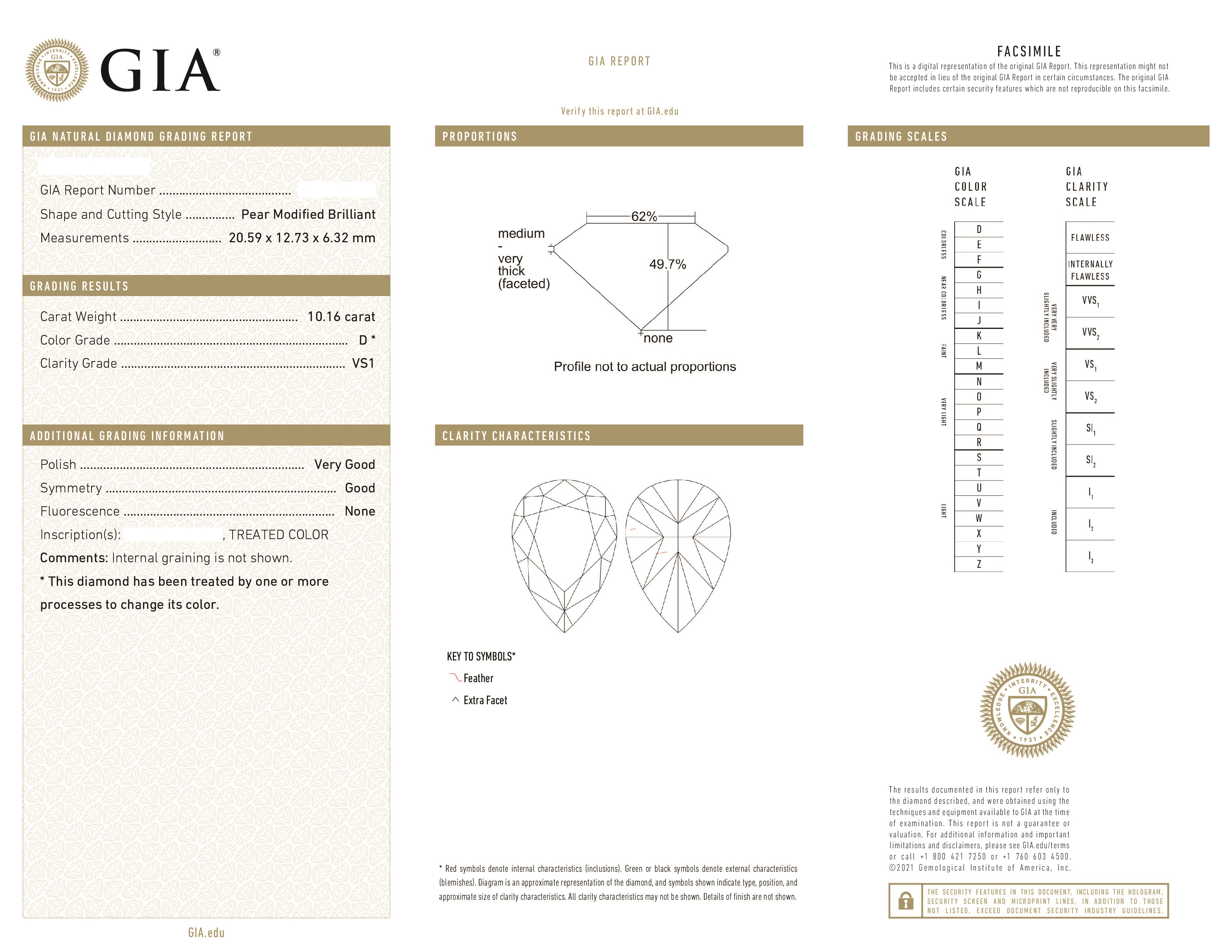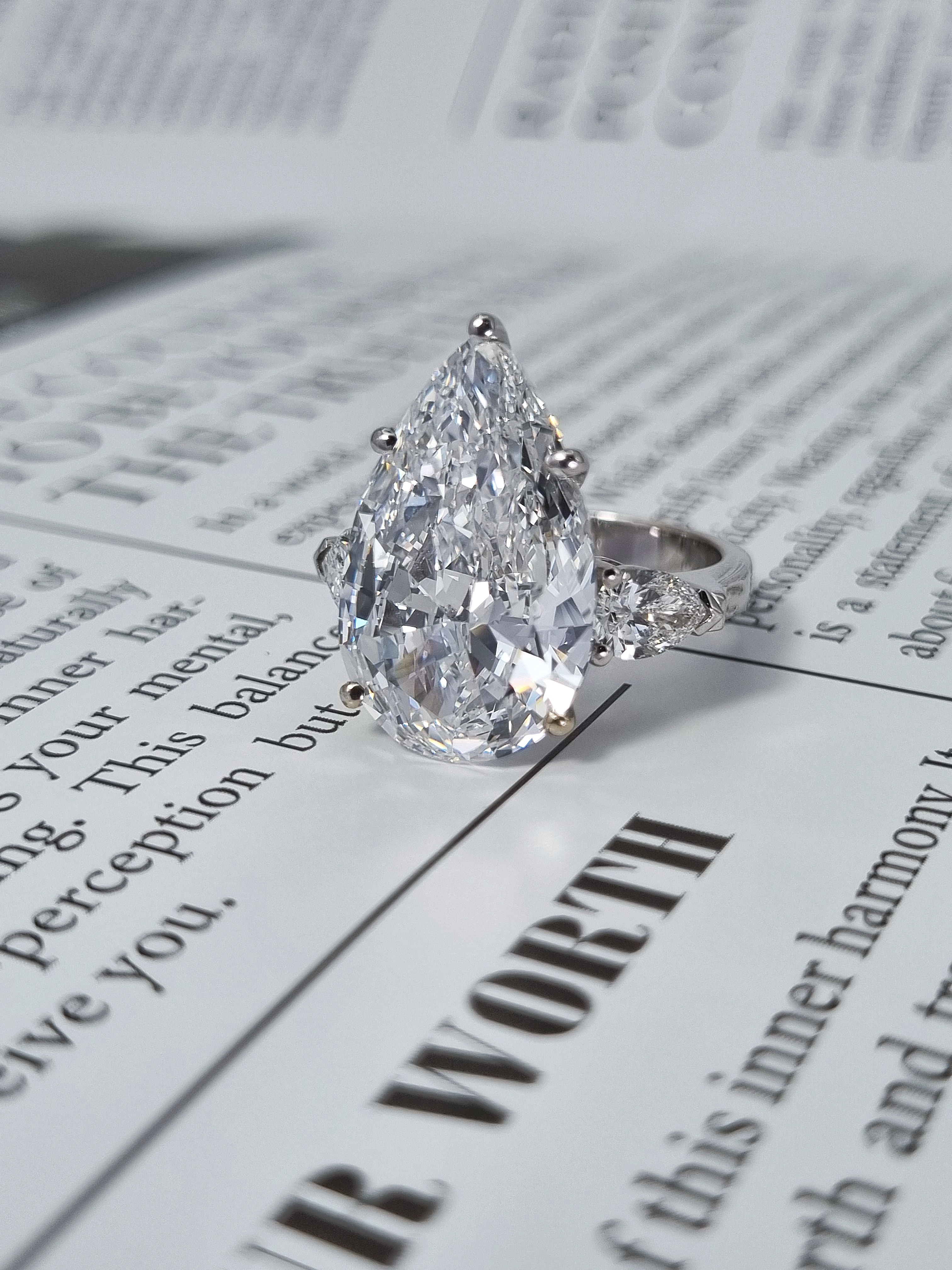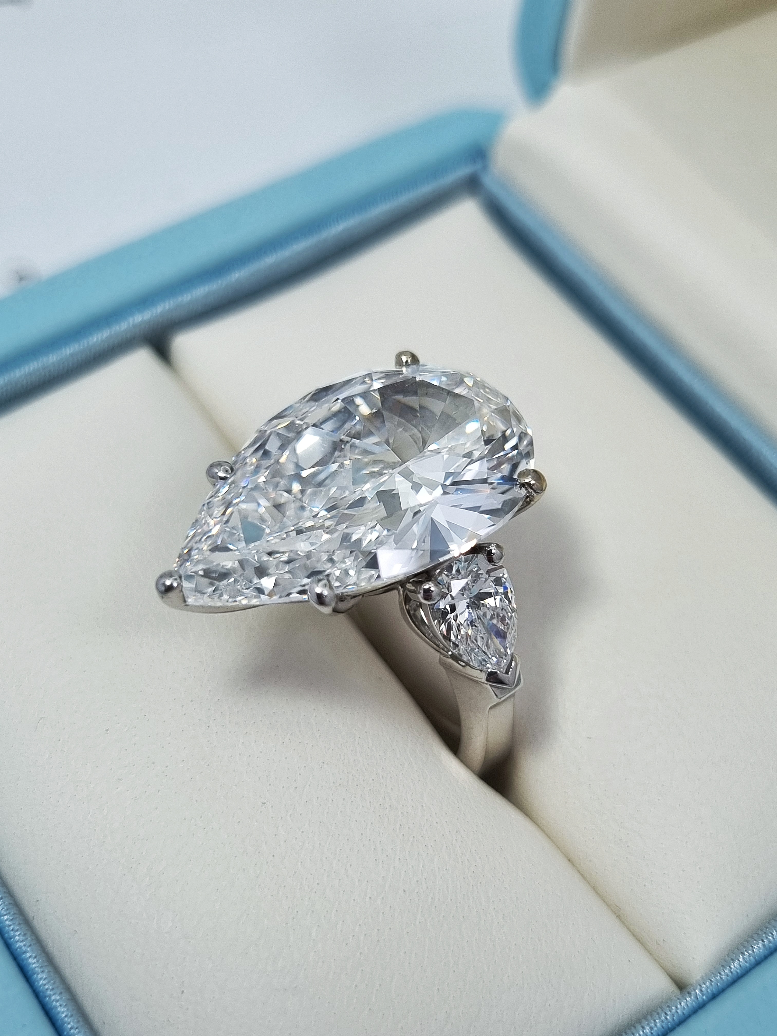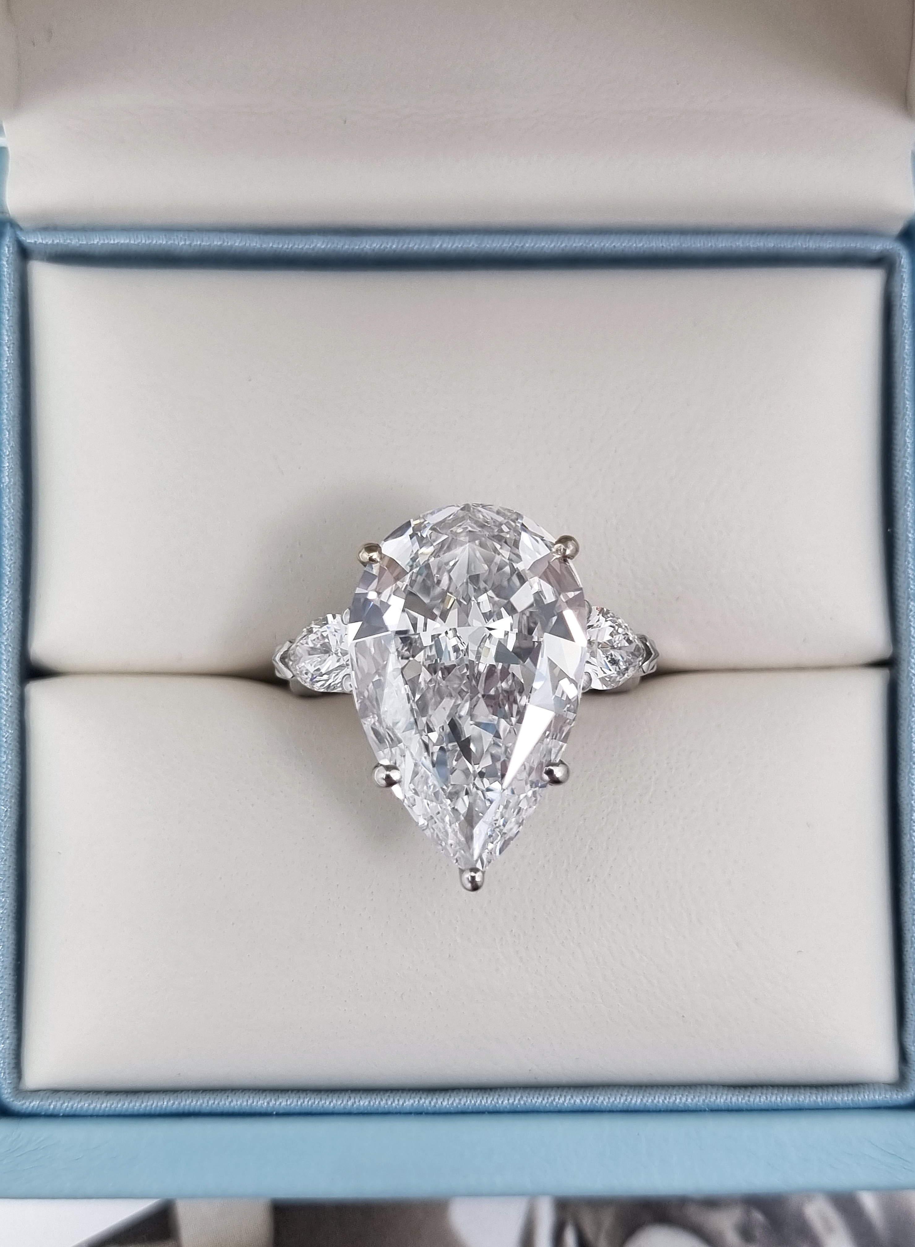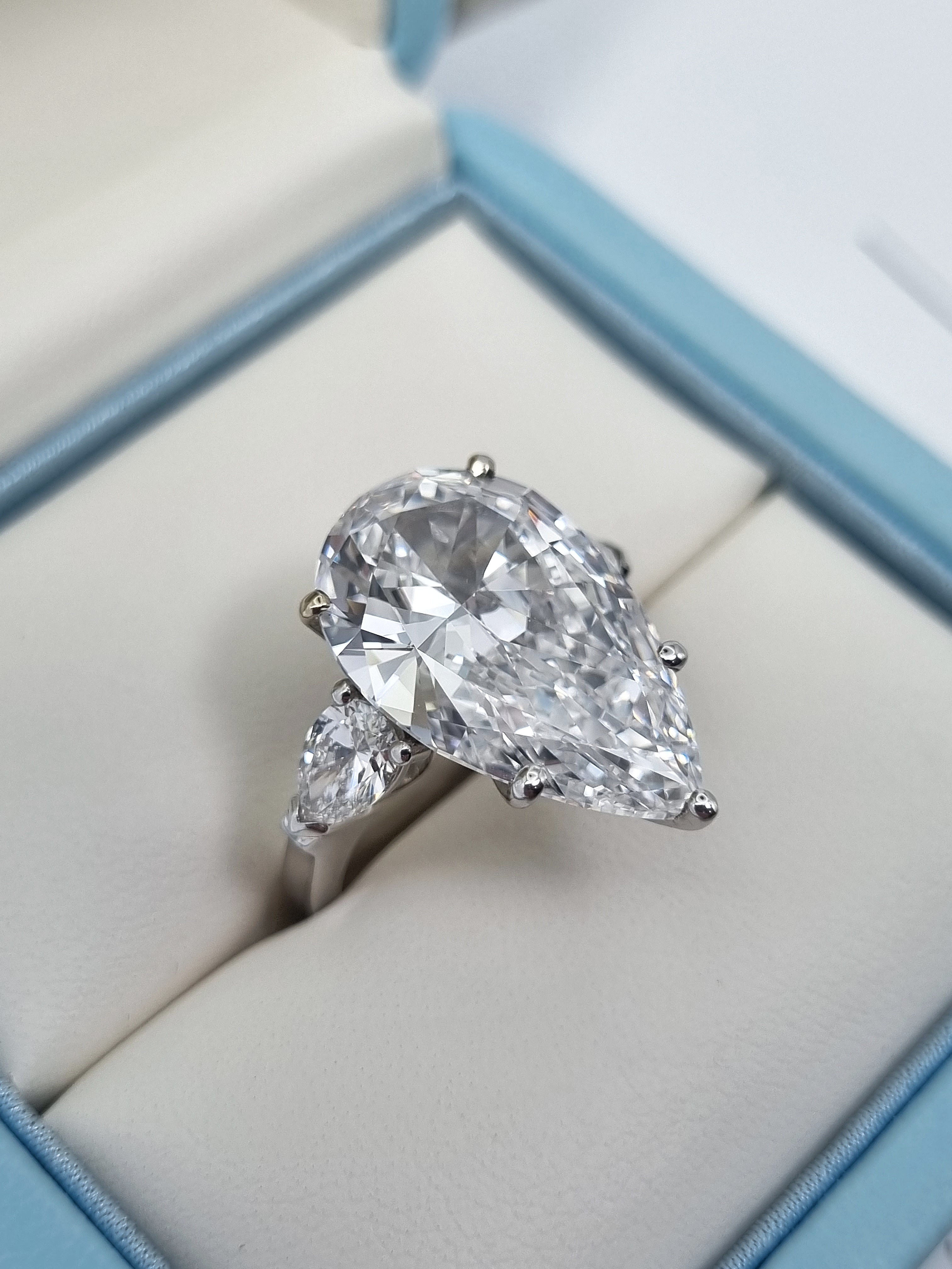 Вставка Центральный бриллиант 10,16 ct. D*(Treated Color)/VS1; боковые бриллианты огранки груша