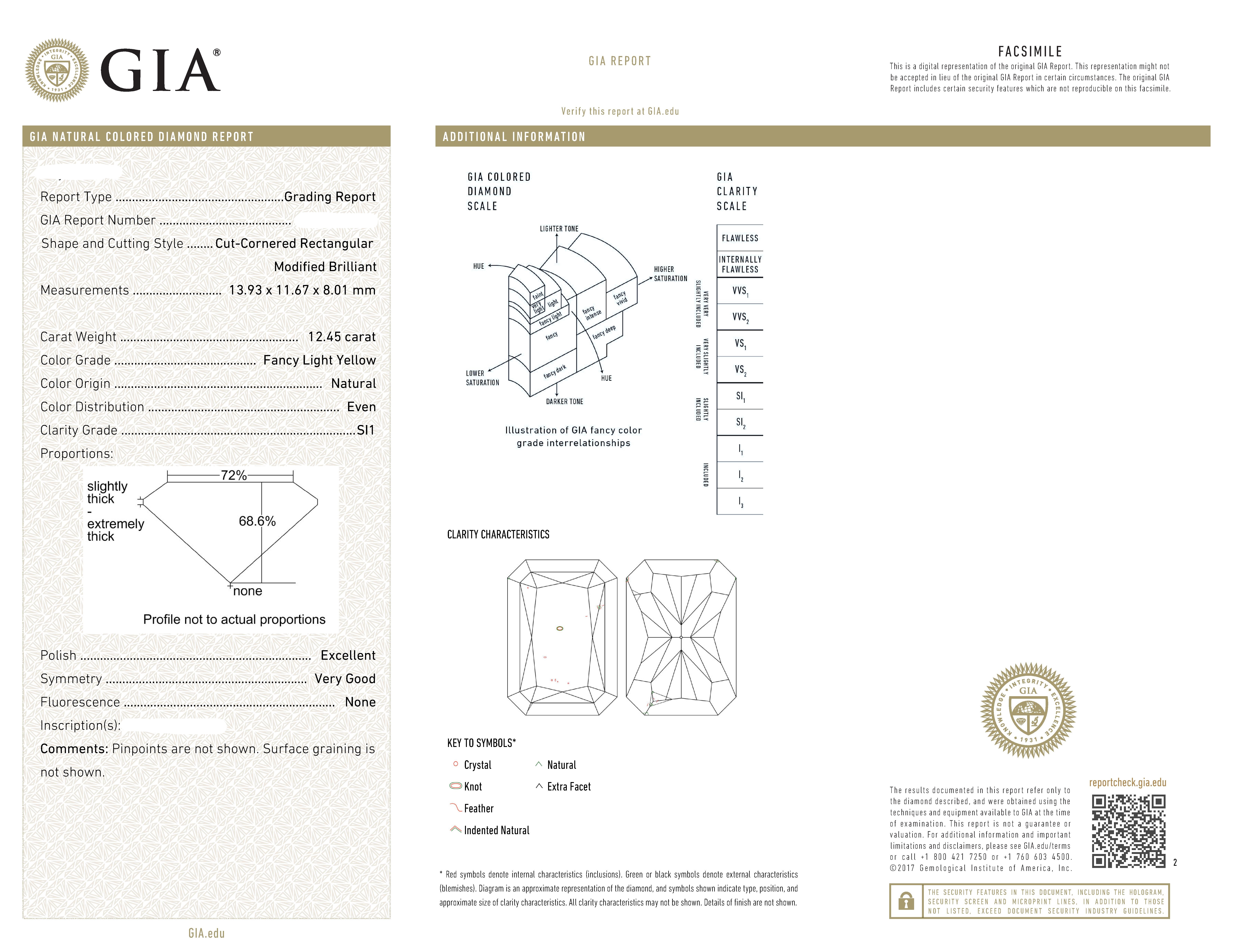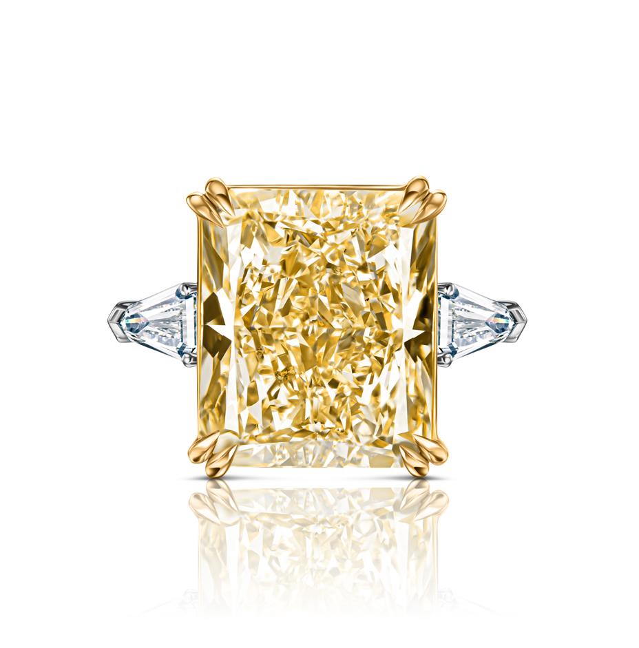 Центральный бриллиант весом 12,45 карата, имеющий сертификат GIA, является настоящим украшением этого кольца. Его огранка FLY/SI1 придает ему неповторимую игру света и тени, делая его невероятно привлекательным. Боковые бриллианты Fine White/VS добавляют дополнительный блеск и роскошь, делая кольцо по-настоящему уникальным.