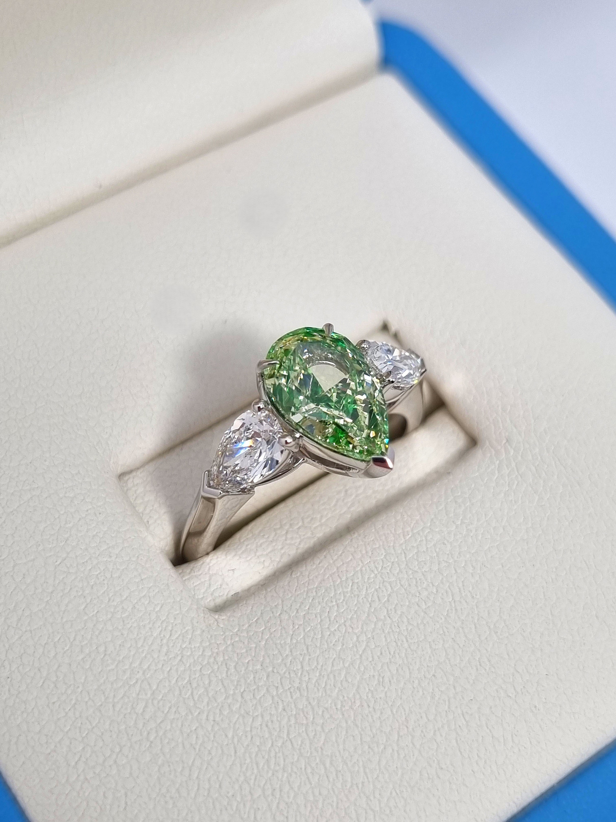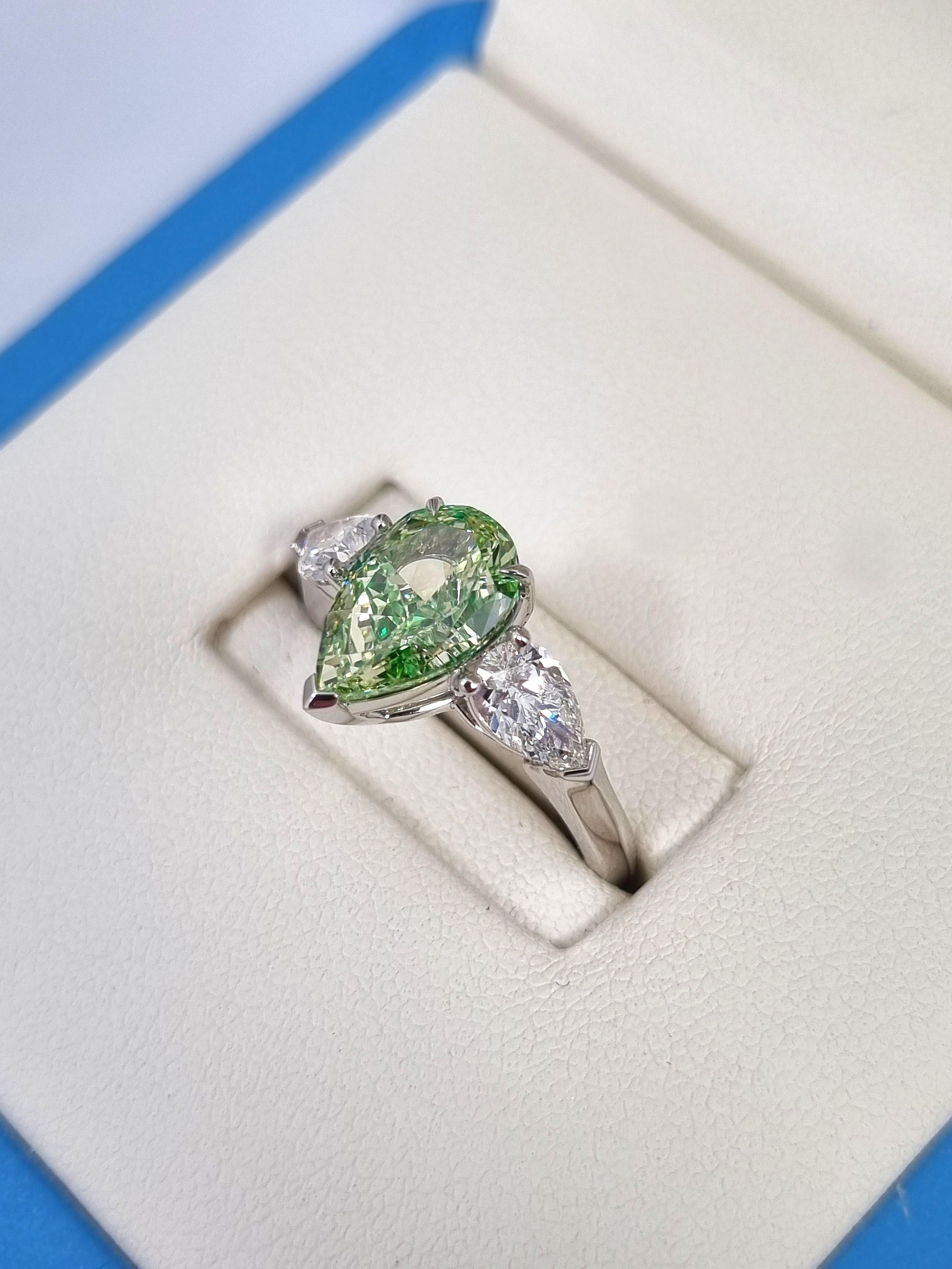 Вставка Центральный бриллиант 2,01 ct. Fancy Brownish Greenish Yellow/VS1; боковые бриллианты общей массой 0,60 ct. D/VS1