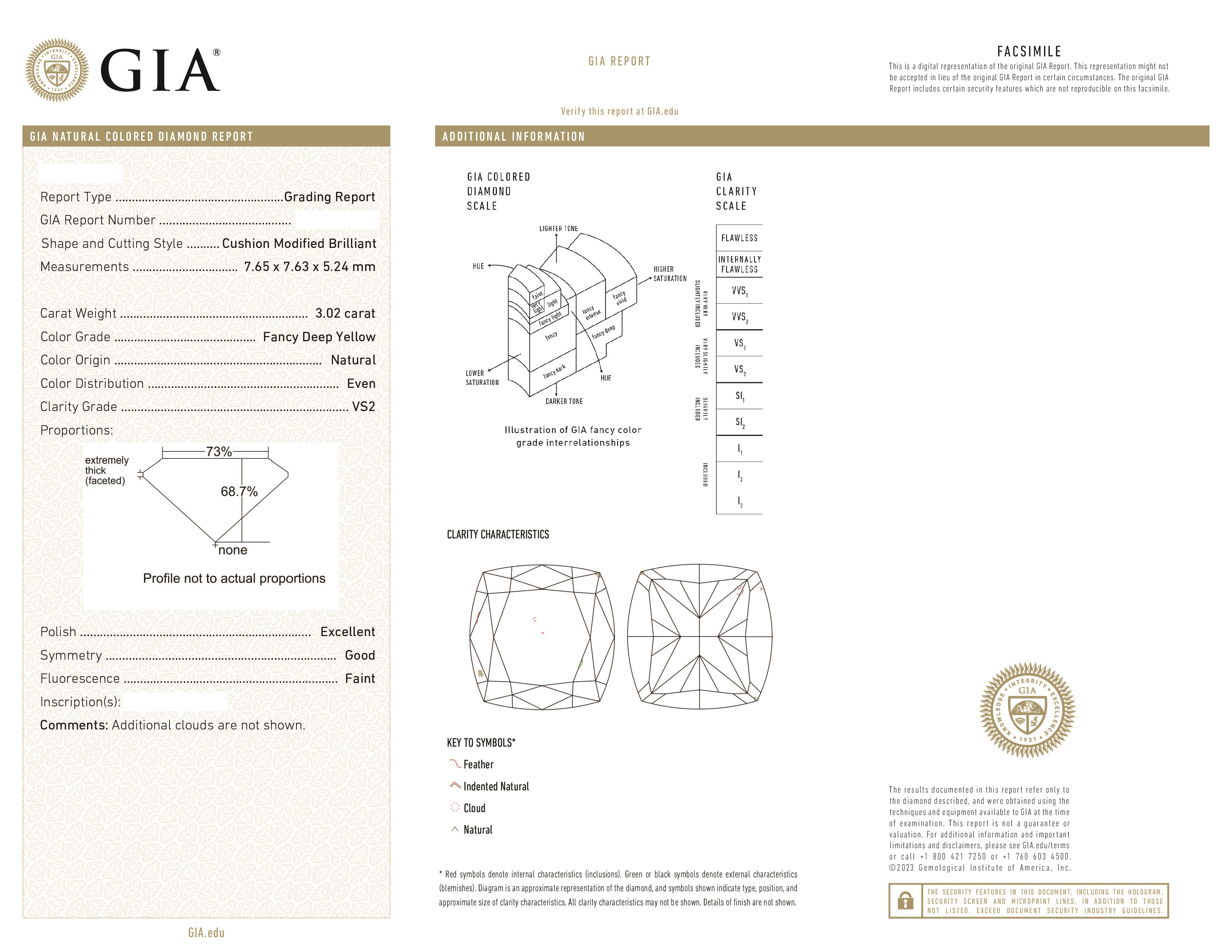 GIA Кольцо с бриллиантом 3,02 Ct. Fancy Deep Yellow/vs2
