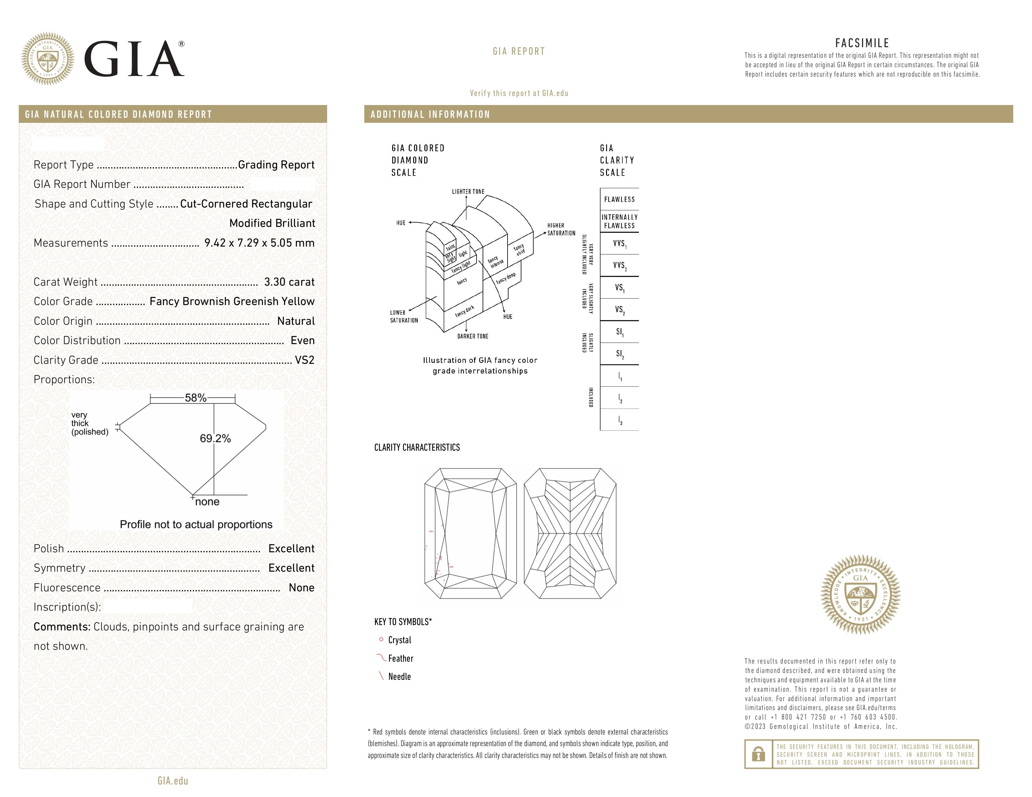 GIA Кольцо с бриллиантом 3,30 Ct. Fancy Brownish Greenish Yellow/vs2