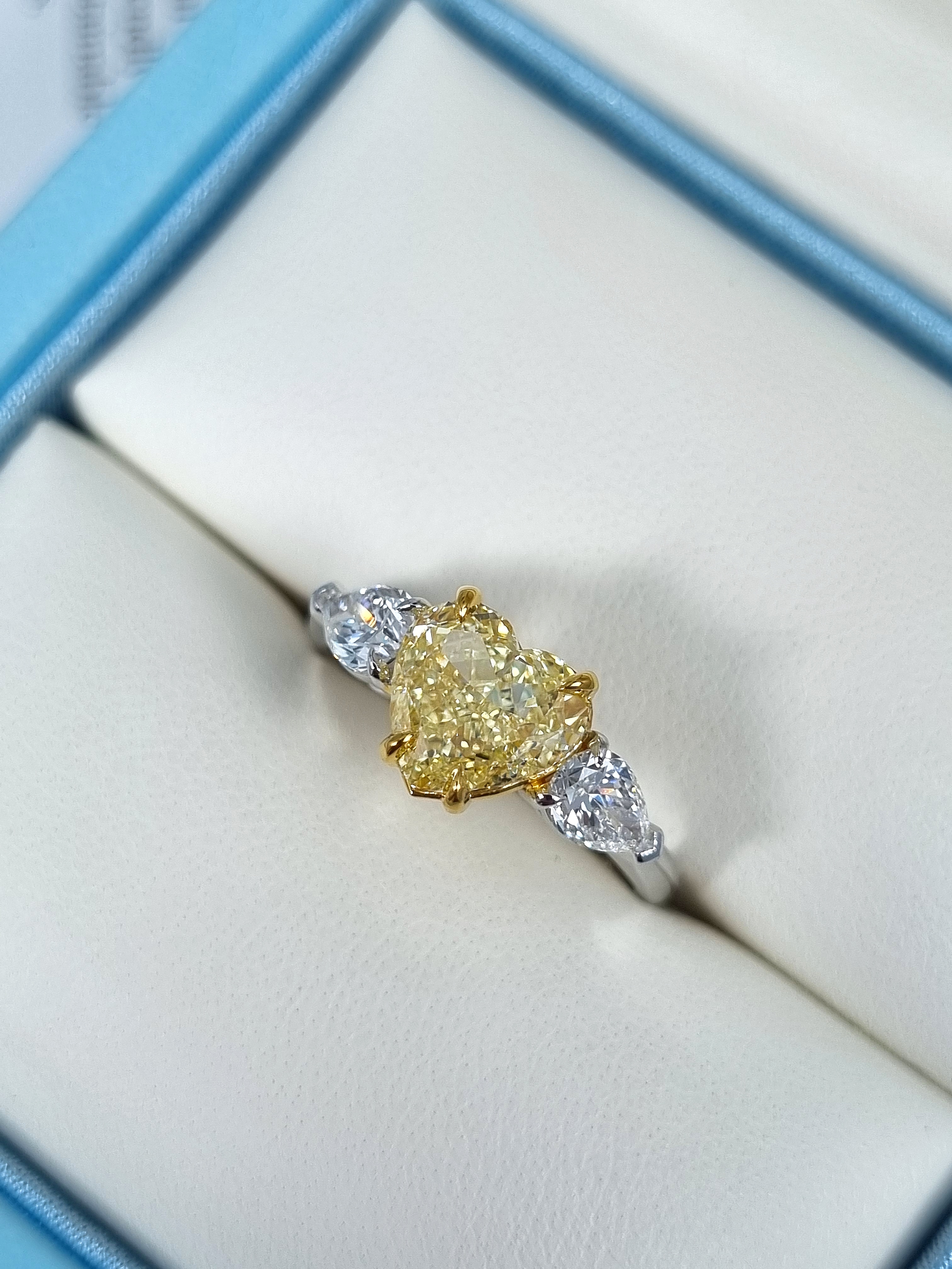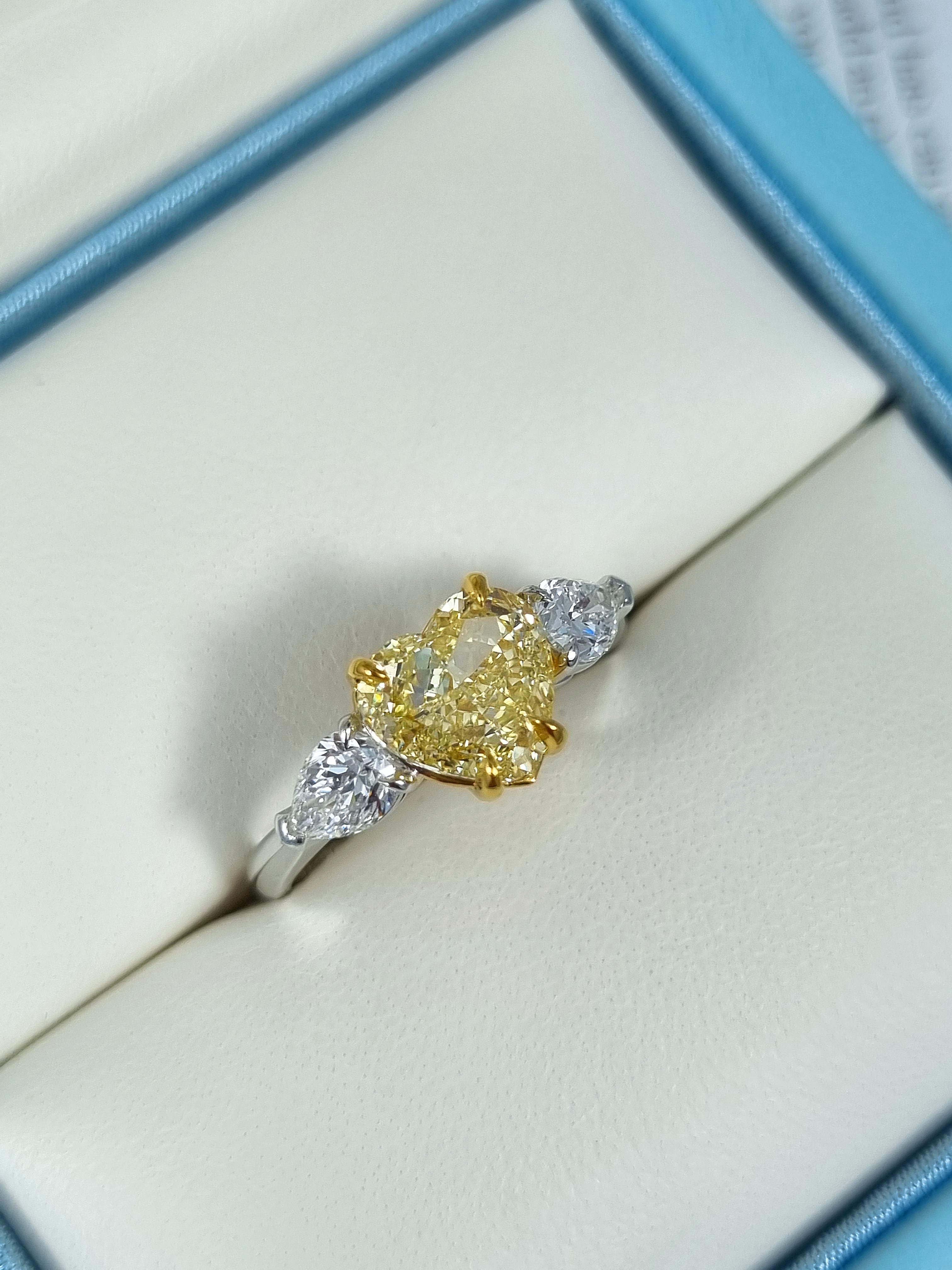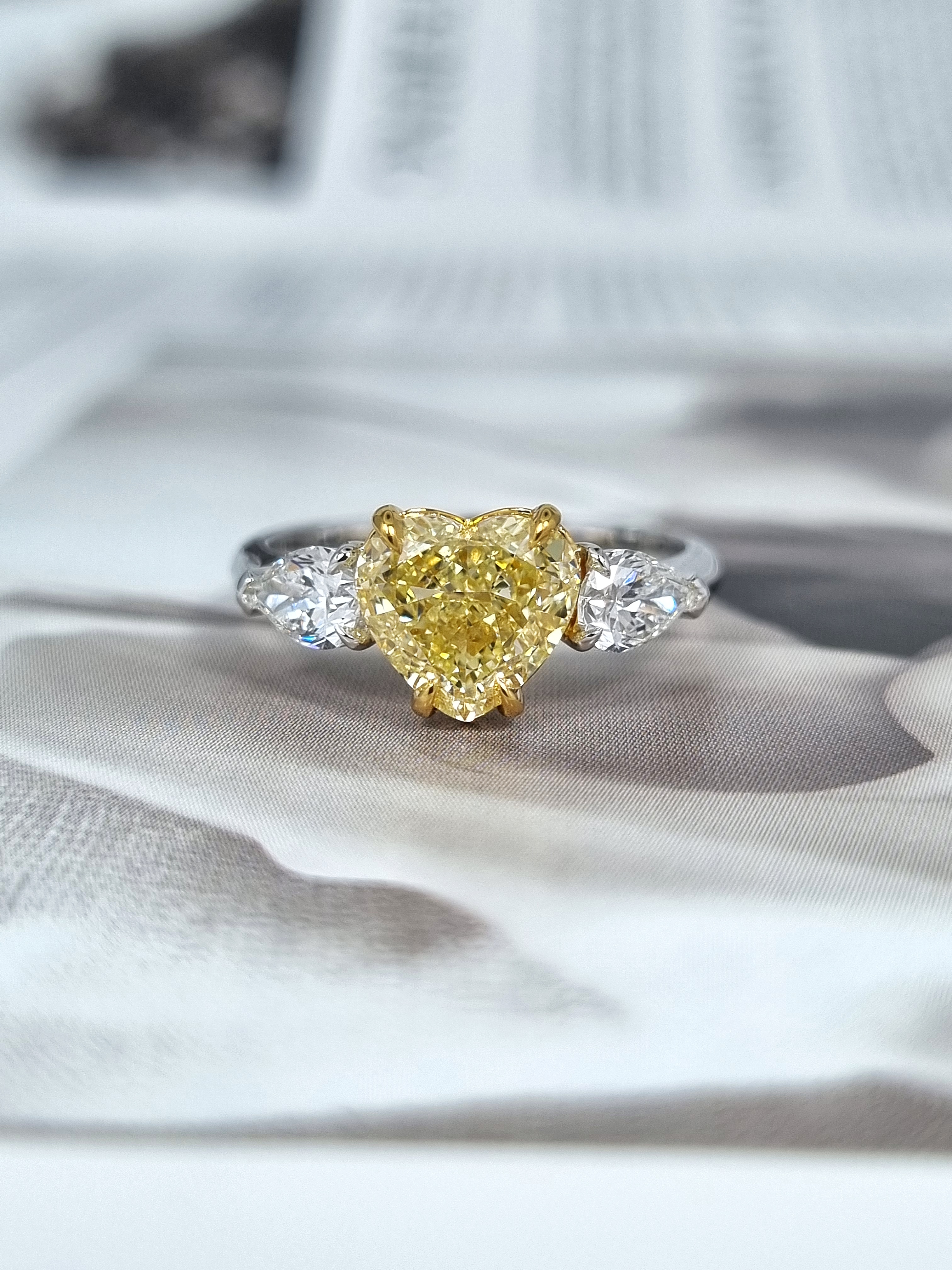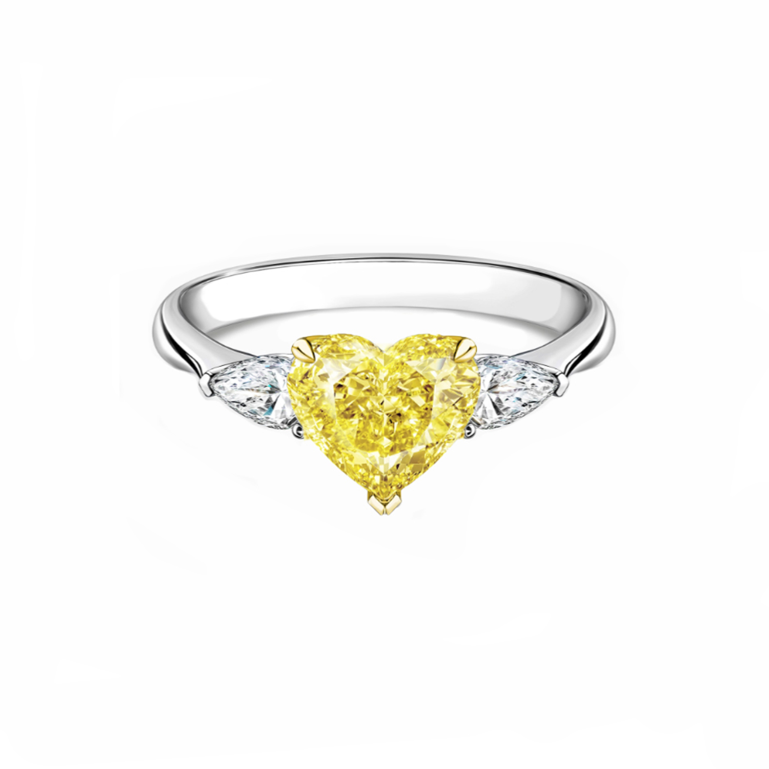 Вставка Центральный бриллиант 2,01 ct. Fancy Yellow/VS2; с боковых бриллианта общей массой 0,61 ct. E/VVS1