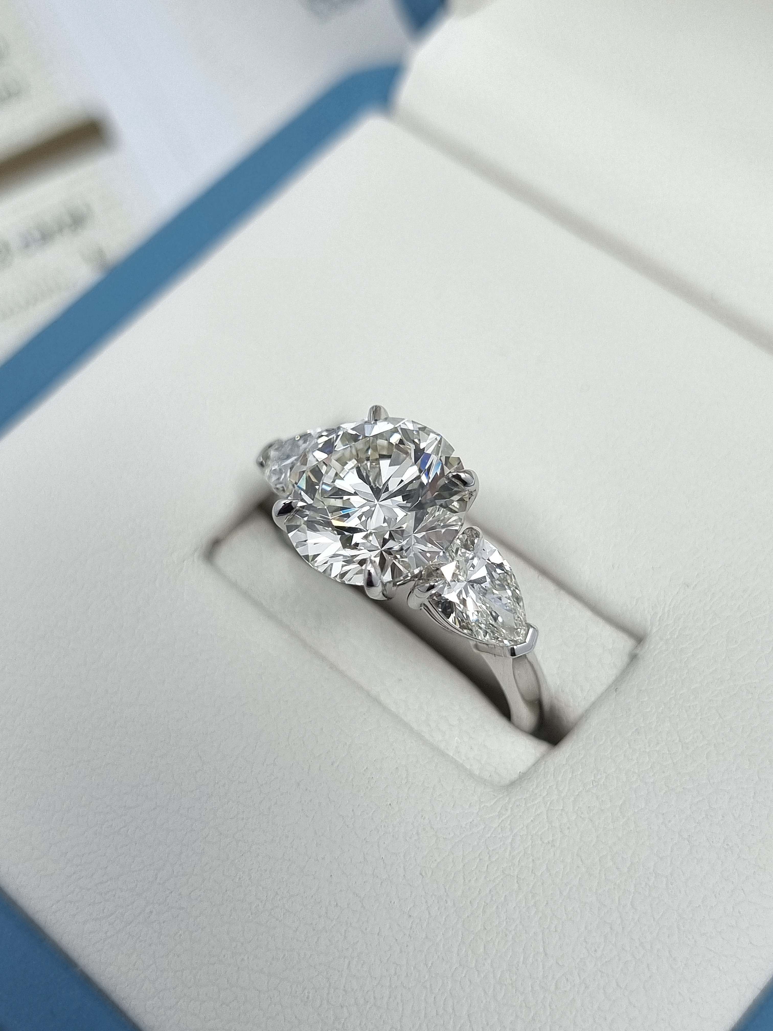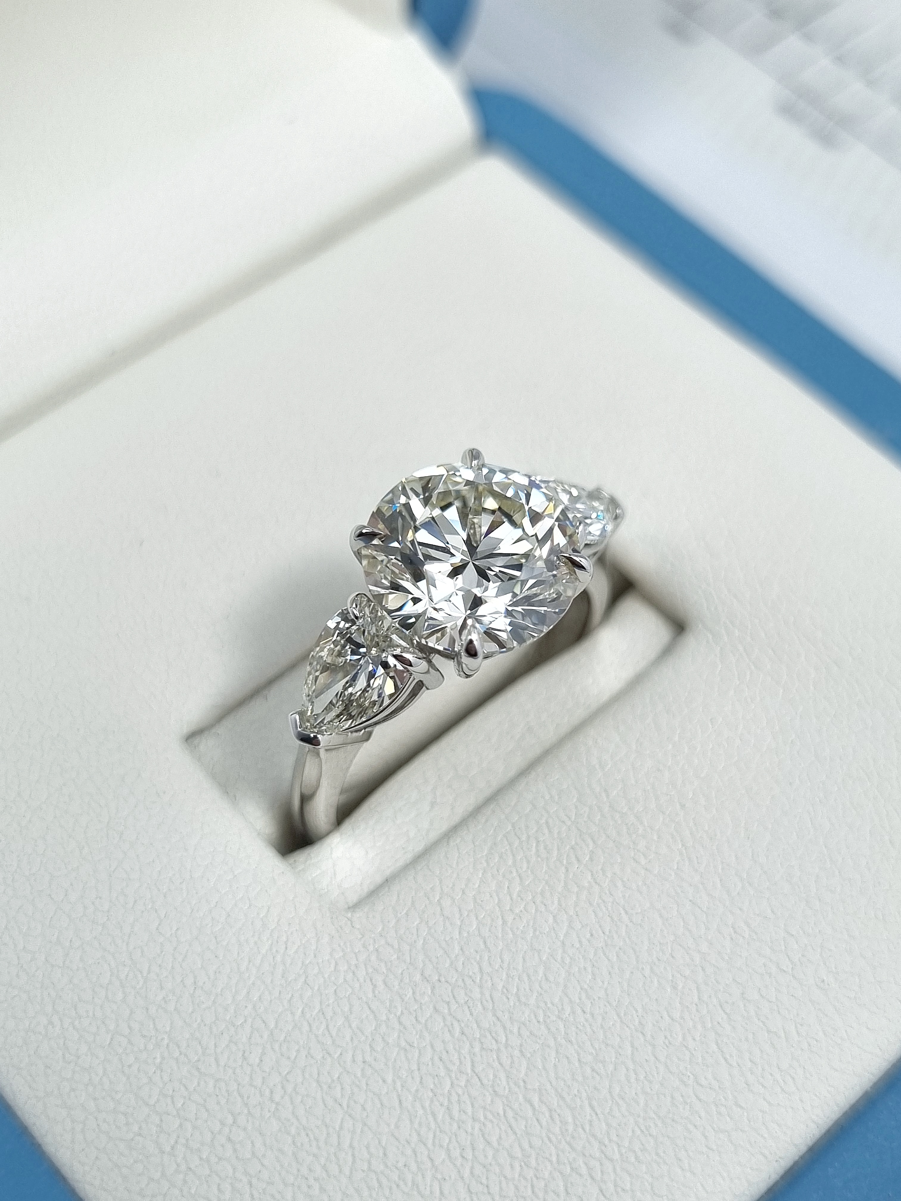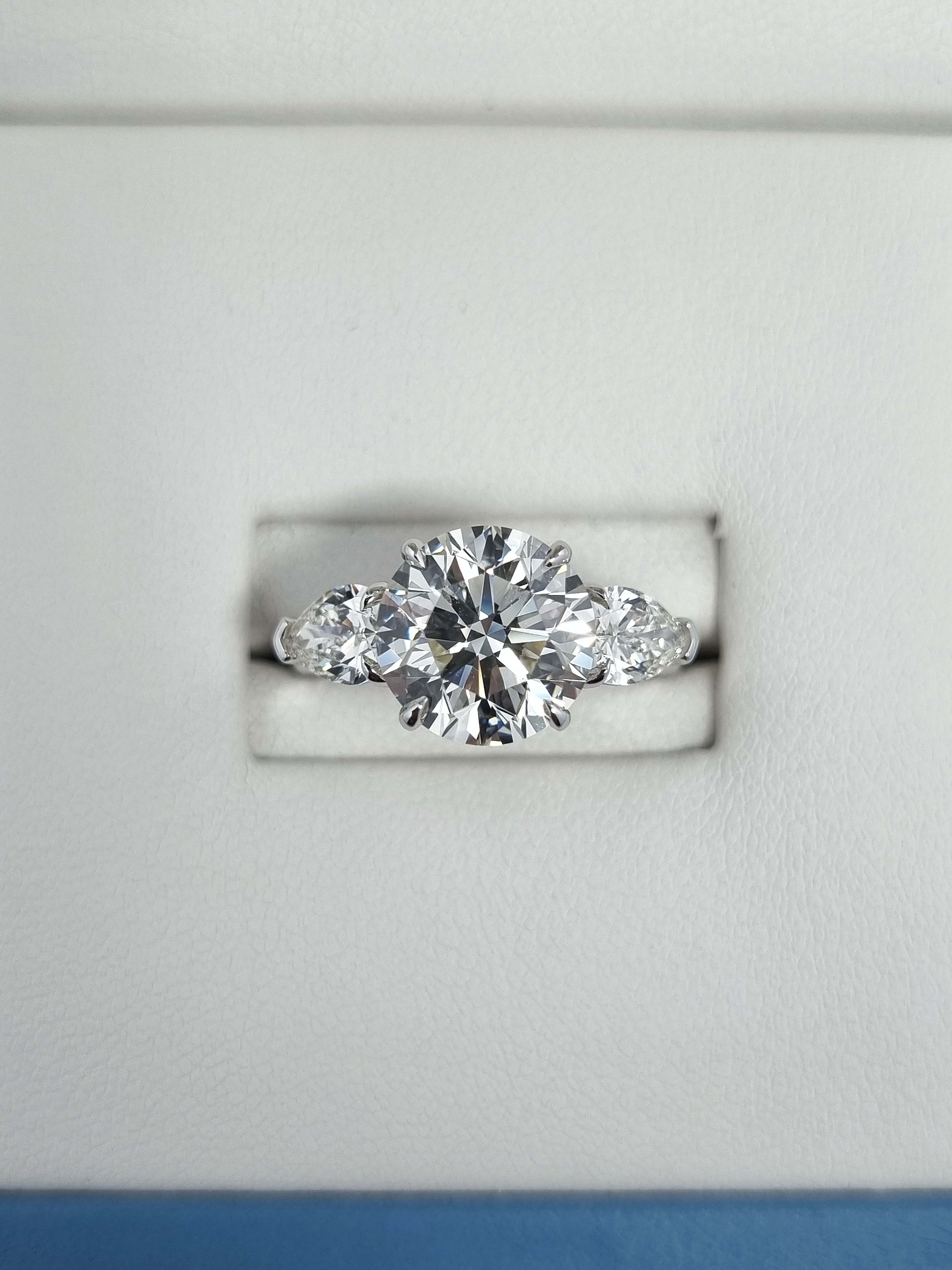 Вставка Центральный бриллиант 3,33 сt. L/VVS2 (3 excellent) "Lucky Number"; 2 боковых бриллианта общей массой 1,00 ct. K/VVS