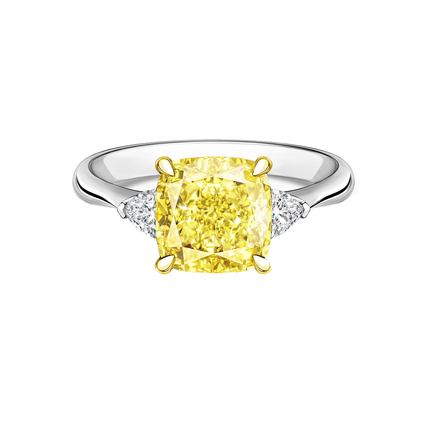 Вставка Центральный бриллиант 5,00 ct. Fancy Yellow/VS2; 2 боковых бриллианта огранки "Сердце" общей массой 1,00 ct. F/VS1