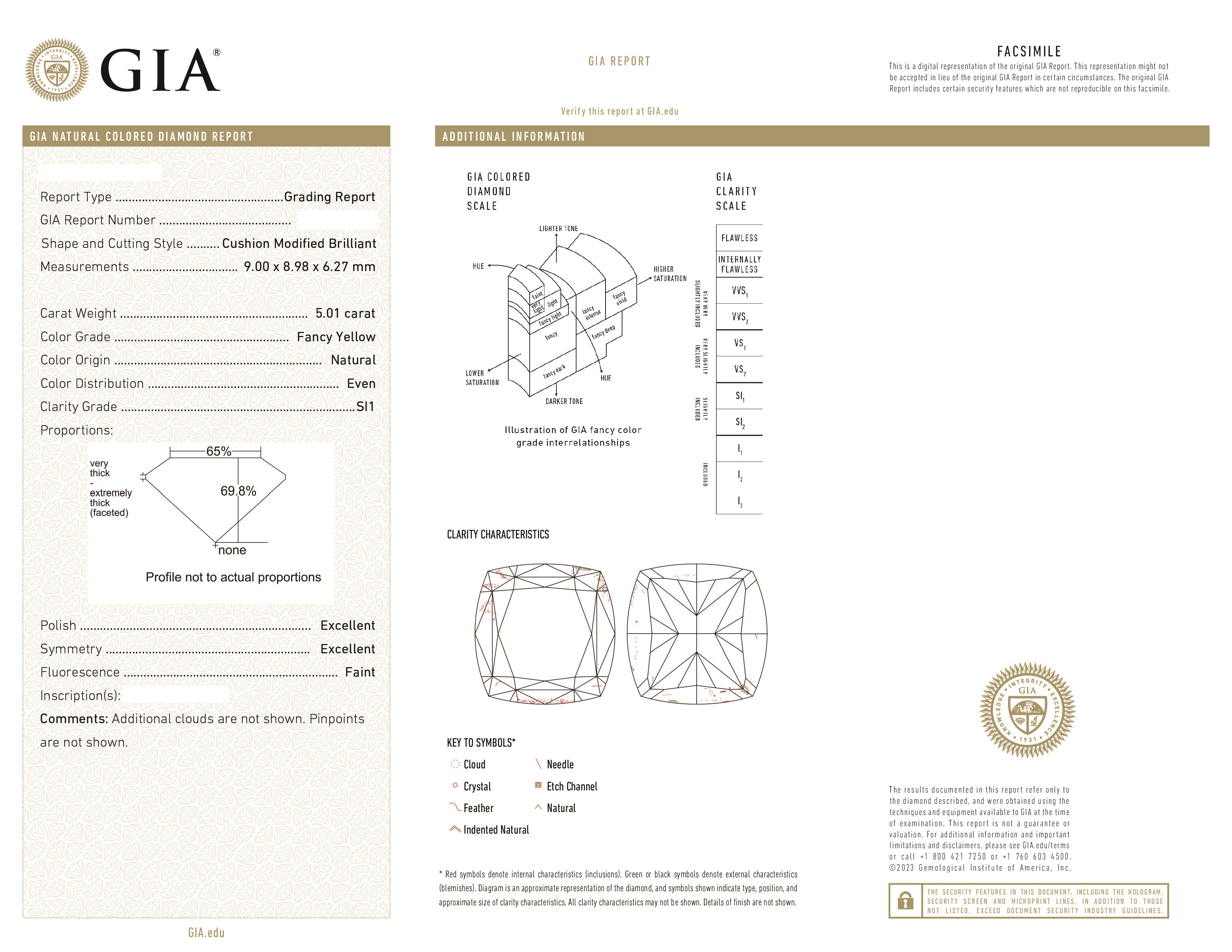 GIA Кольцо с бриллиантом 5,01 Ct. Fancy Yellow/si1