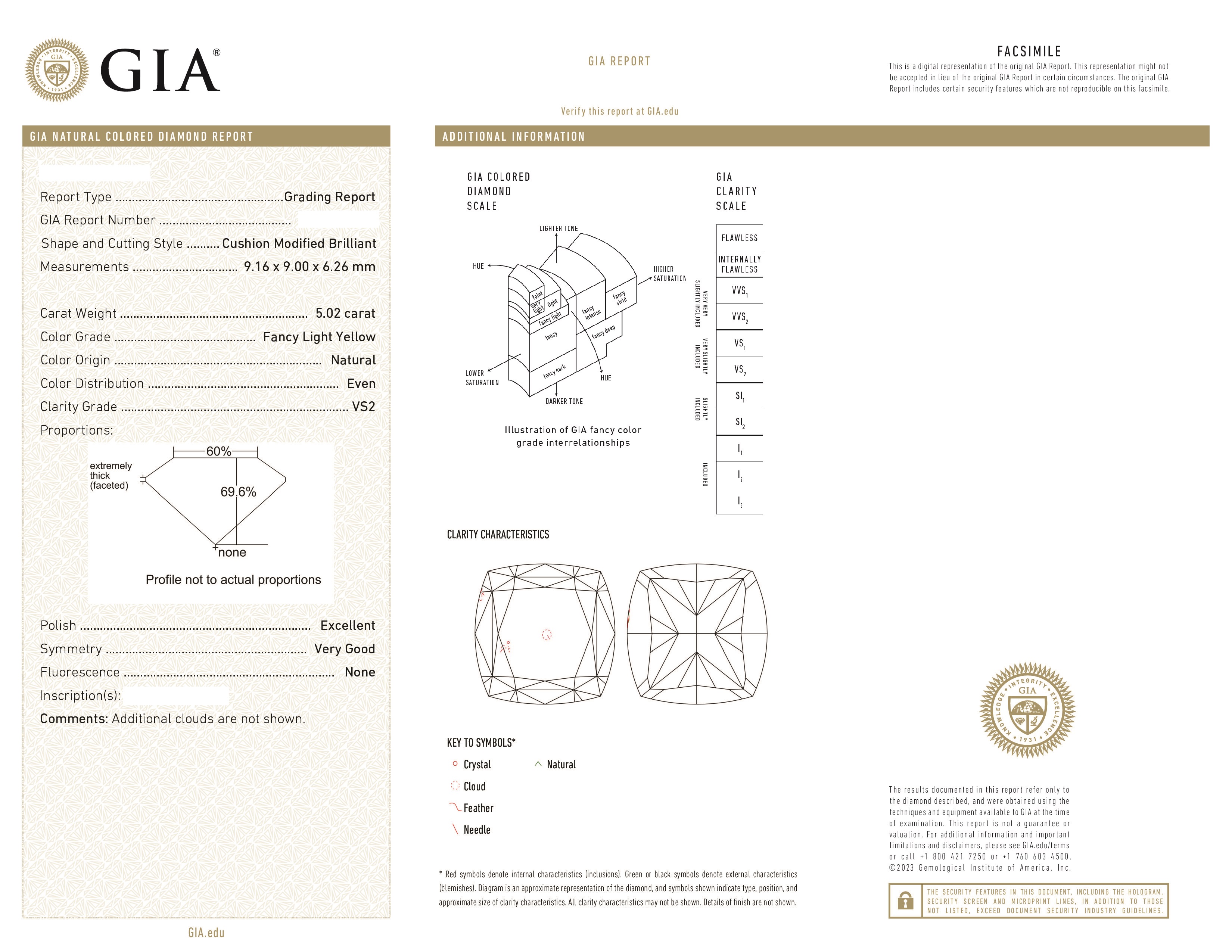 Вставка Центральный бриллиант 5,02 ct. Fancy Light Yellow/VS2; боковые бриллианты общим весом 1,04 ct. F/VS2