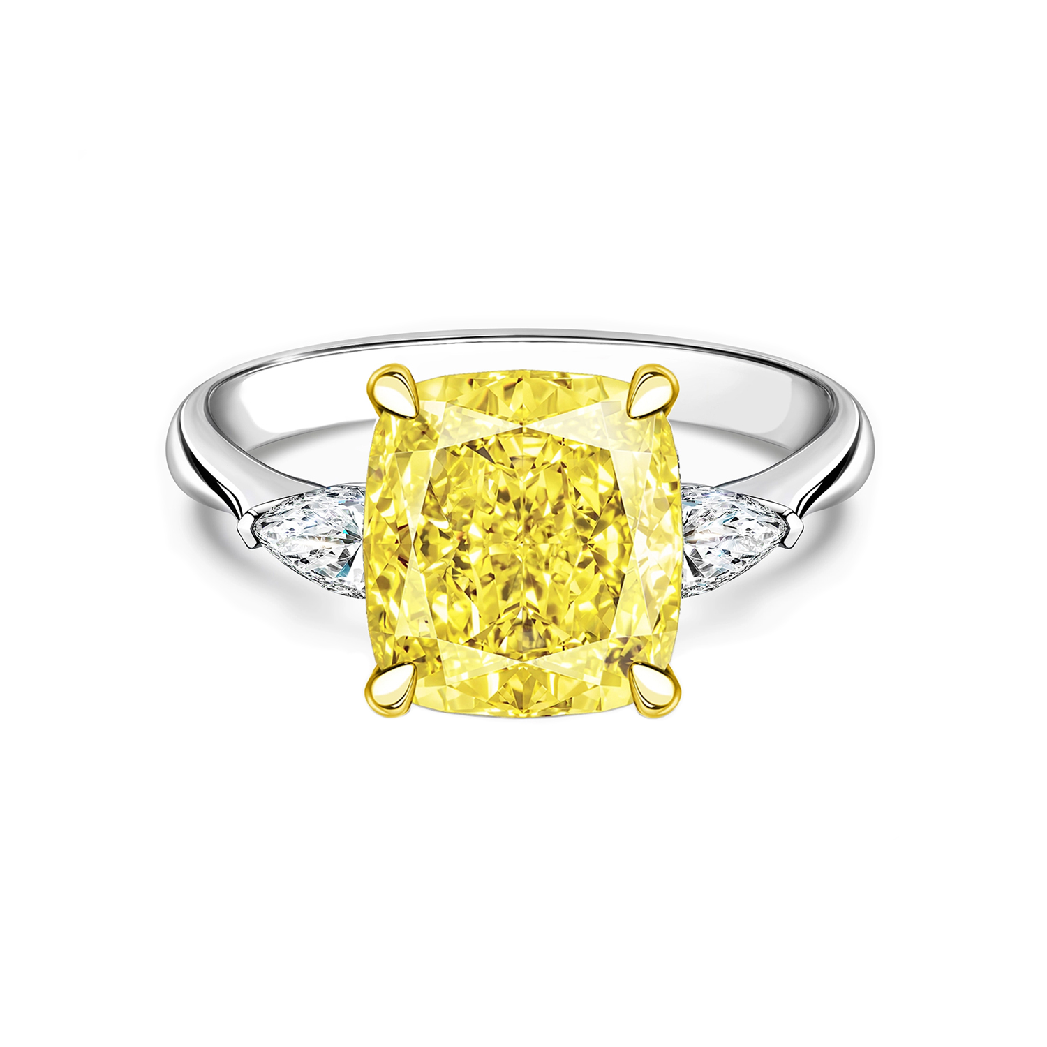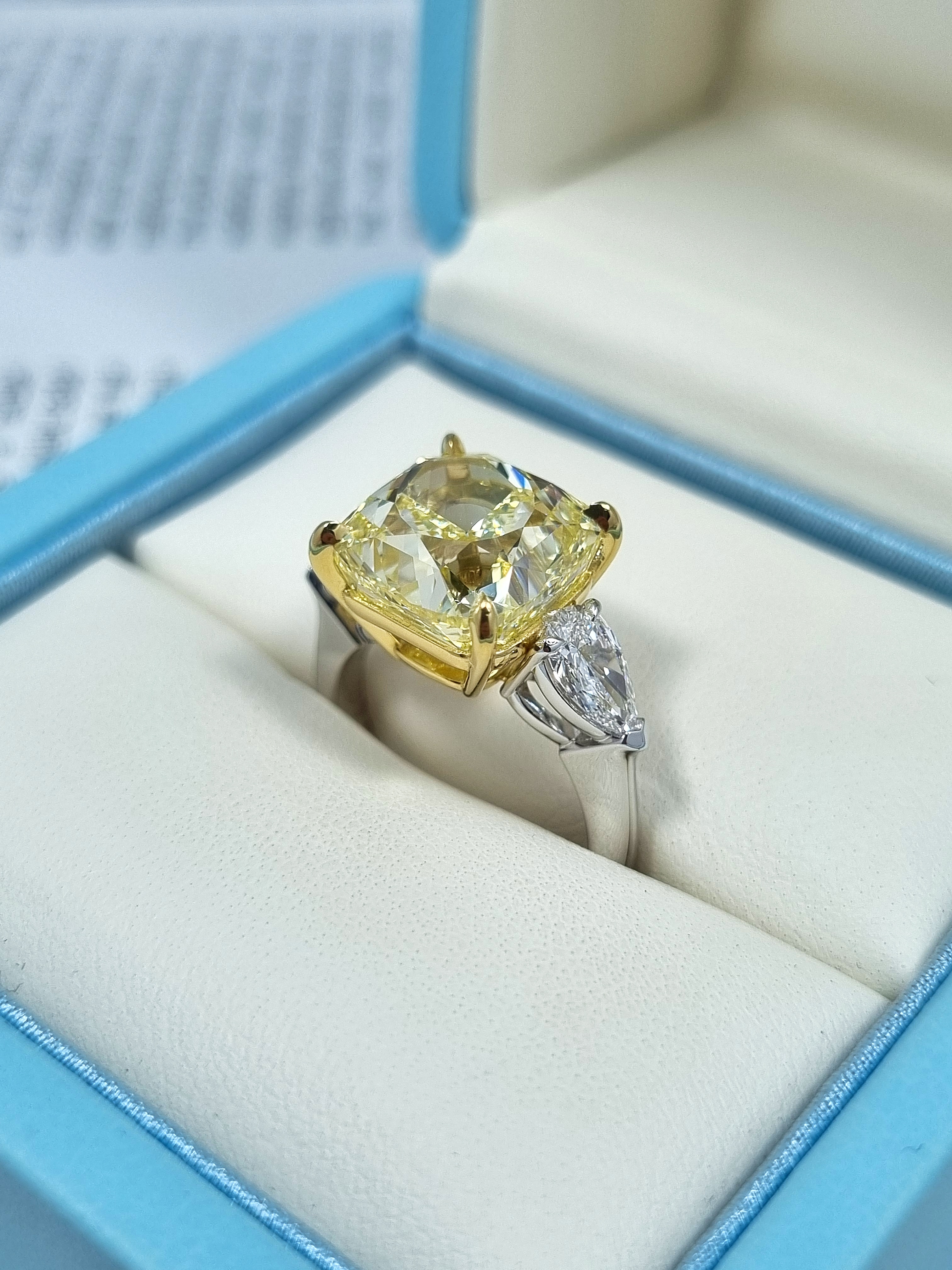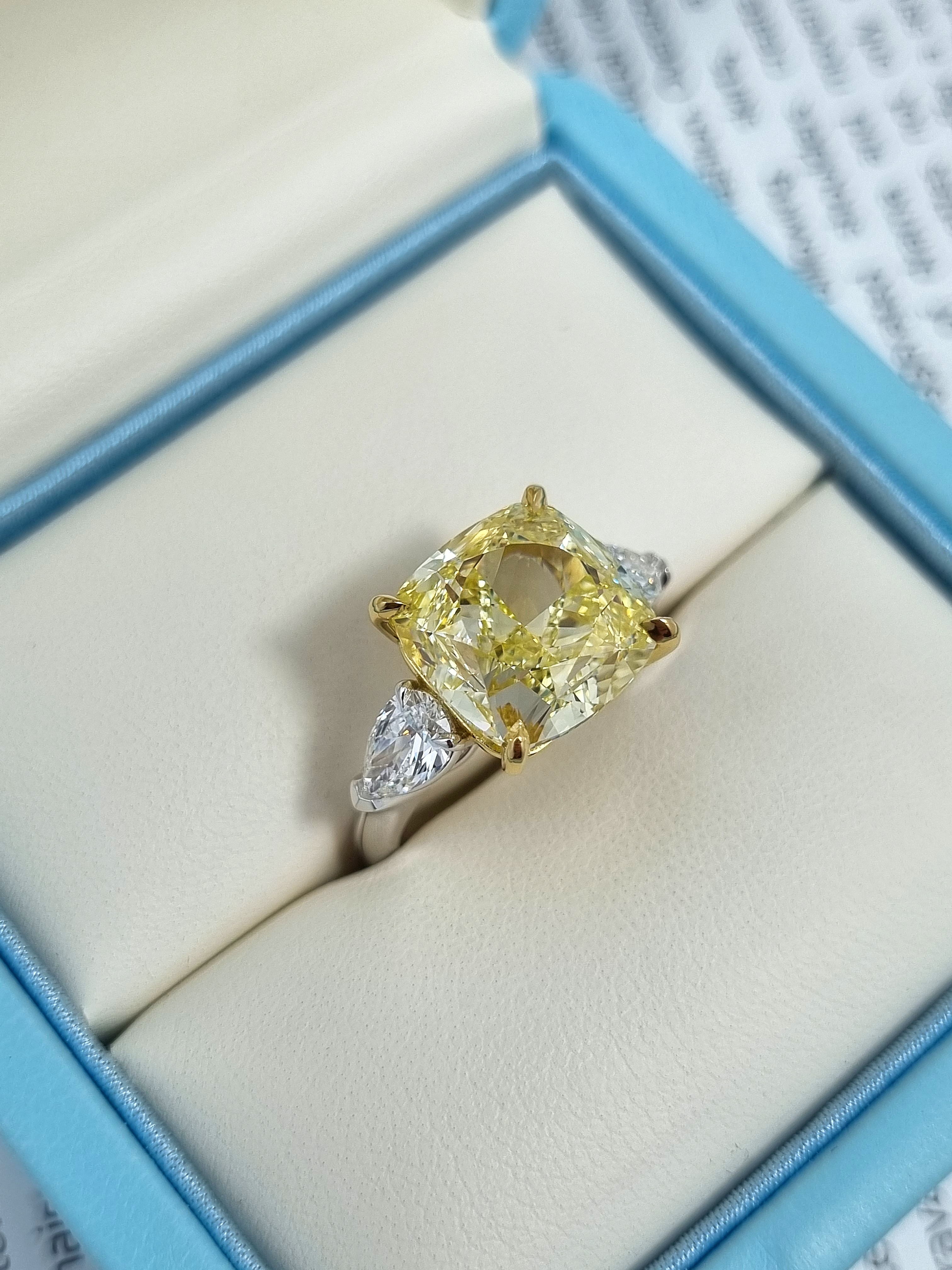 Вставка Центральный бриллиант 8,88 сt. Fancy Yellow/VS1 (Lucky Number); 2 боковых бриллианта общей массой 0,87 ct. D/Internally Flawless