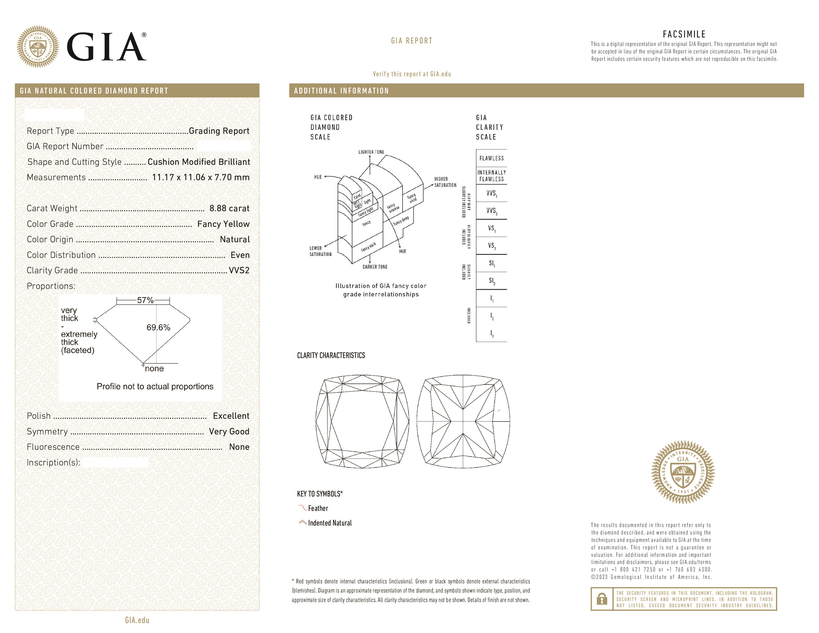 GIA Кольцо с бриллиантом 8,88 Ct. Fancy Yellow/vvs2 "lucky Number"