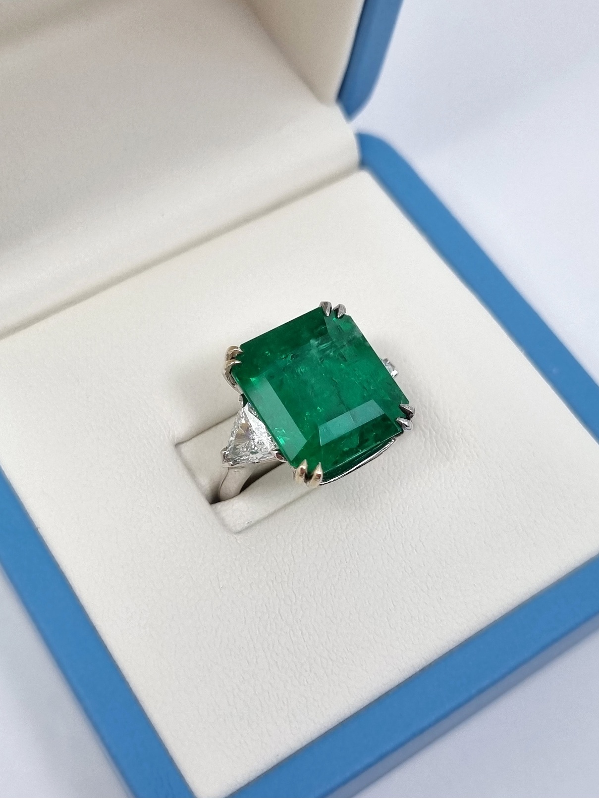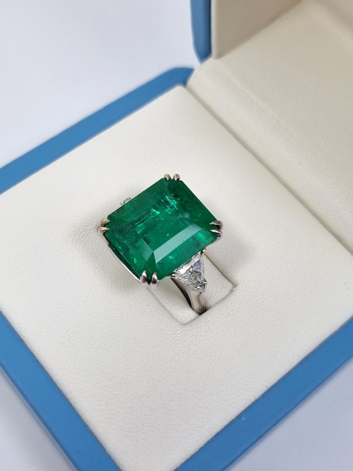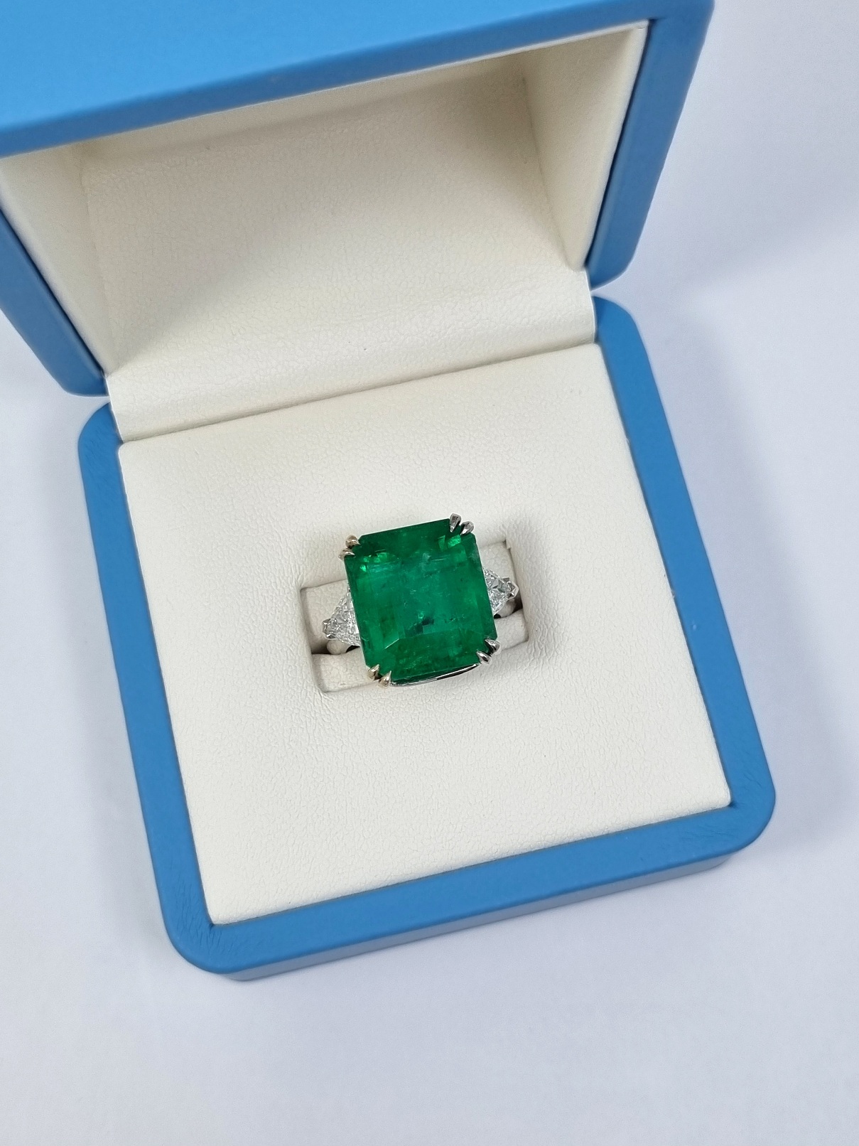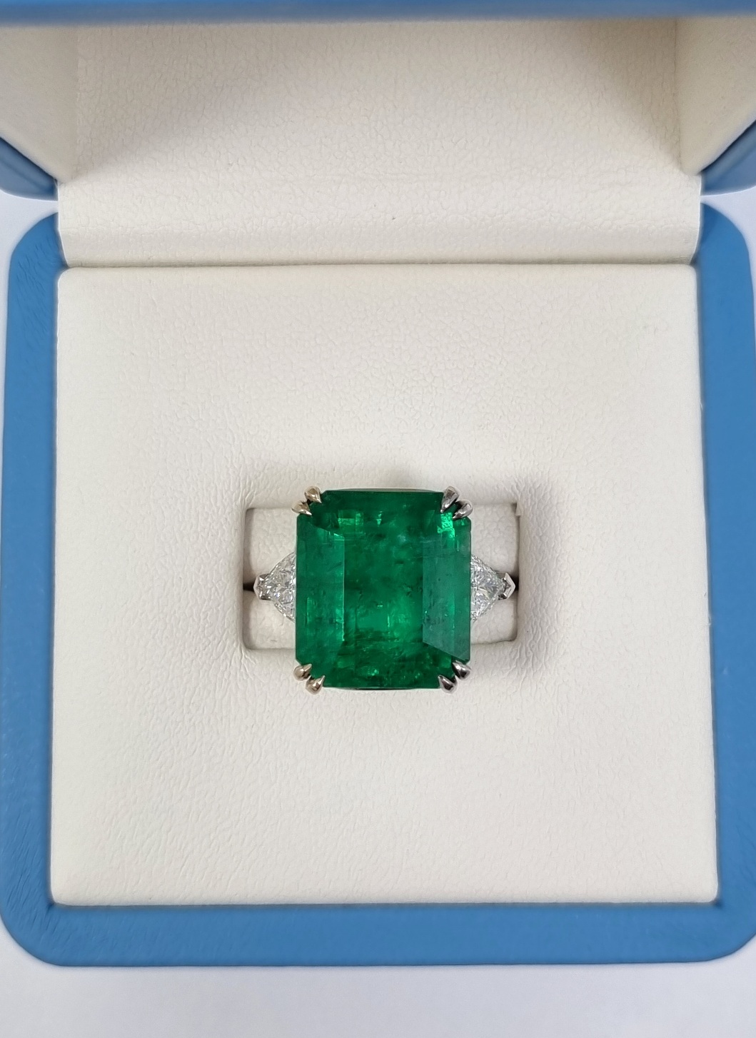 Вставка Изумруд 13,82 ct. Vivid Green (Ural), 2 бриллианта общей массой 1,13 сt., F-H/VVS2-VS2