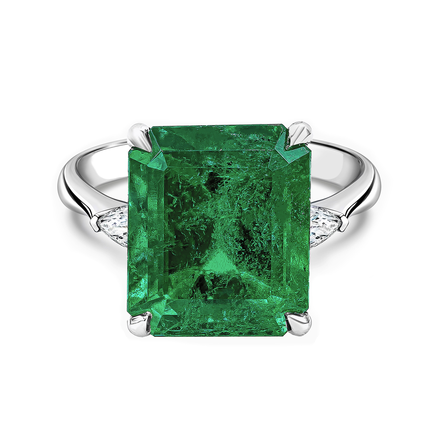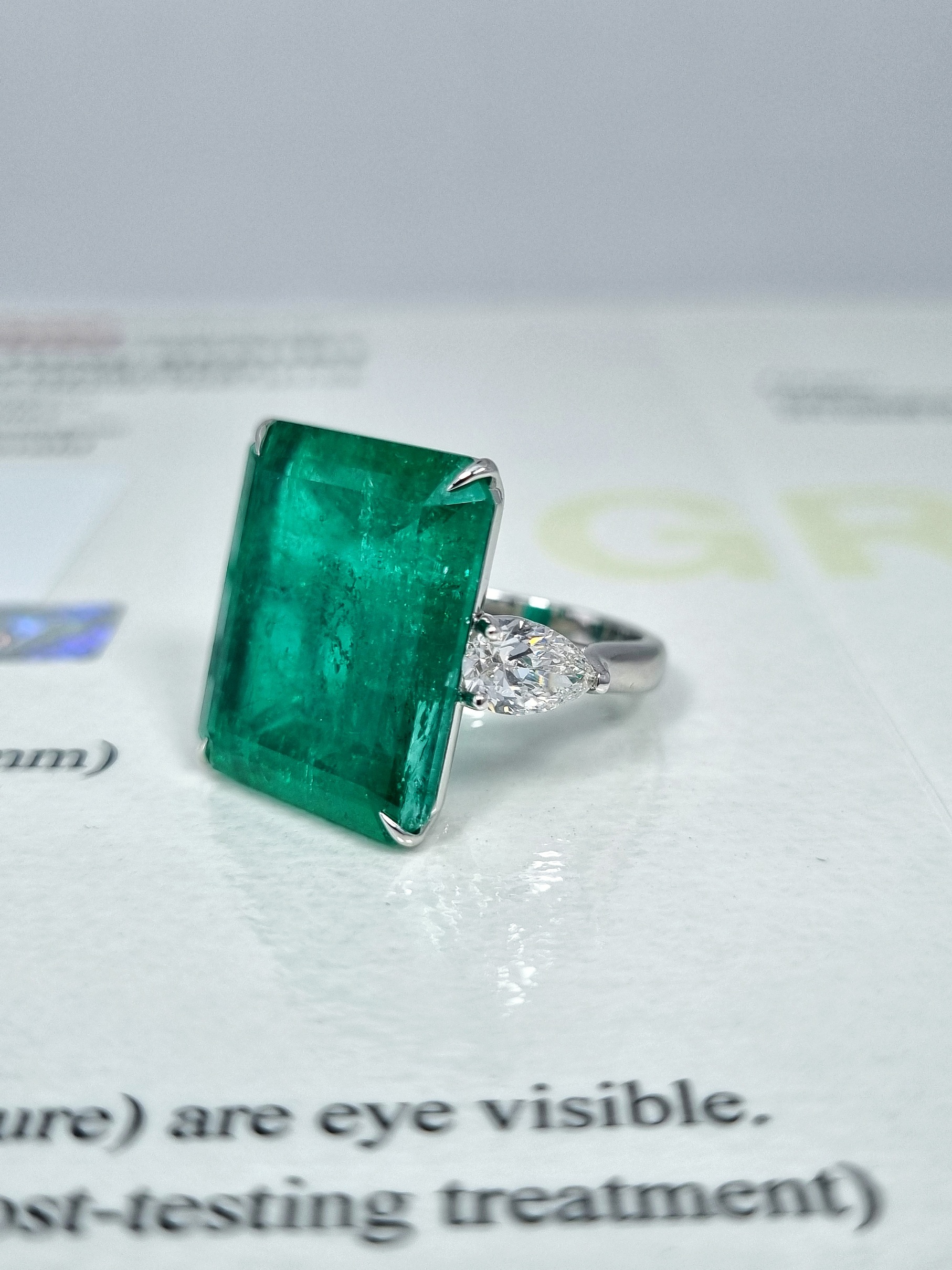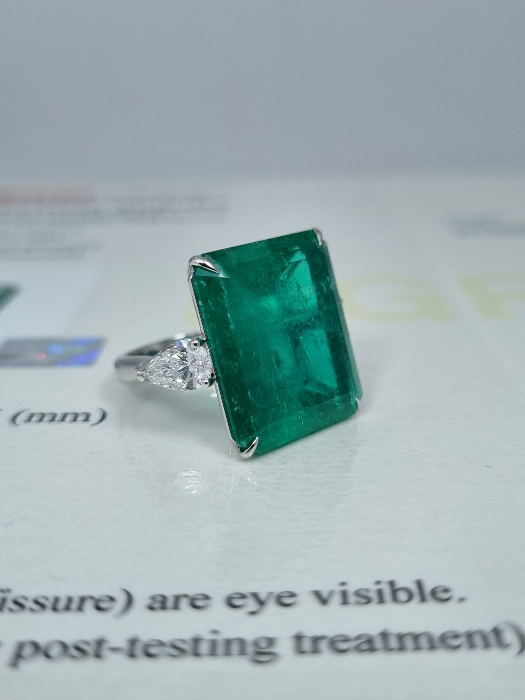 Вставка Изумруд 18,98 ct. Green (Colombia); в боковых бриллианта огранки "Груша" общей массой 1,4 ct. F/VS2
