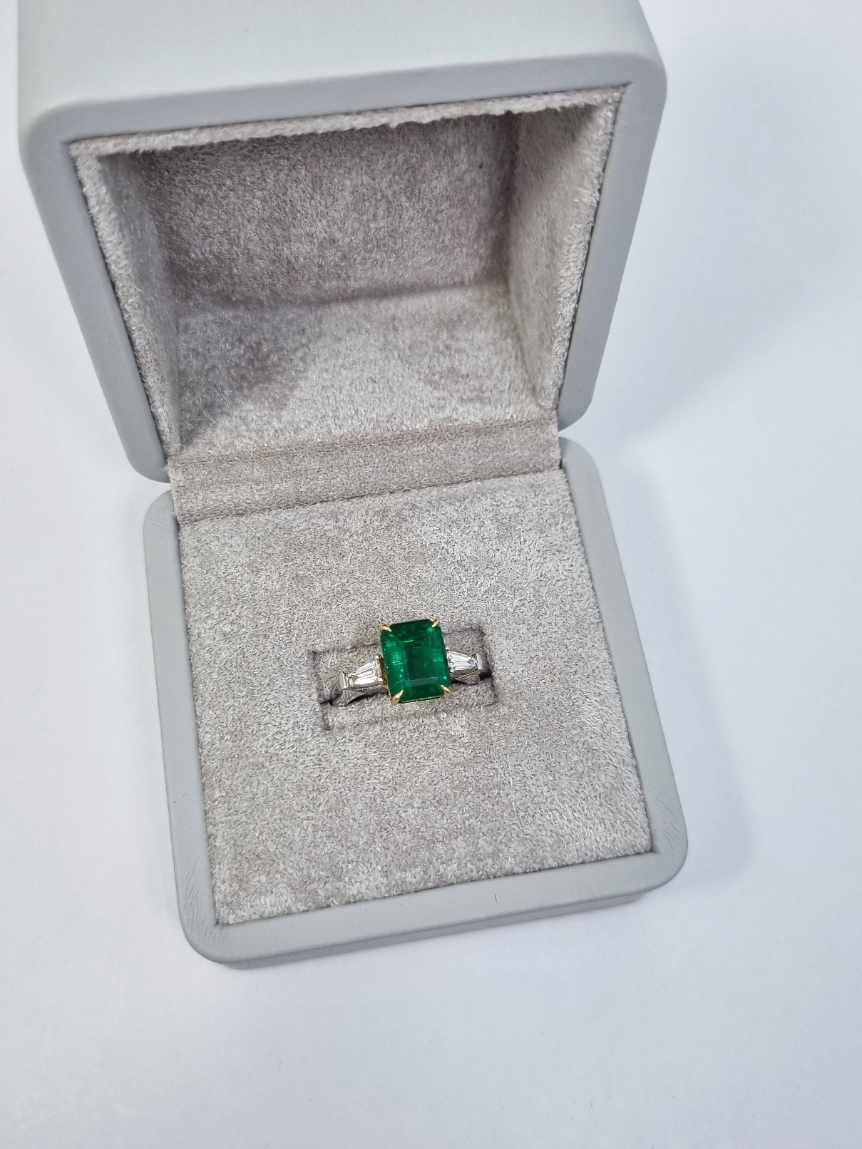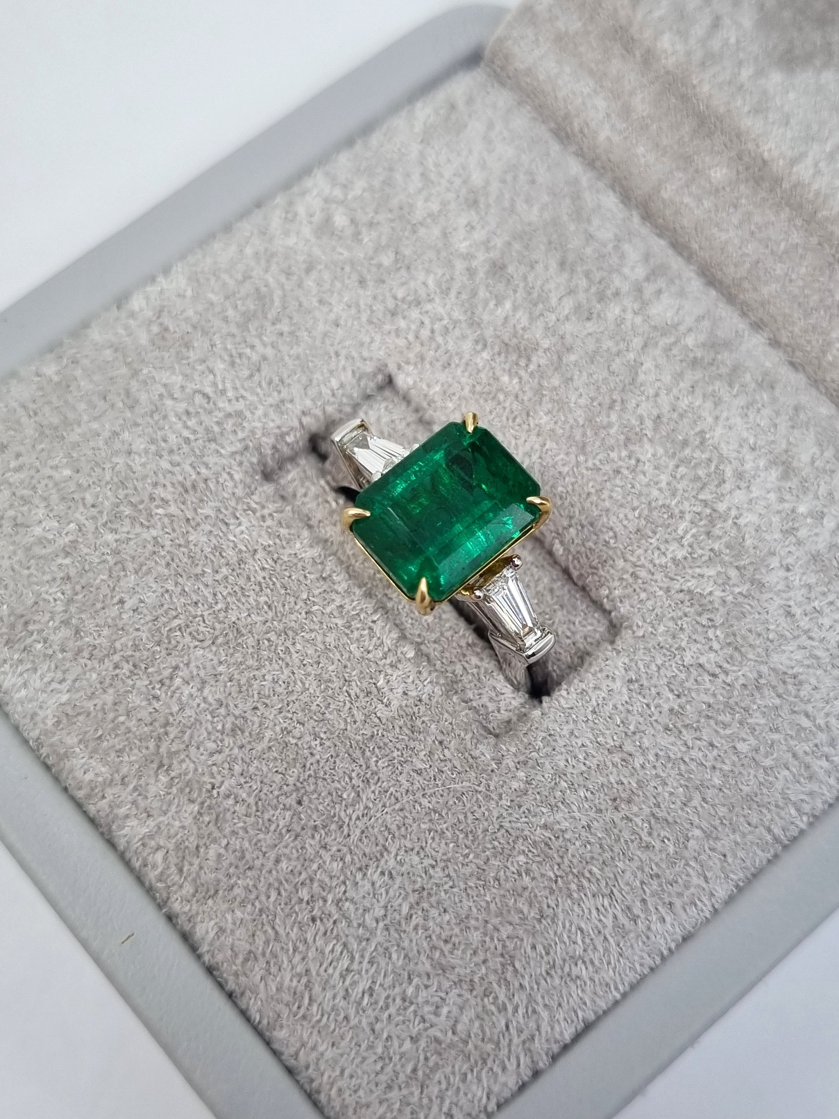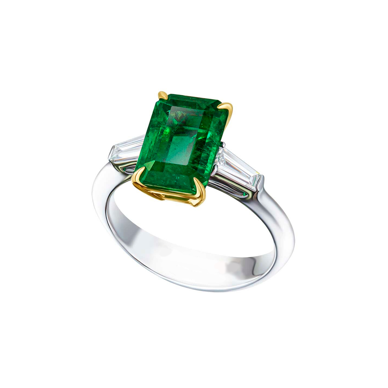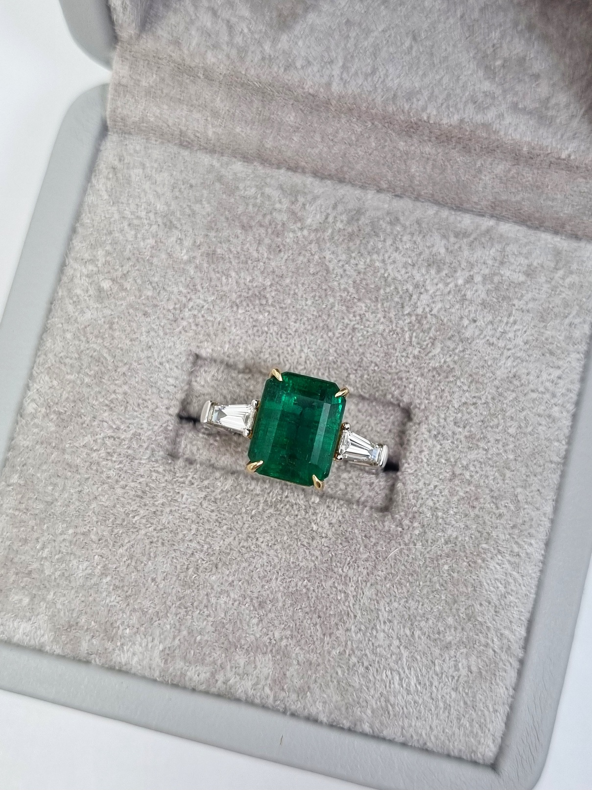 Вставка Изумруд 3,94 ct. Green (Zambia); боковые бриллианты общей массой 0,35 ct. Fine White/VS+