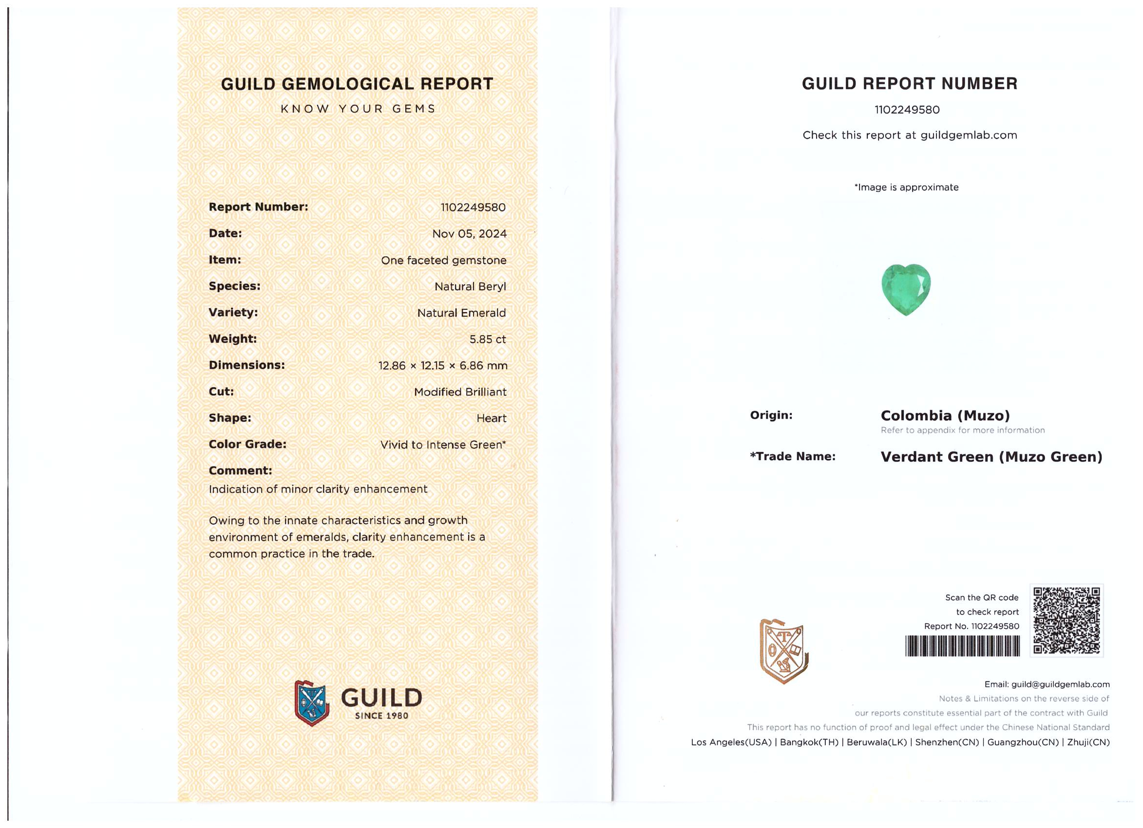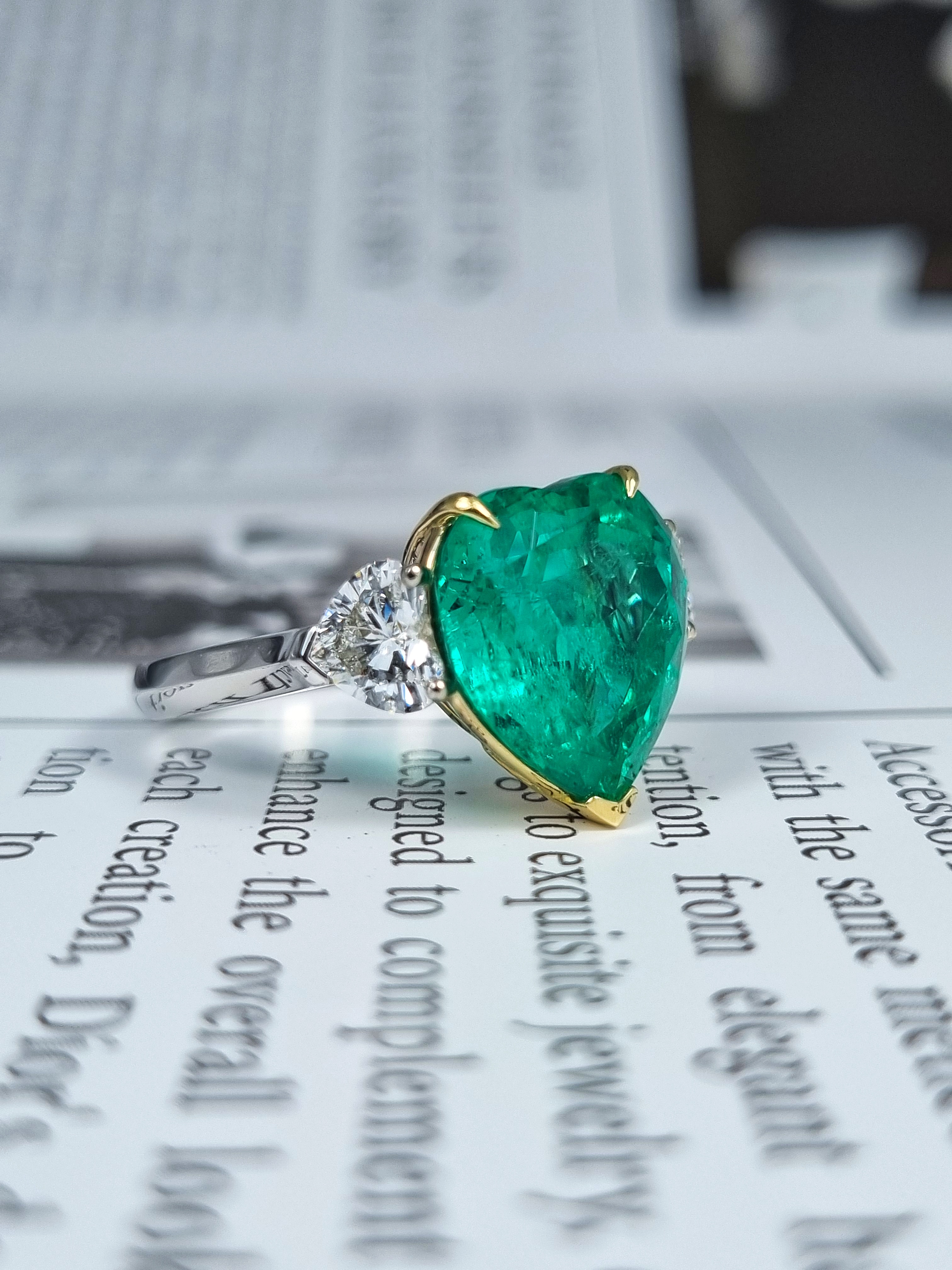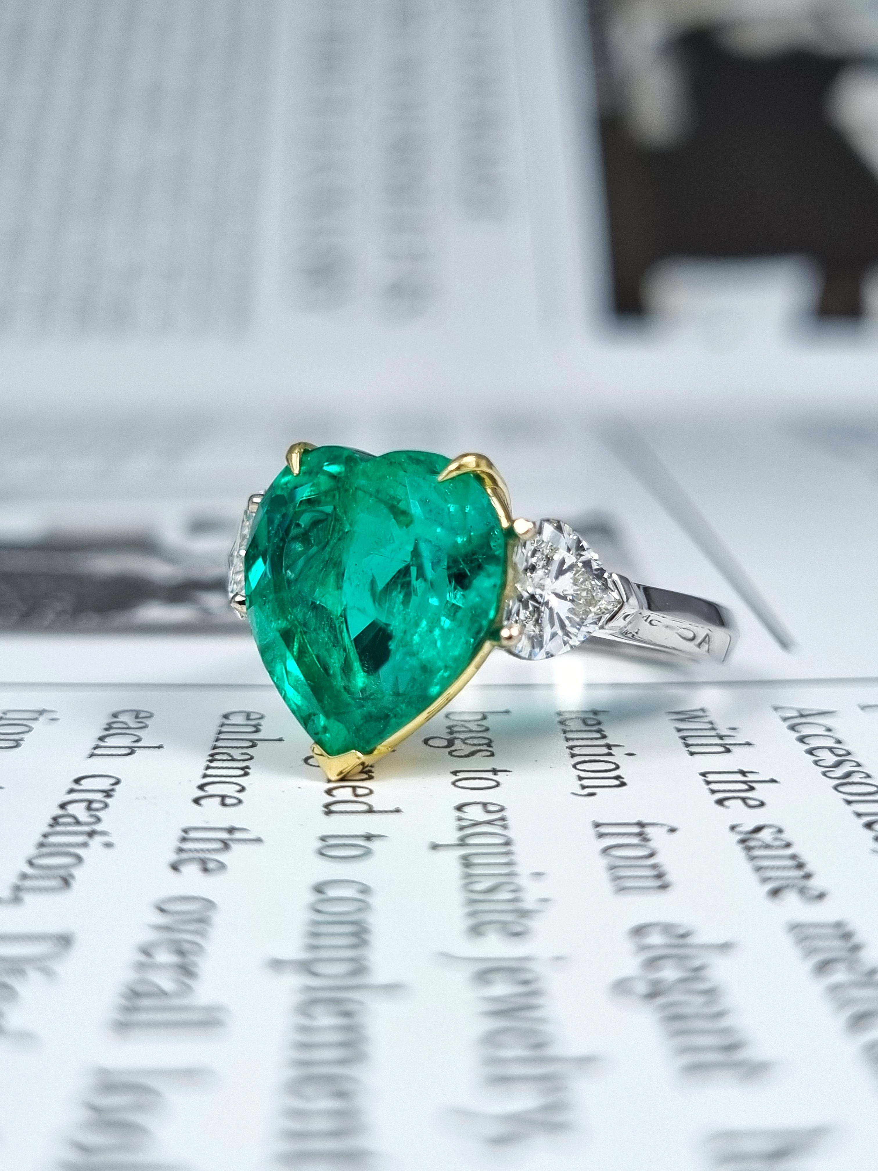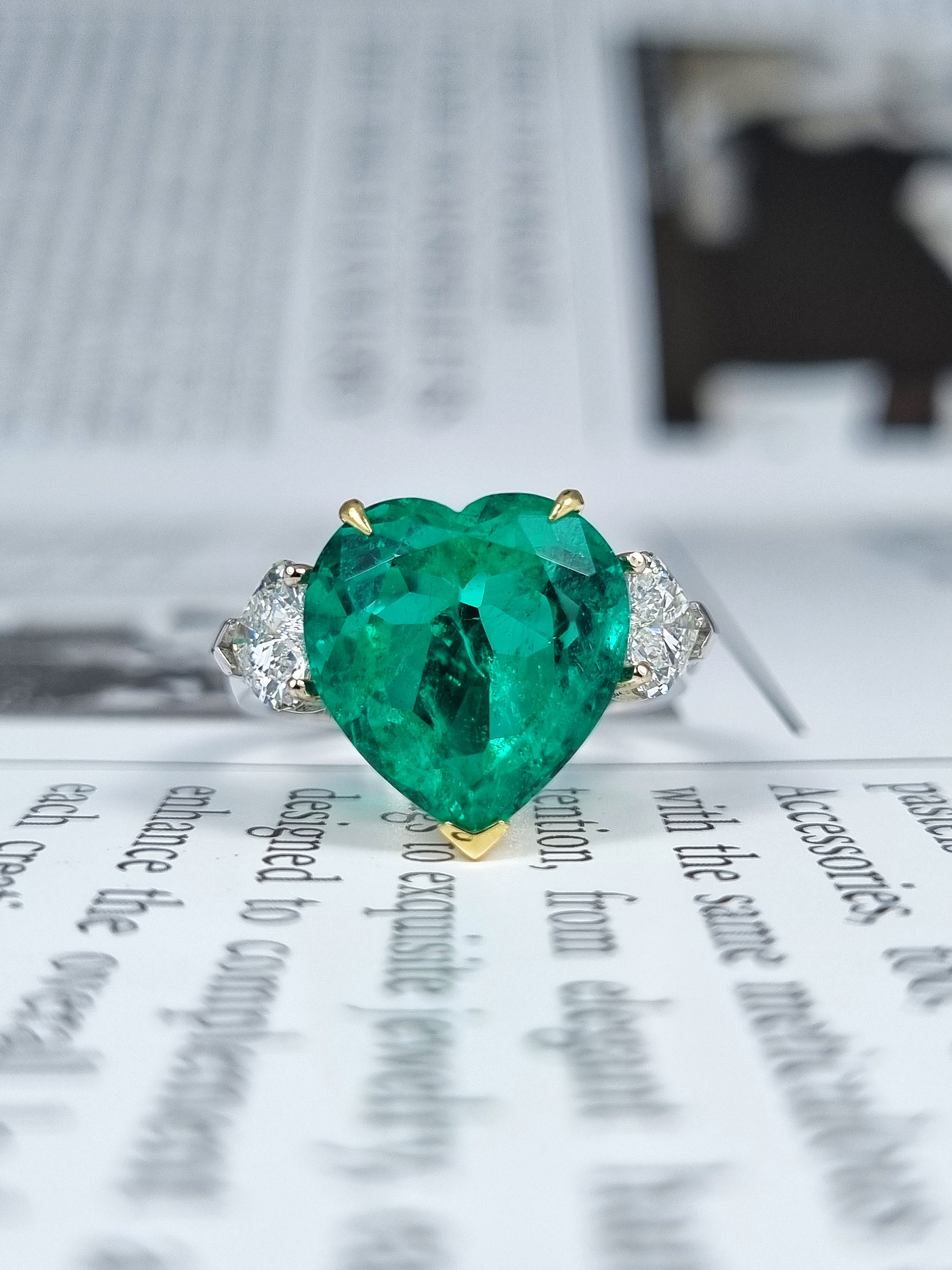Вставка Изумруд 5,84 ct. Intense to Vivid Green (Muzo Green) Colombia; 2 боковых бриллианта огранки "Сердце" общим весом 1,02 ct. F/VS1