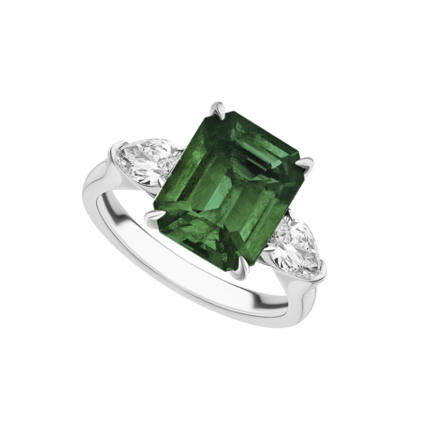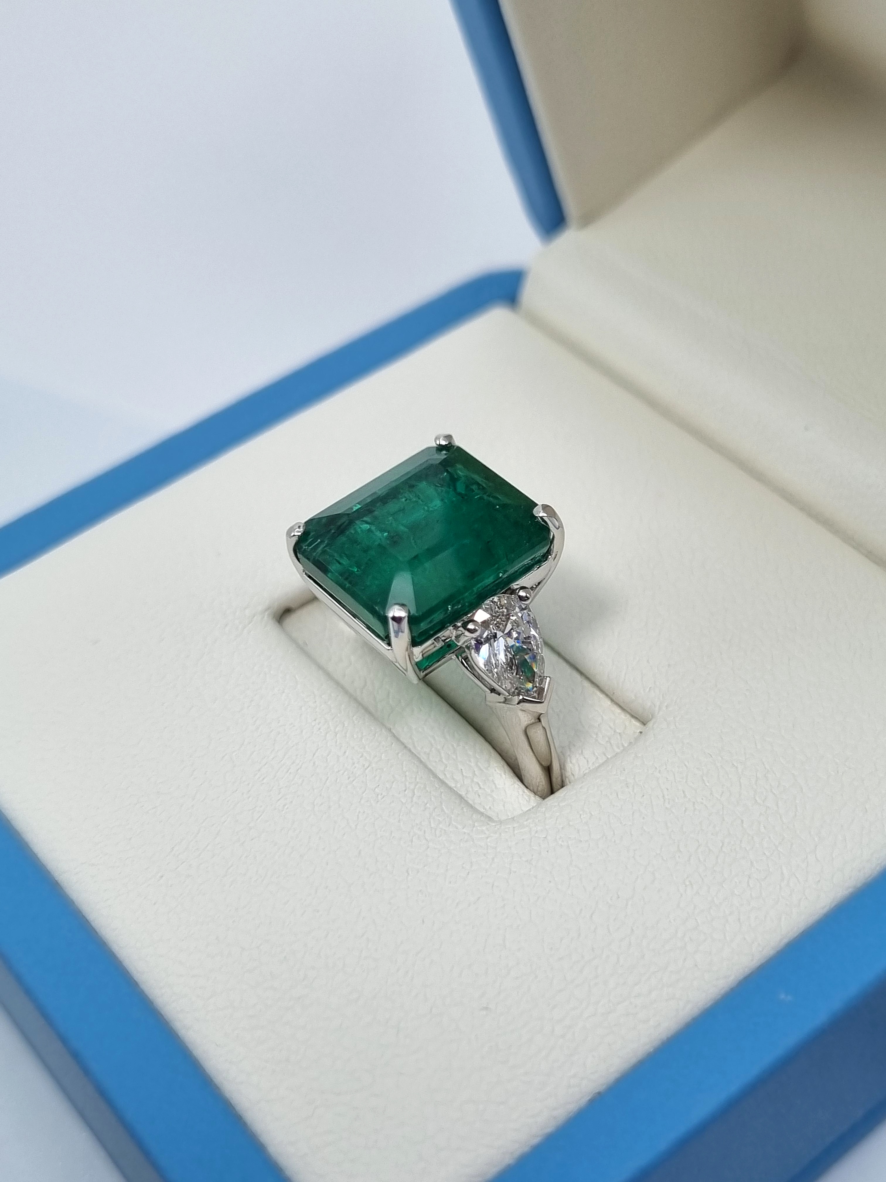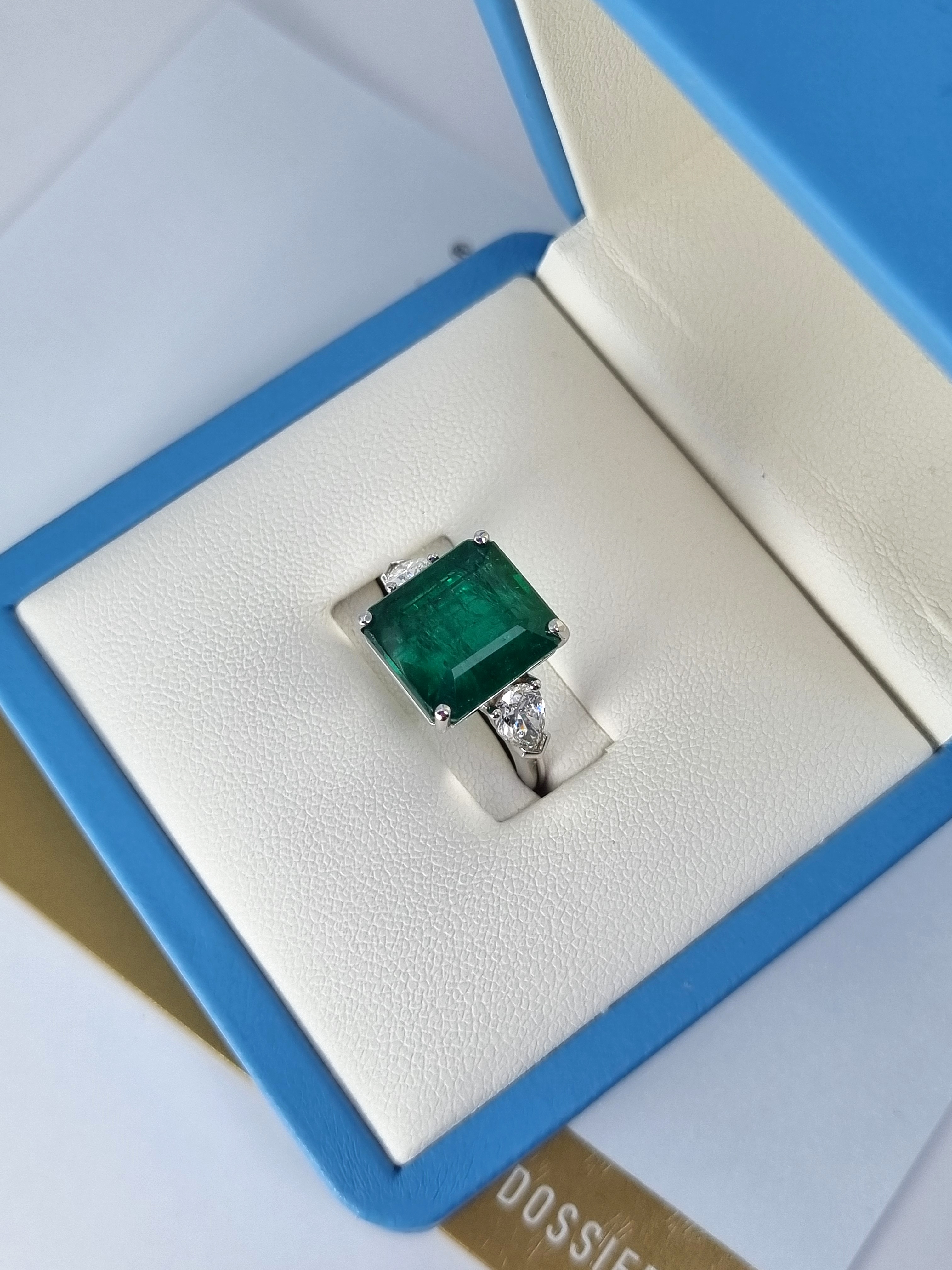 Вставка Изумруд 9,50 ct. Deep Bluish Green (Zambia); боковые бриллианты общей массой 1,01 ct. H/VS1