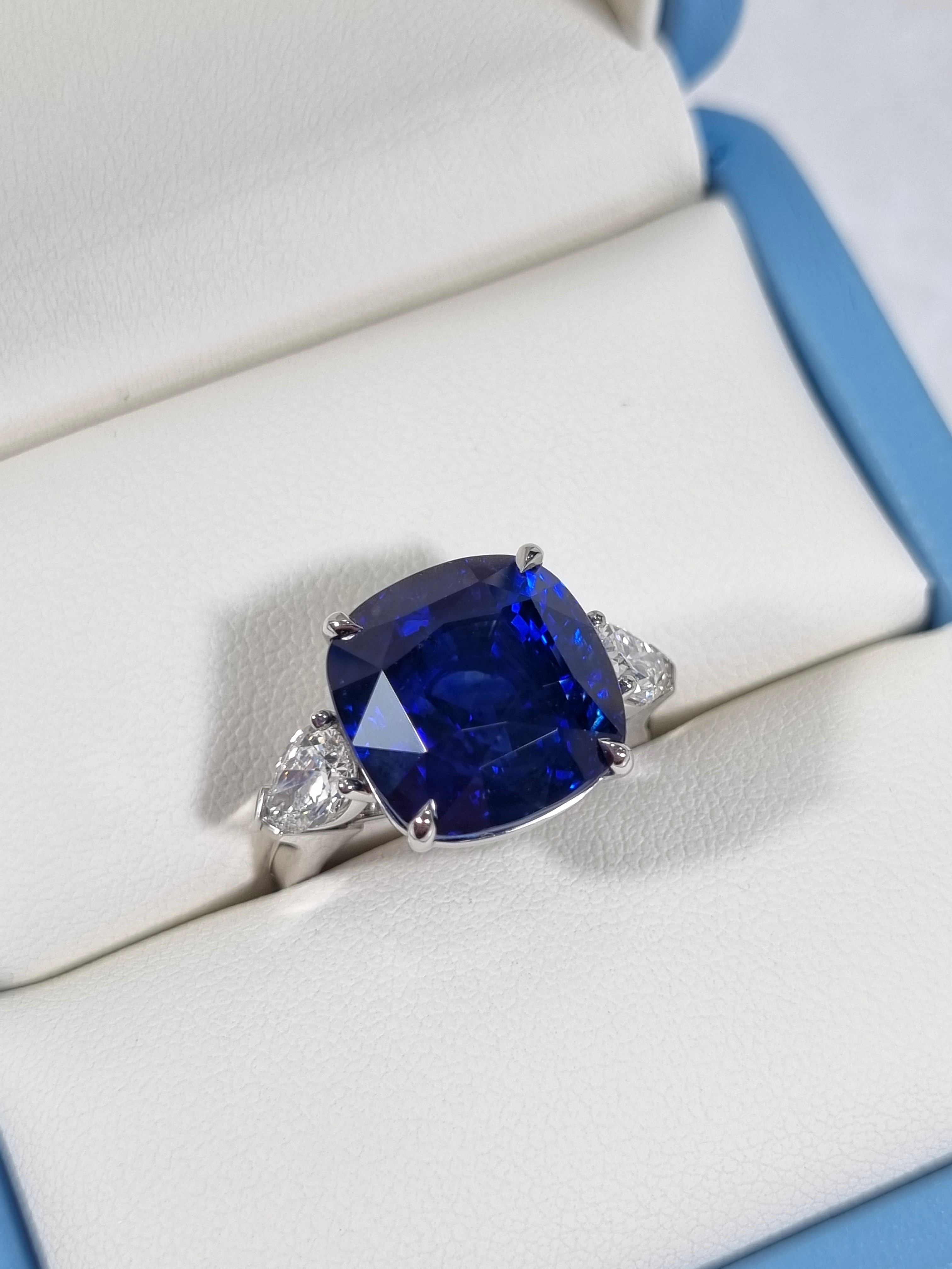 Это кольцо, размером 17, изготовлено из высококачественного белого золота 750°, что обеспечивает ему долговечность и изысканный внешний вид. Главной "изюминкой" этого изделия является сапфир "Royal Blue" весом 15,94 карата, который был добыт в Шри-Ланке и обладает неповторимым оттенком. Этот камень не только поражает своей красотой, но и является символом роскоши и элегантности.