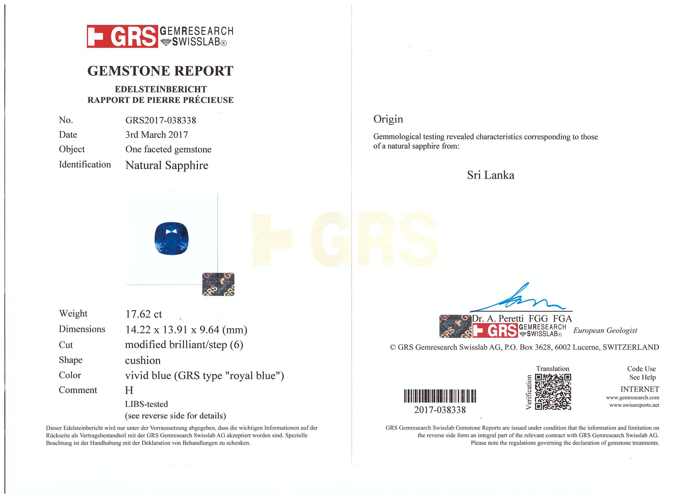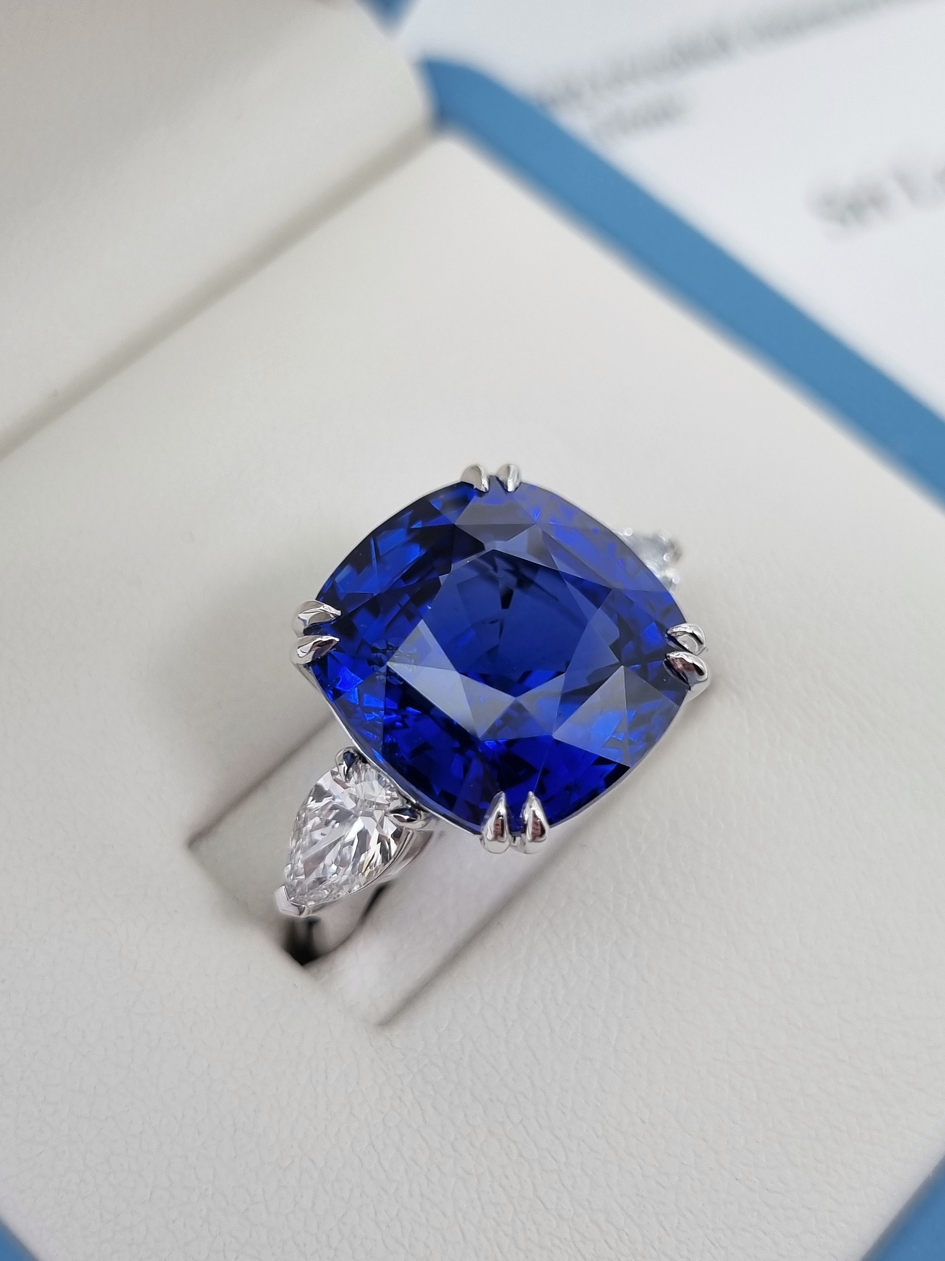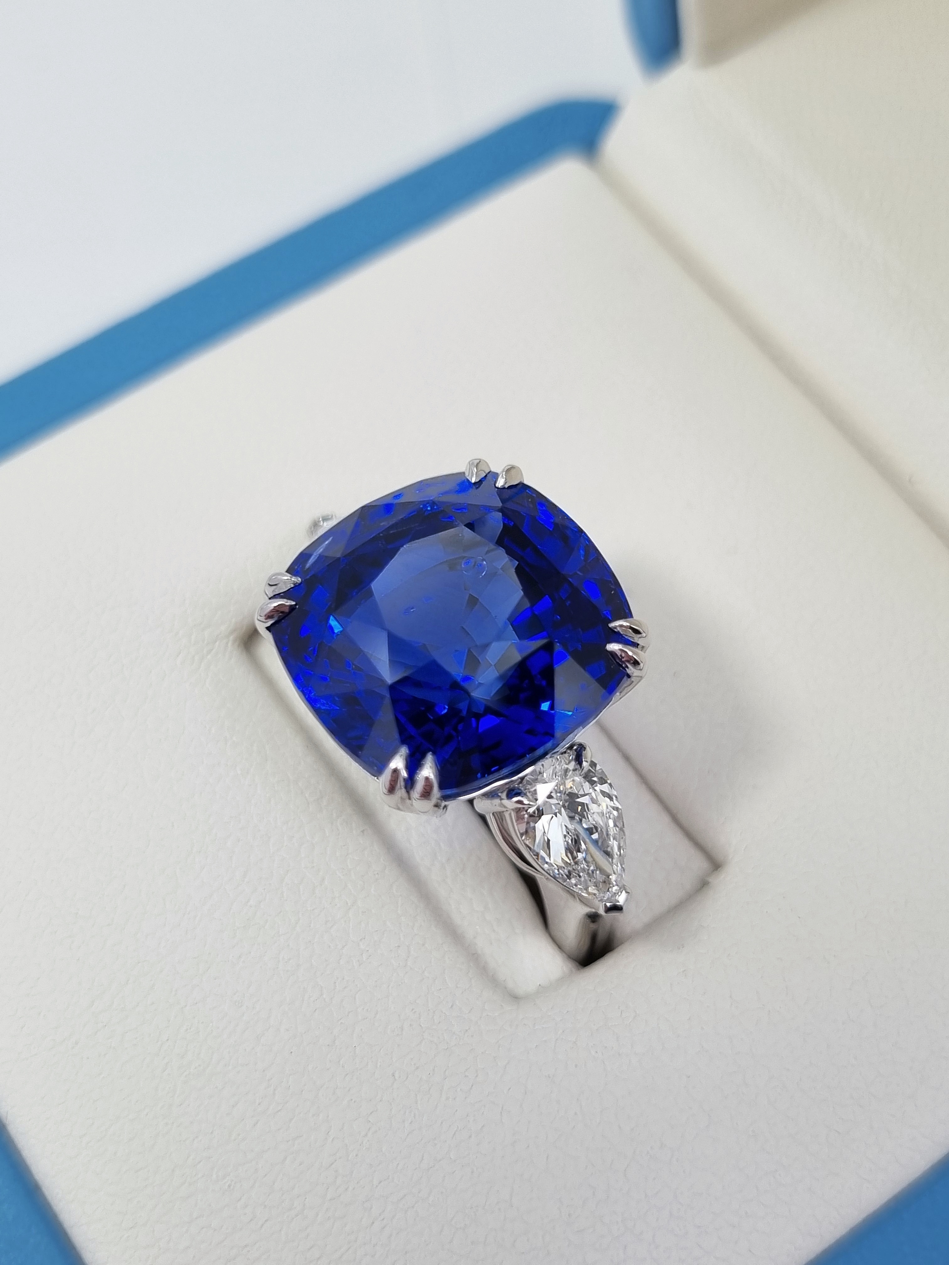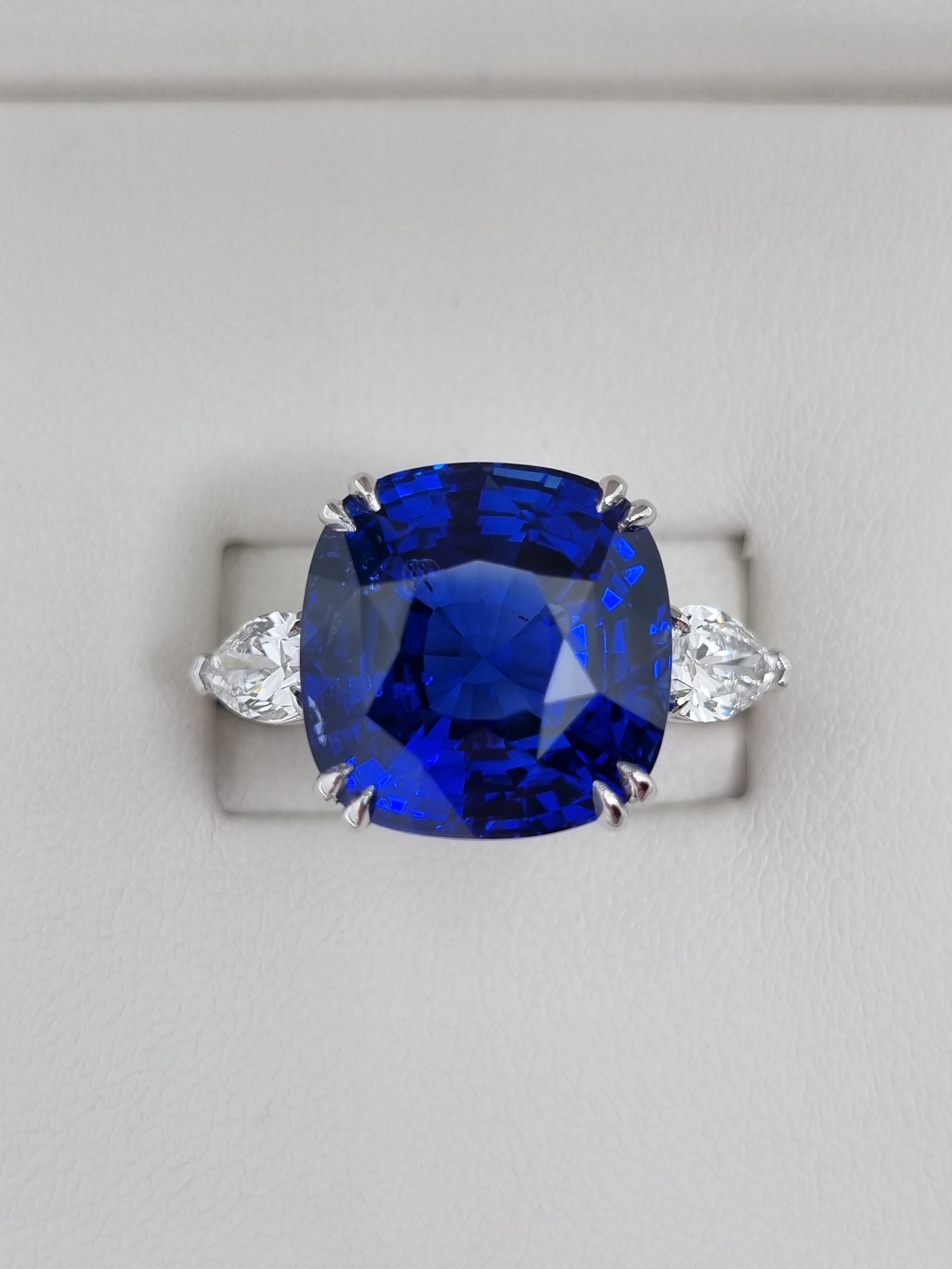 Вставка Сапфир 17,62 ct. "Royal Blue" (Sri Lanka); 2 боковых бриллианта общей массой 1,00 ct. E/VS1