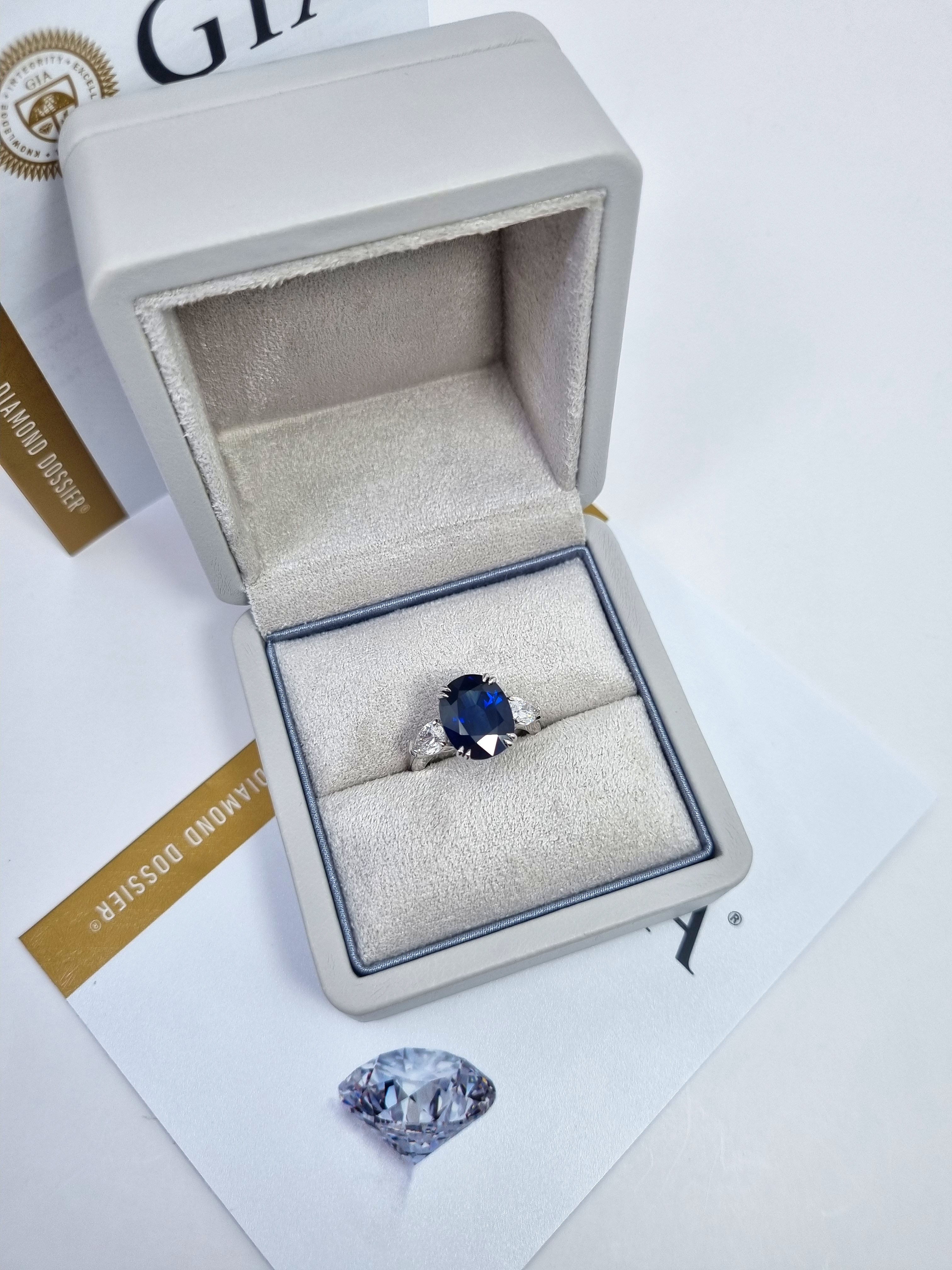 Вставка 1 сапфир 7,93 ct. Deep Blue; 2 бриллианта общей массой 1,04 ct. F/VS