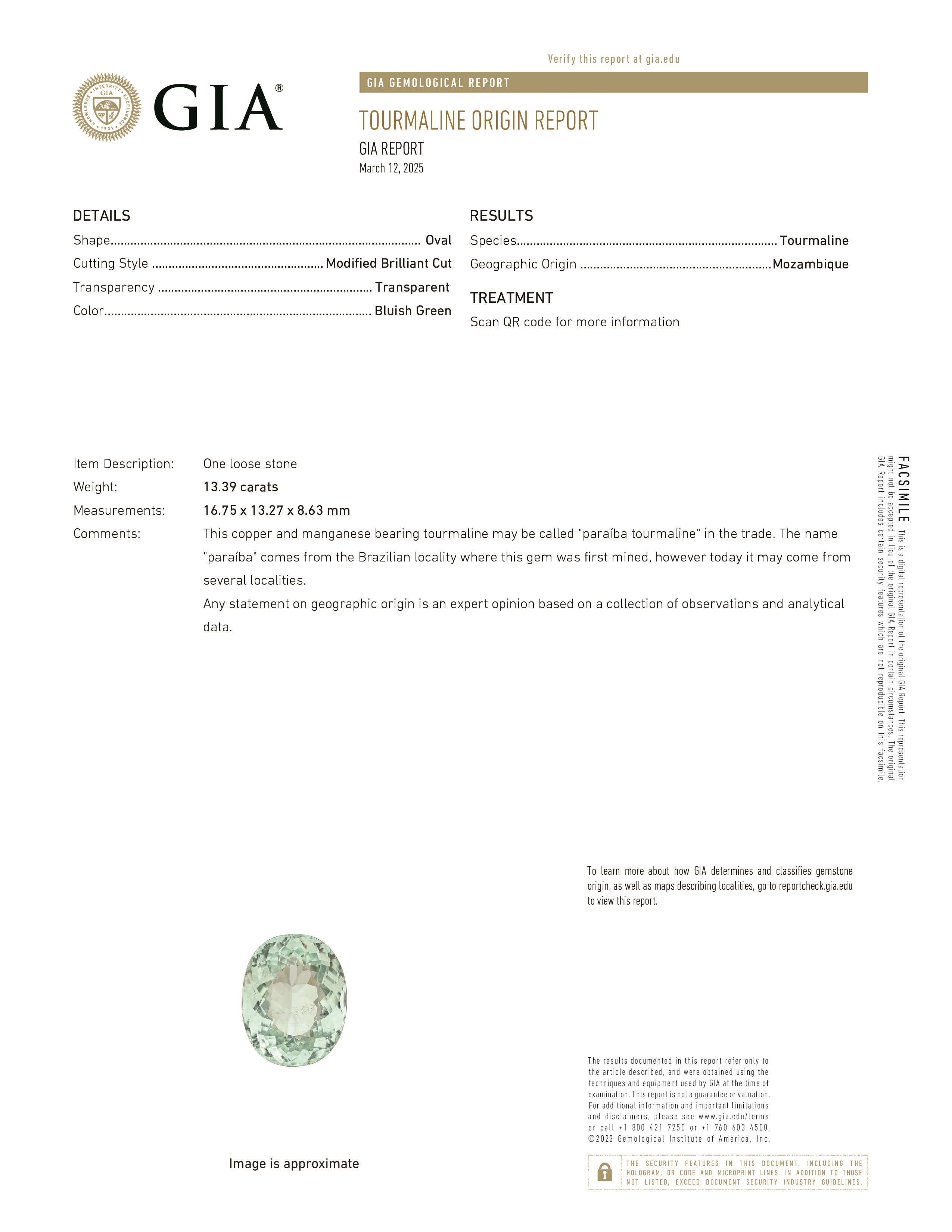 GIA Кольцо С Турмалином "Параиба" 13,39 Ct.