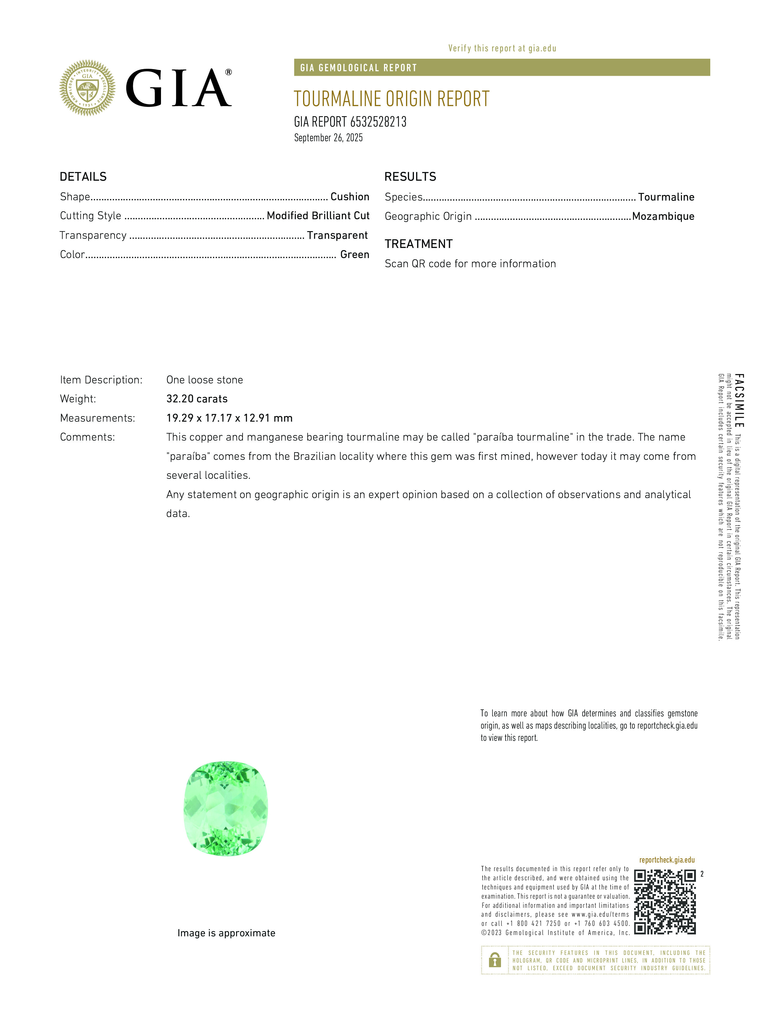 GIA Кольцо с турмалином "Параиба" 32,20 Ct.