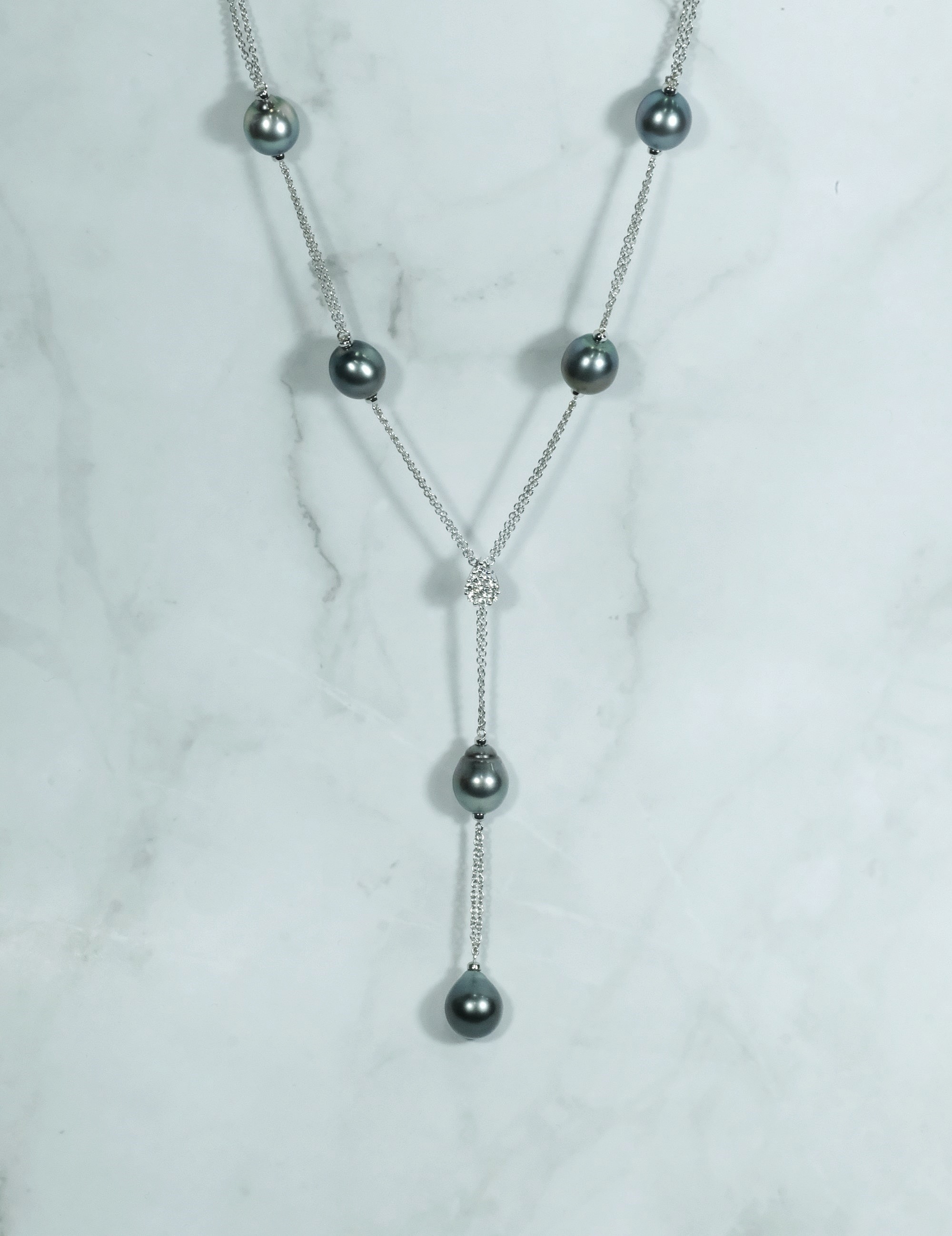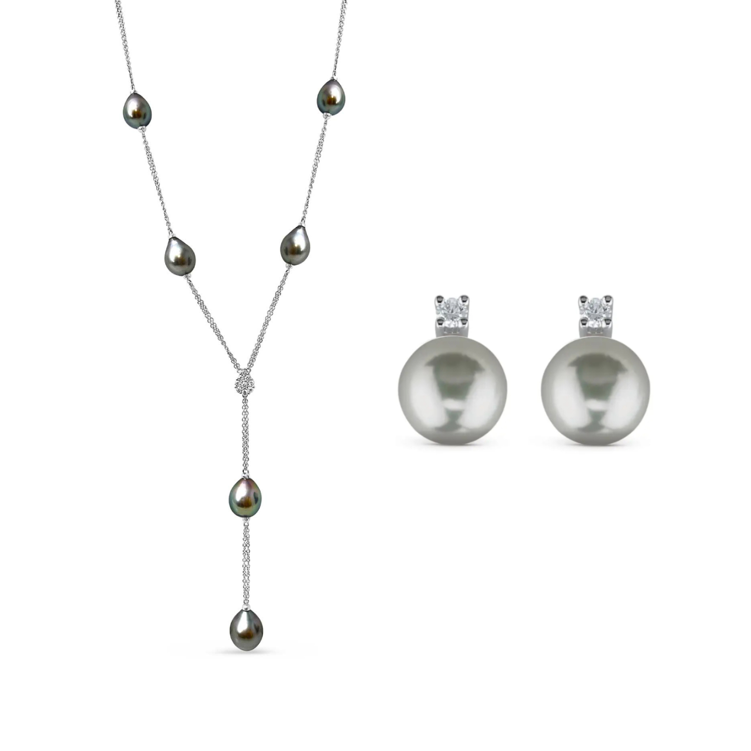 Этот комплект представляет собой настоящий шедевр ювелирного искусства, выполненный из белого золота 750°. Длина цепочки составляет 44 см, что делает его идеальным аксессуаром для любого образа. Главной изюминкой этого изделия является вставка из жемчуга диаметром 10,3-11,3 мм, который гармонично сочетается с бриллиантами, добавляя ему дополнительный блеск и роскошь.