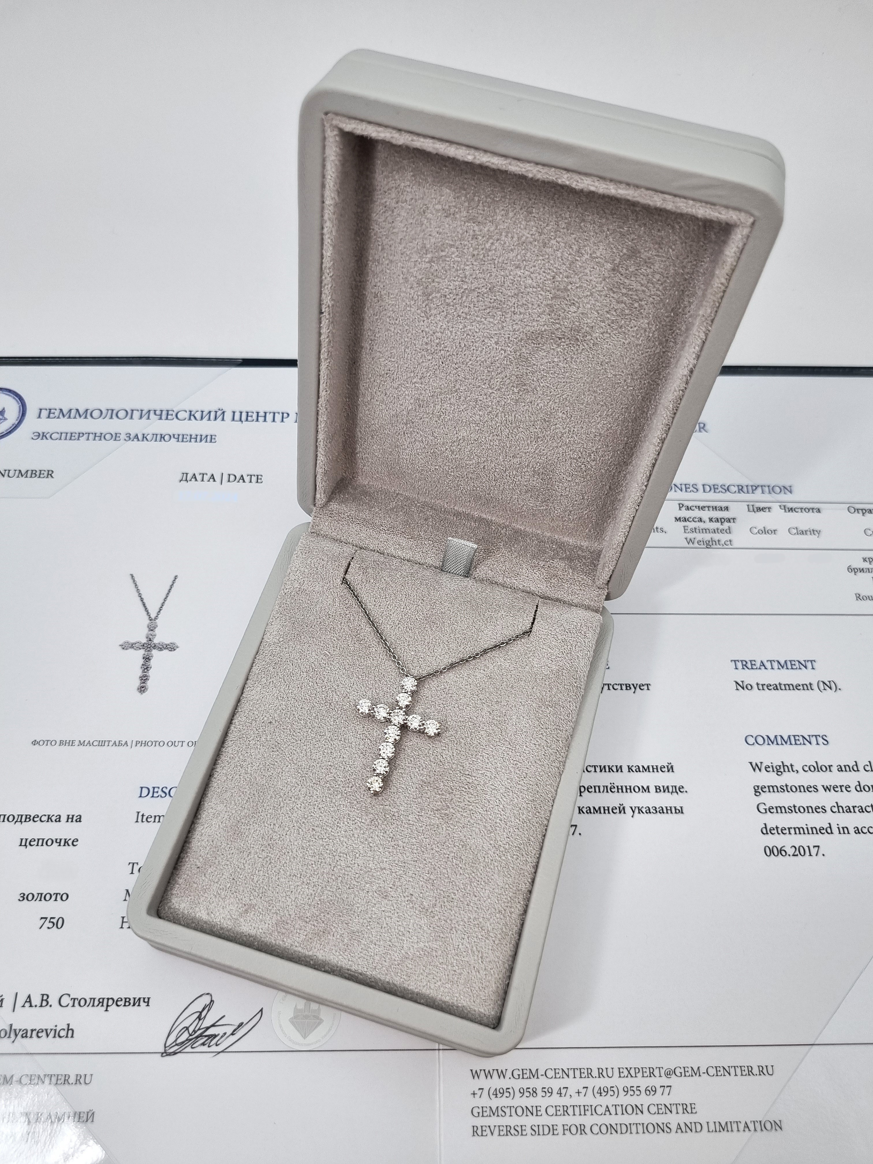 При покупке этого изделия вы получите не только сам крест, но и удобную коробку для его хранения, а также полный комплект документов, подтверждающих его подлинность и качество. Кроме того, каждый бриллиант сопровождается сертификатом МГУ, что является гарантией их аутентичности и высокого качества.