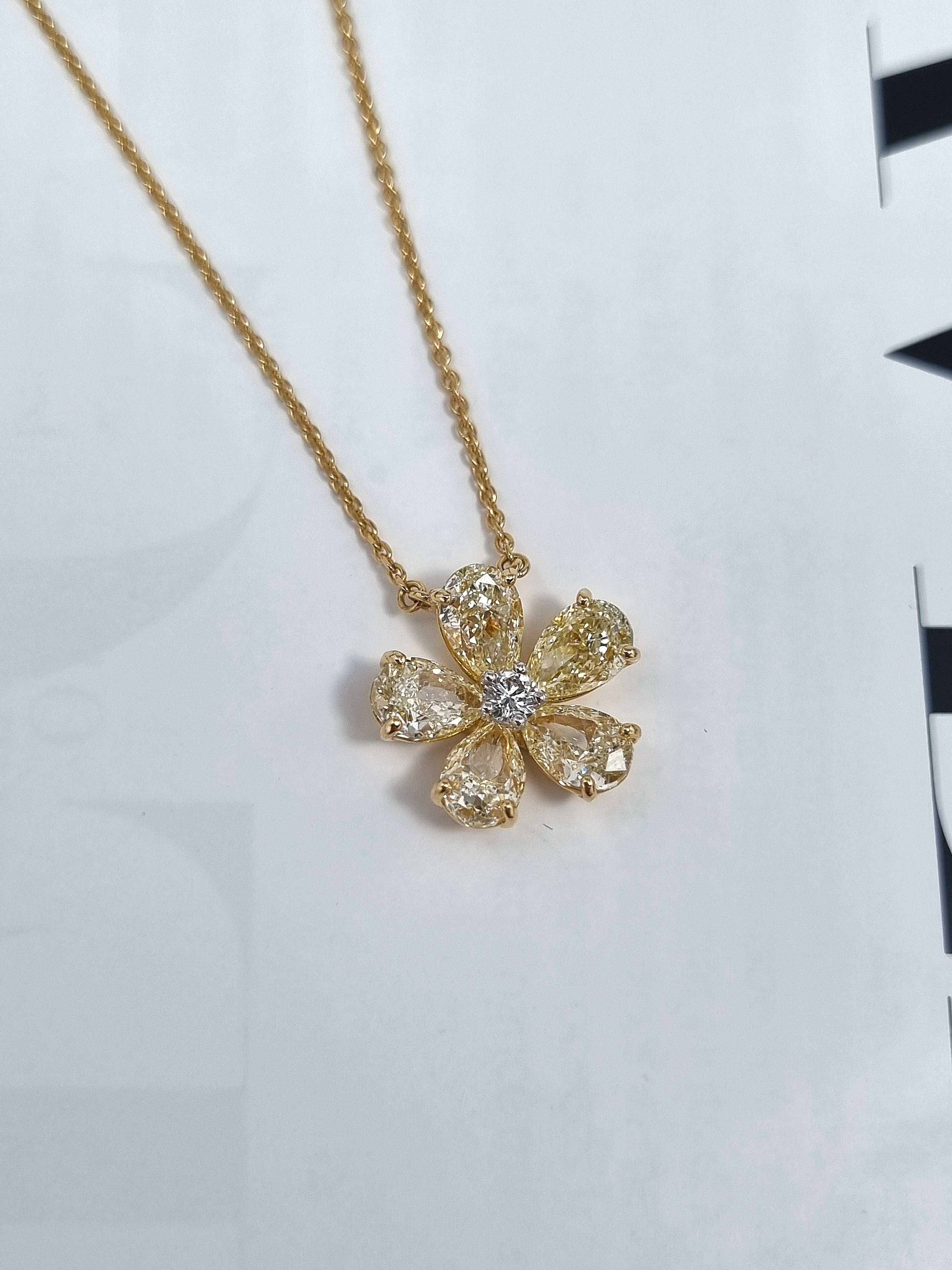 Вставка 5 бриллиантов огранки "Груша" общей массой 3,00 ct. Faint Yellow/VS; 1 круглый бриллиант 0,08 ct. H/I1