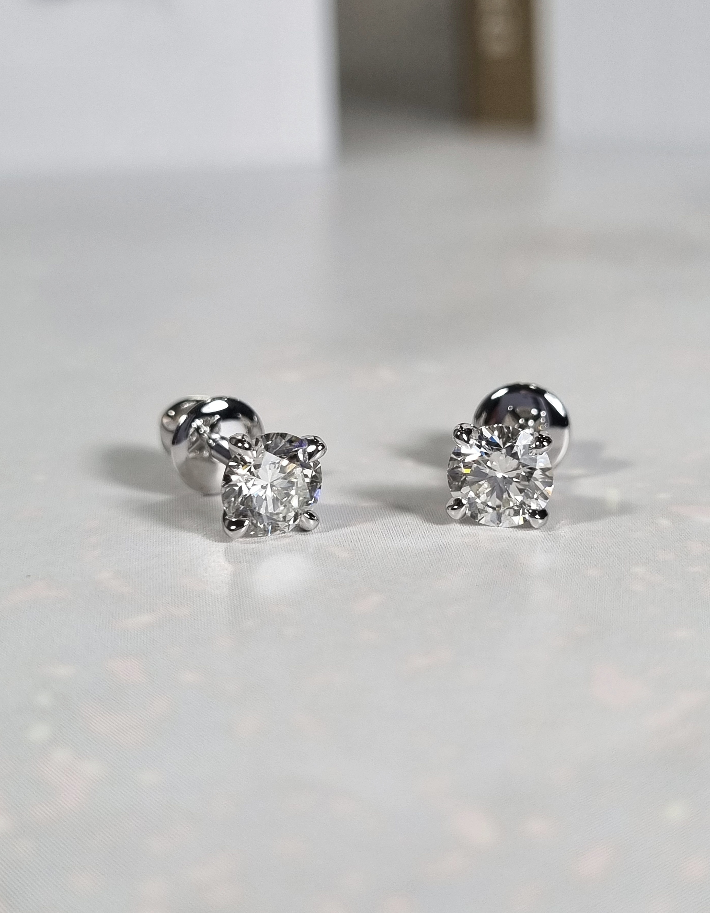 Серьги украшены двумя бриллиантами общим весом 2,00 карата, каждый из которых обладает уникальными характеристиками: один F/VS1, а другой H/VS2. Такое сочетание делает изделие по-настоящему уникальным и ценным. Каждый бриллиант прошел строгую сертификацию GIA, что подтверждает их подлинность и качество.
