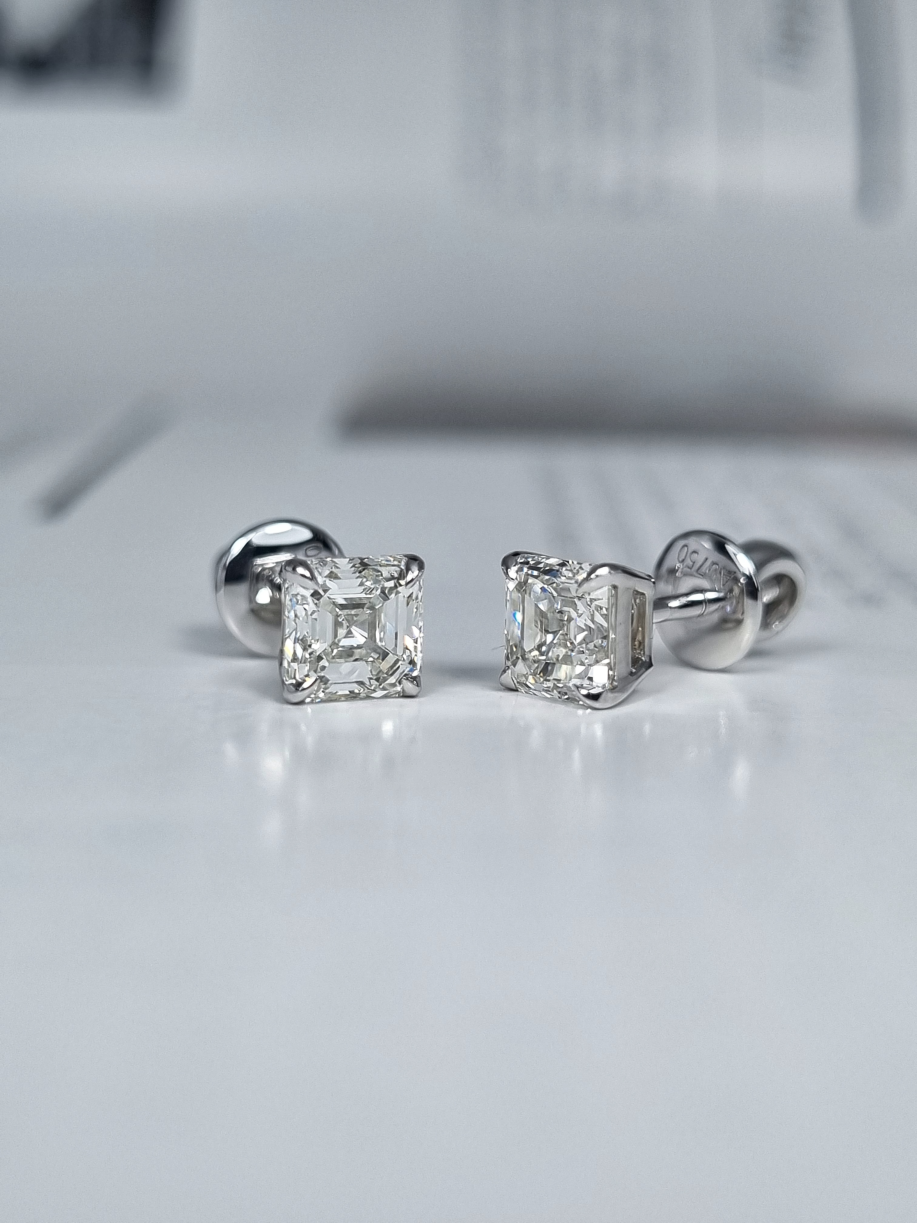 NO NAME Серьги 0,91/0,91 Ct. I/vs1 (asscher Cut)