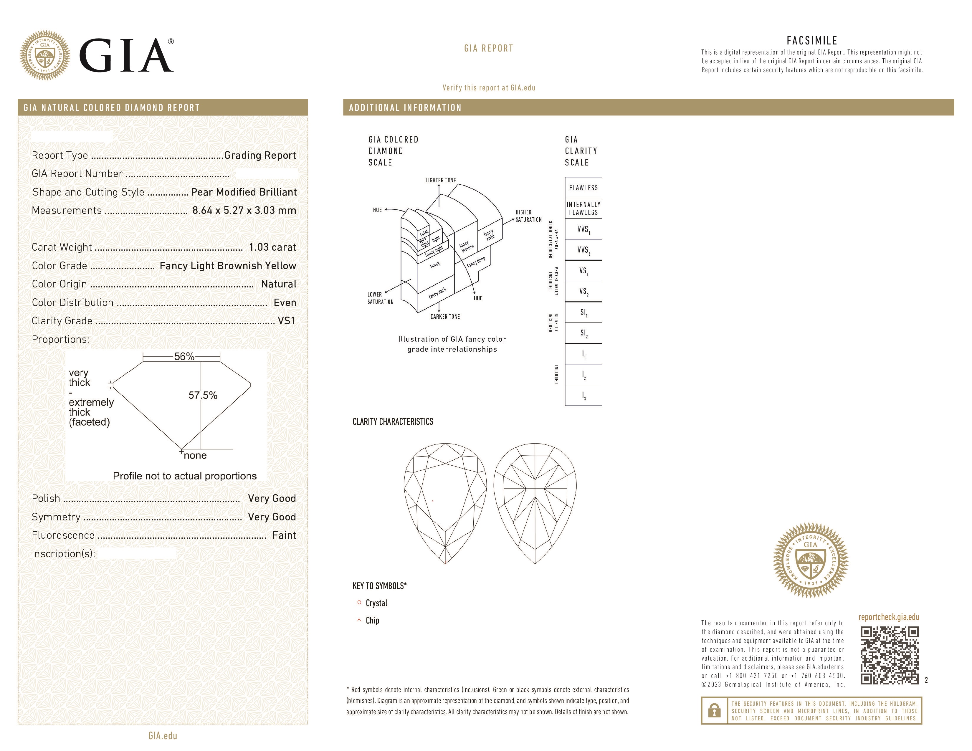 Вставка 1 бриллиант 1,00 ct. Fancy Light Brownish Yellow/VS1; 1 бриллиант 1,03 ct. Fancy Light Brownish Yellow/VS1; верхние бриллианты общей массой 0,64 ct. I/VS1
