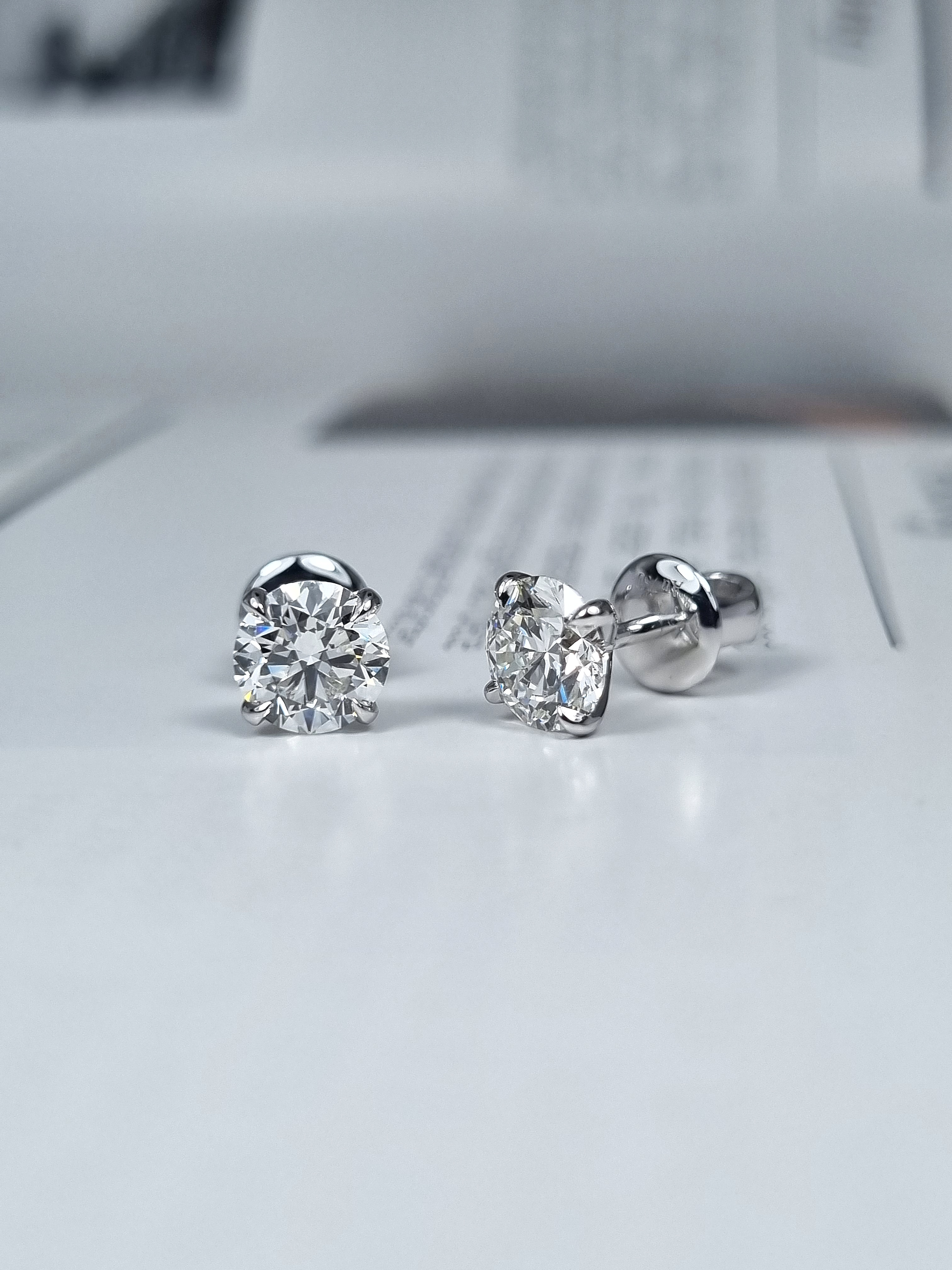 GIA Серьги 1,01/1,01 Ct. H/vs2 (3 Excellent)